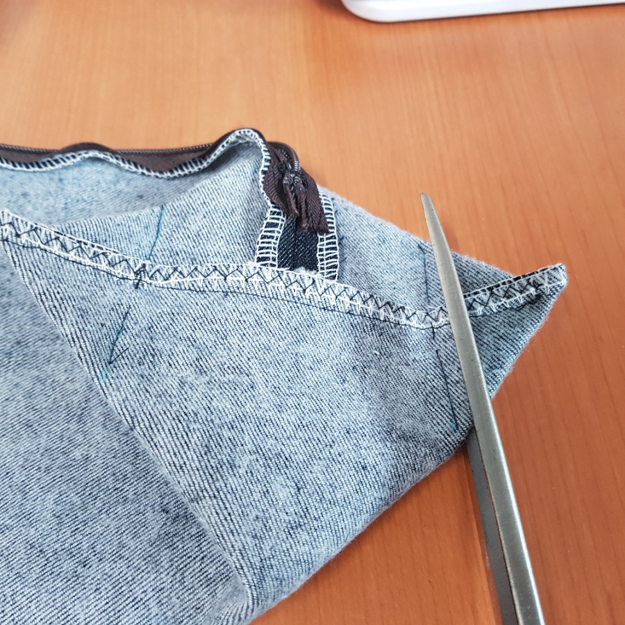 튼튼하고 지퍼가 고장나지 않도록 지퍼의 양 끝을 손바느질하여 내구성을 높였다.