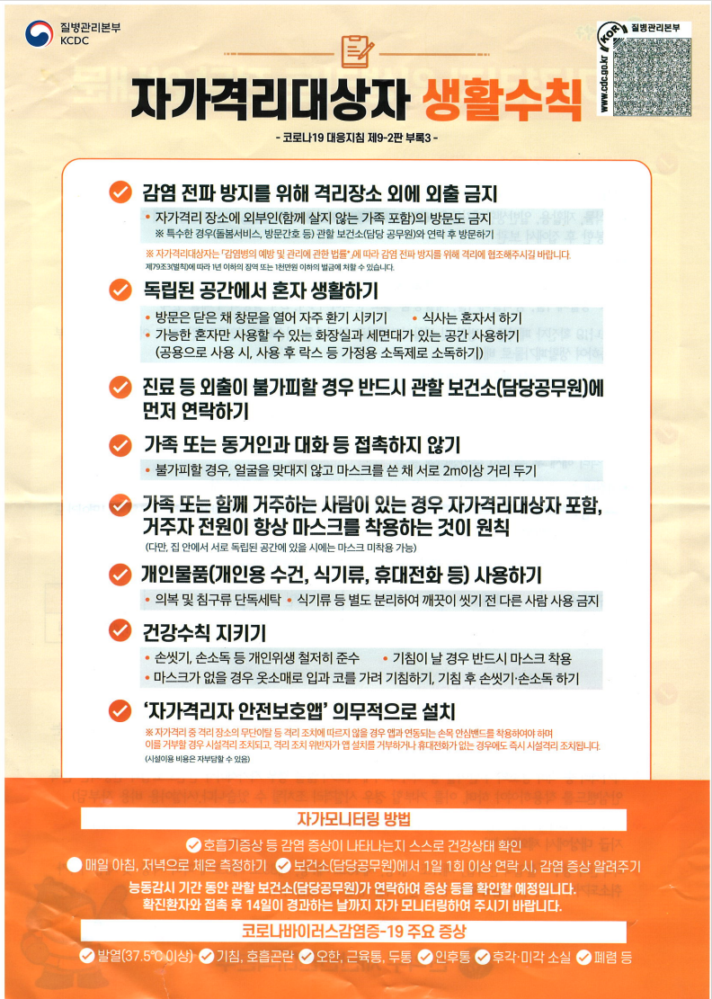 | 1. 코로나, 밀접접촉자 분류, 자가격리 기간 및 지원물품(공동격리 대상) (0) | 2022.01.27 |