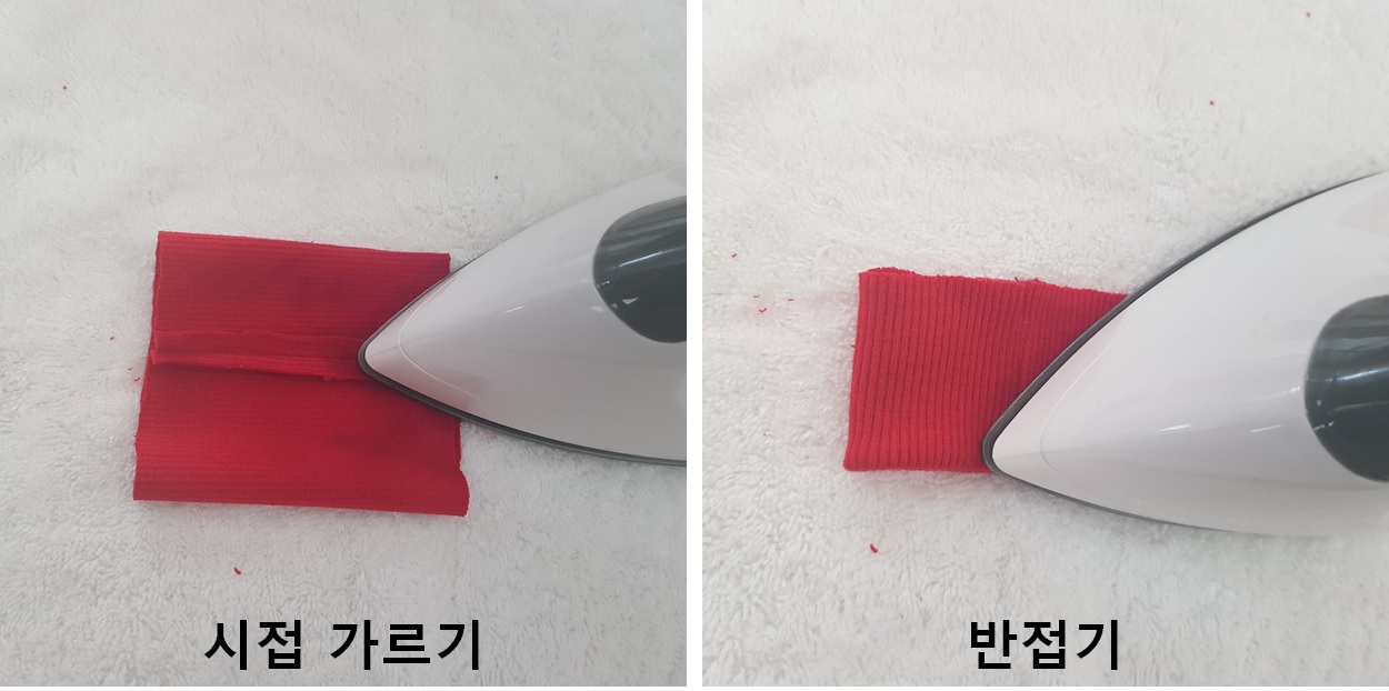 소맷부리, 목둘레, 밑단은 시접 가르기(가름솔)를 하고 반 접어 다림질한다.