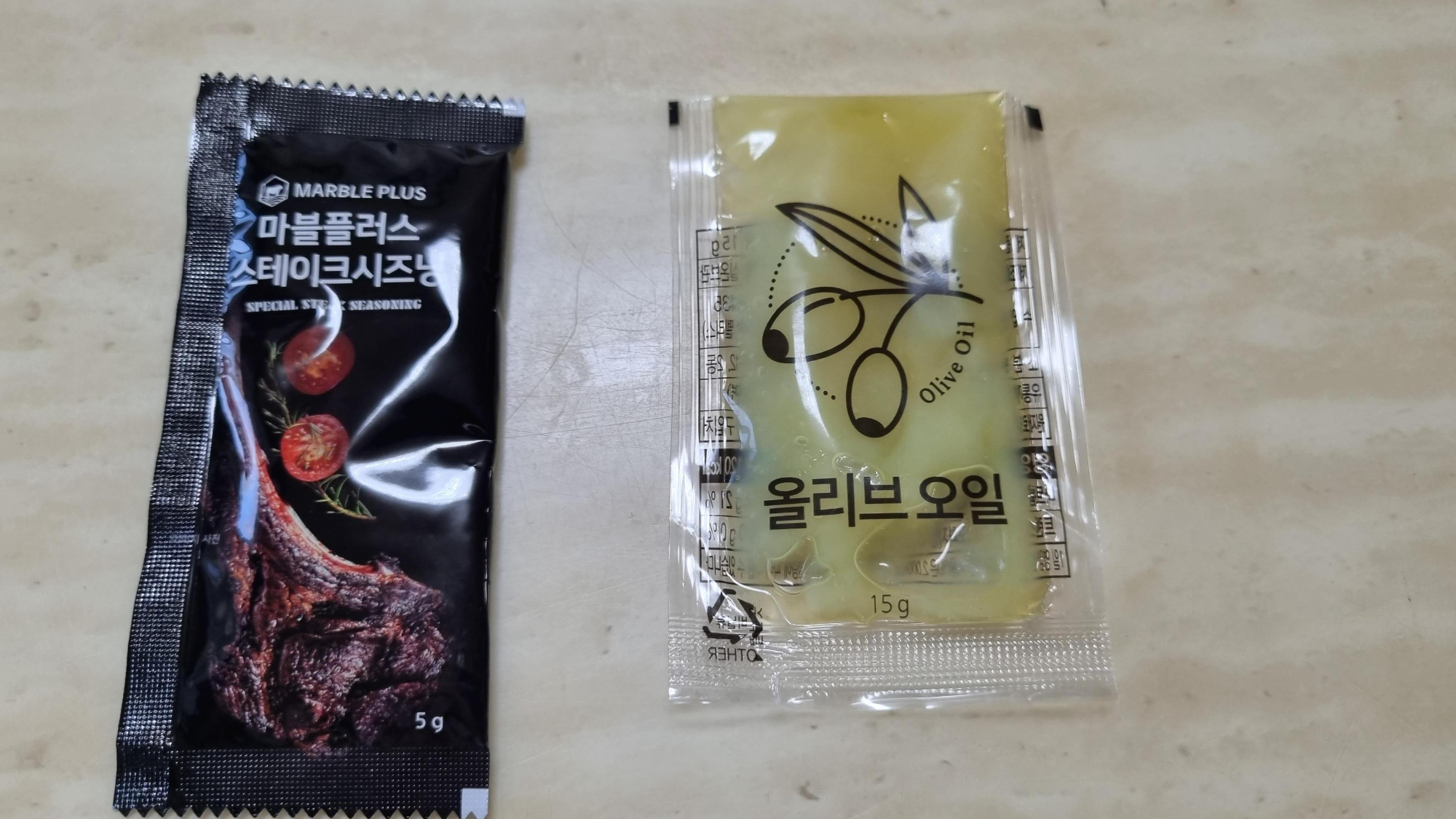 저희는 시즈닝과 오일을 추가 구매했어요. 마블플러스 스테이크 시즈닝이 정말 맛있어요. 거부감도 없고 익숙한 맛이에요. 저 시즈닝은 돼지고기에 뿌려도 맛있어요. 저희는 시즈닝이 많이 남아서 목살에도 뿌려서 마리네이드(밑간) 했더니 정말 맛있었어요. 오일은 그냥 올리브 오일이에요.