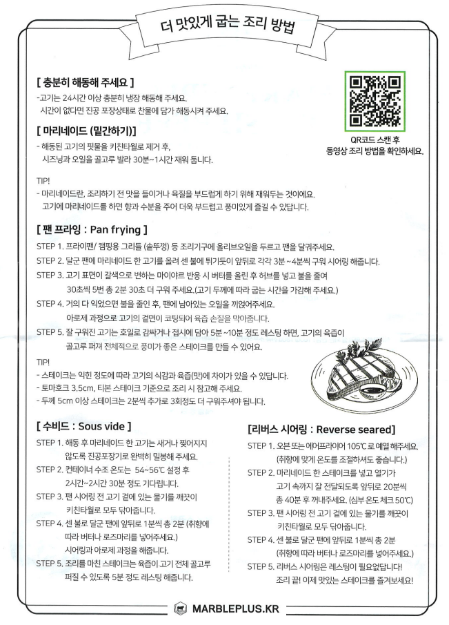 토마호크는 처음 요리하는거라 정말 많이 찾아봤어요. 망하면 어뜨카나 걱정도 하고. 하지만 토마호크 조리 방법도 같이 동봉되어 왔어요. 더 맛있게 굽는 조리 방법을 참고하면 누구나 맛있는 토마호크 스테이크를 만들 수 있어요. 마이너스의 손인 저도 성공했거든요.