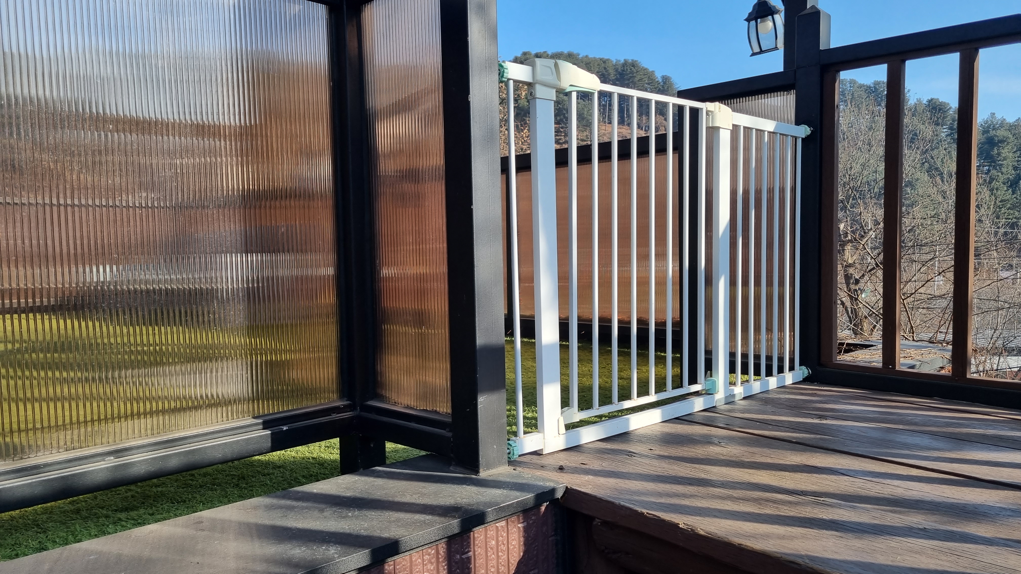 그리고 인조 잔디가 보여요. 이 인조잔디에서 강아지들과 함께 뛸 수 있어요. 그리고 위의 사진에서 보이는 처음 보는 물건은 별을 관찰하는 건가?! 잘 모르겠어요. 날씨가 워낙 추워서 밖에 오래 있기 힘들어요.