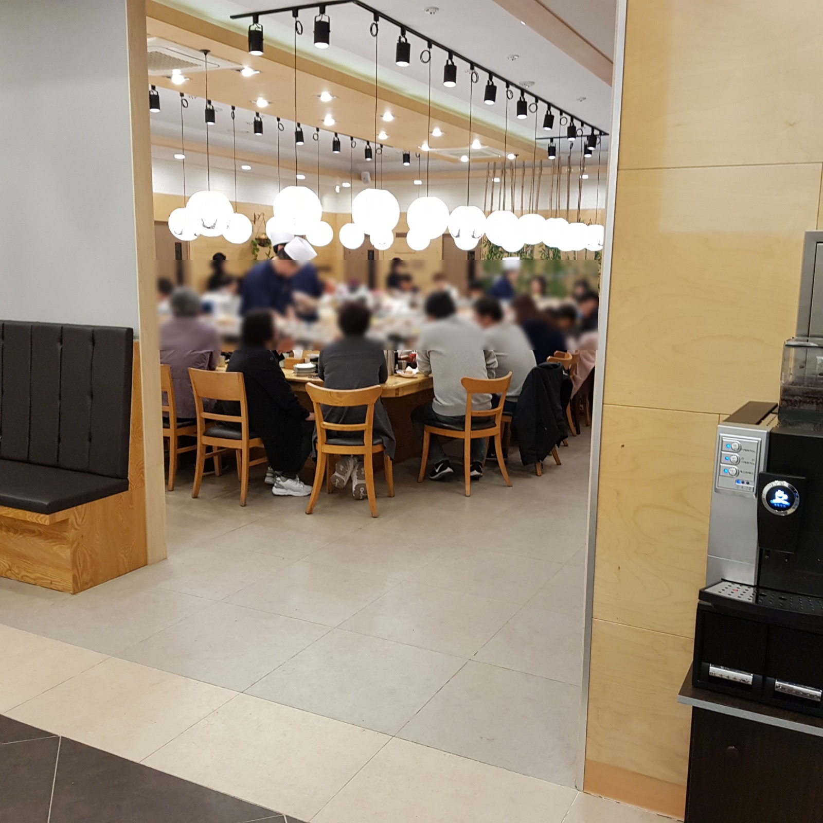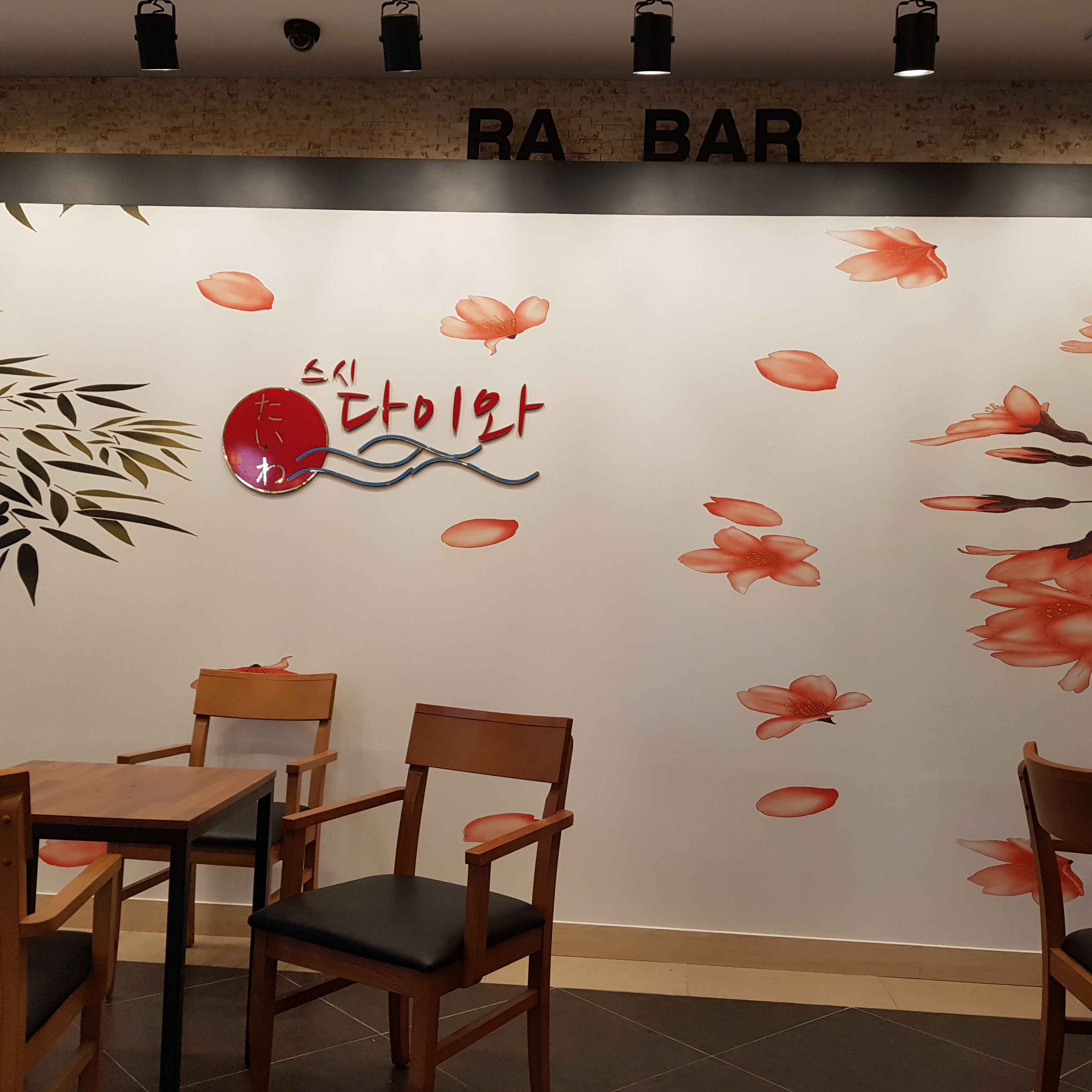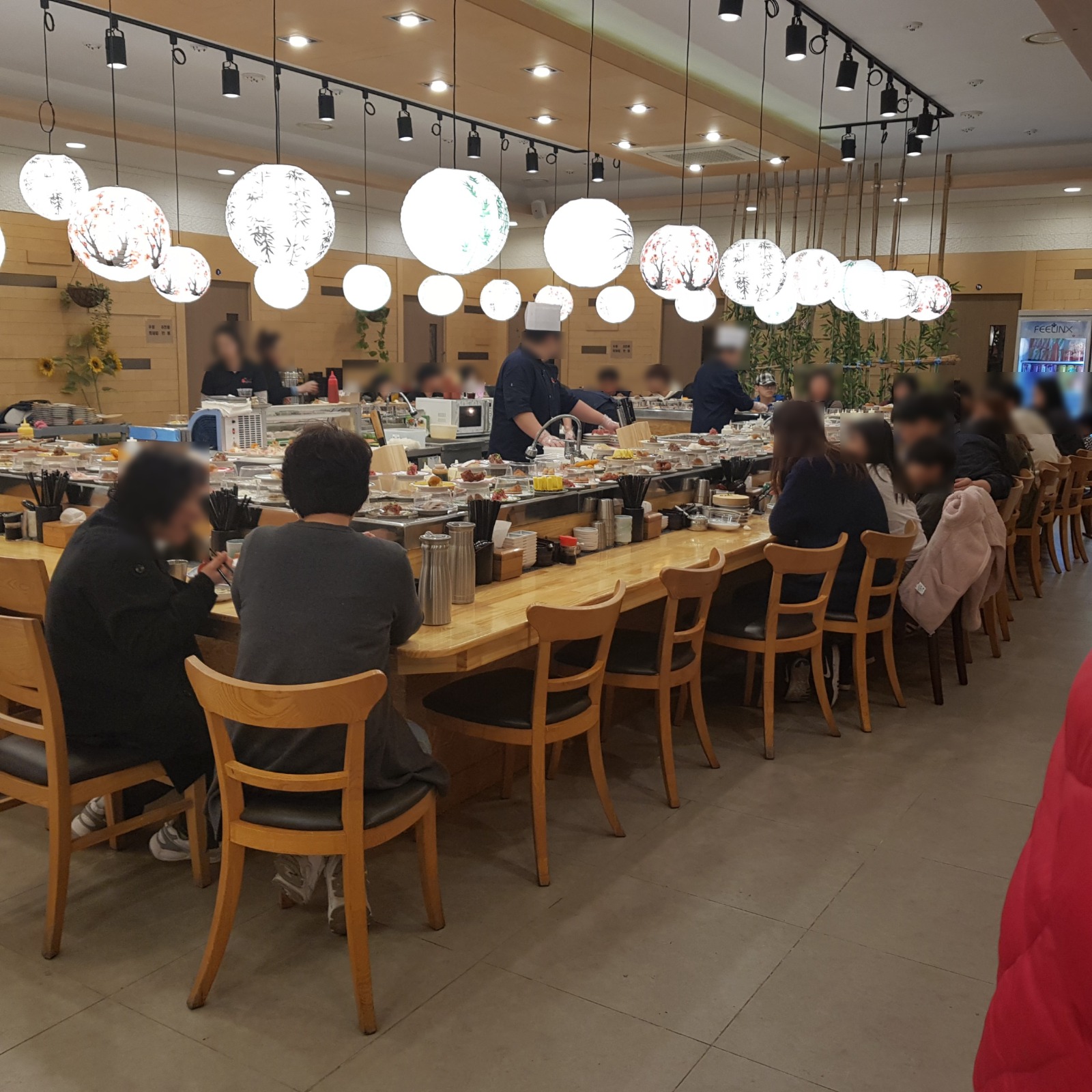 기다리면서 찍었다. 테이블은 아래 사진에서 보이는 게 전부다. 오른쪽으로 6인 식탁이 2개 정도 있기는 하지만 회전 레일이 없어 사용하지 않는 것 같았다.