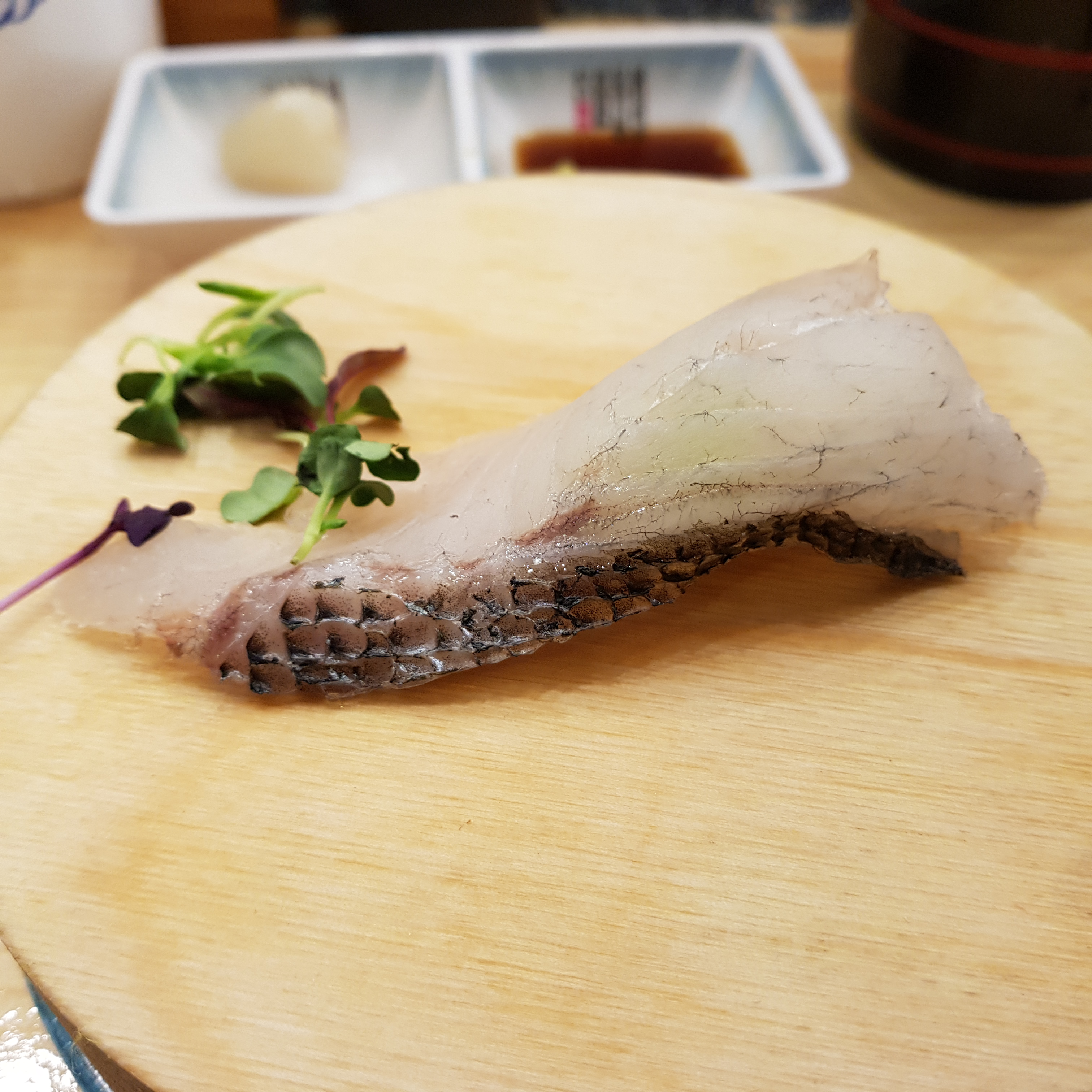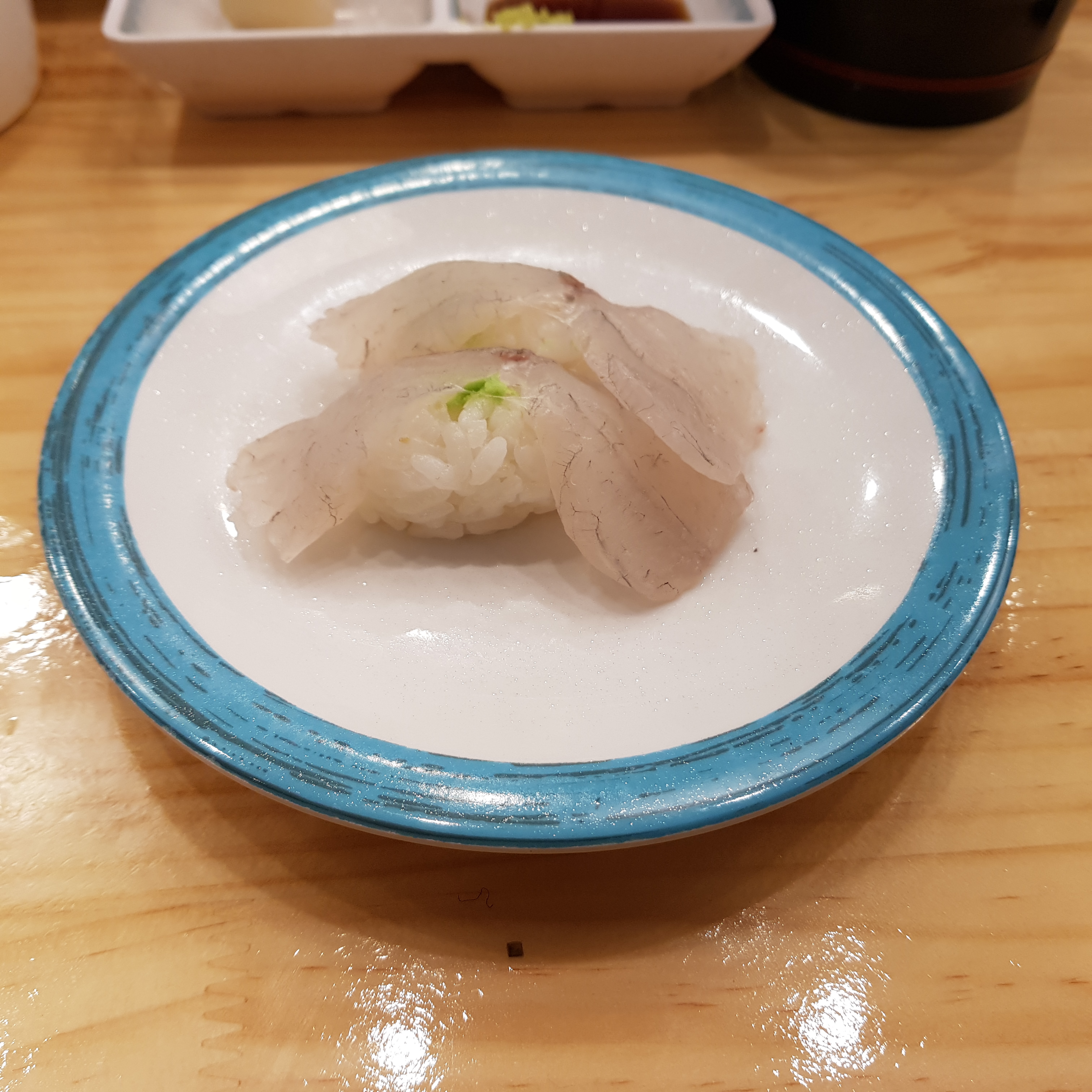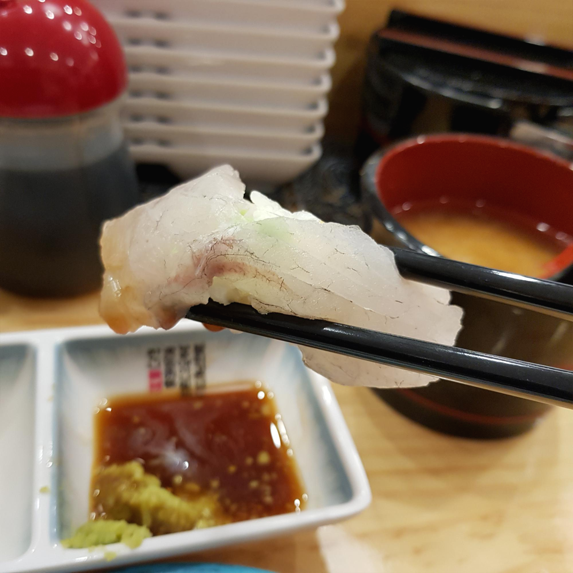 천안 회전초밥 스시 다이와는 3,000원짜리 접시가 1가지 있고 나머지 모든 접시는 1900원이다. 아래 사진은 아무래도 우럭 초밥인 거 같았다. 질도 좋고 맛도 좋았다.