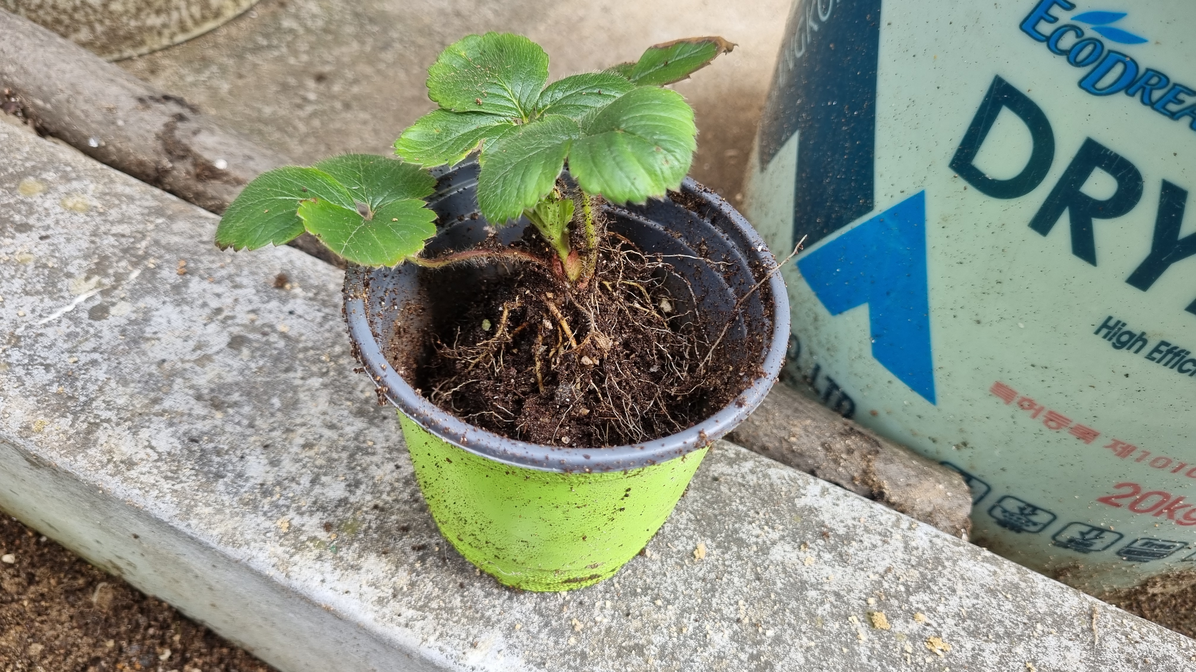 밭에 있는 노지 딸기를 화분에 옮기냐면,