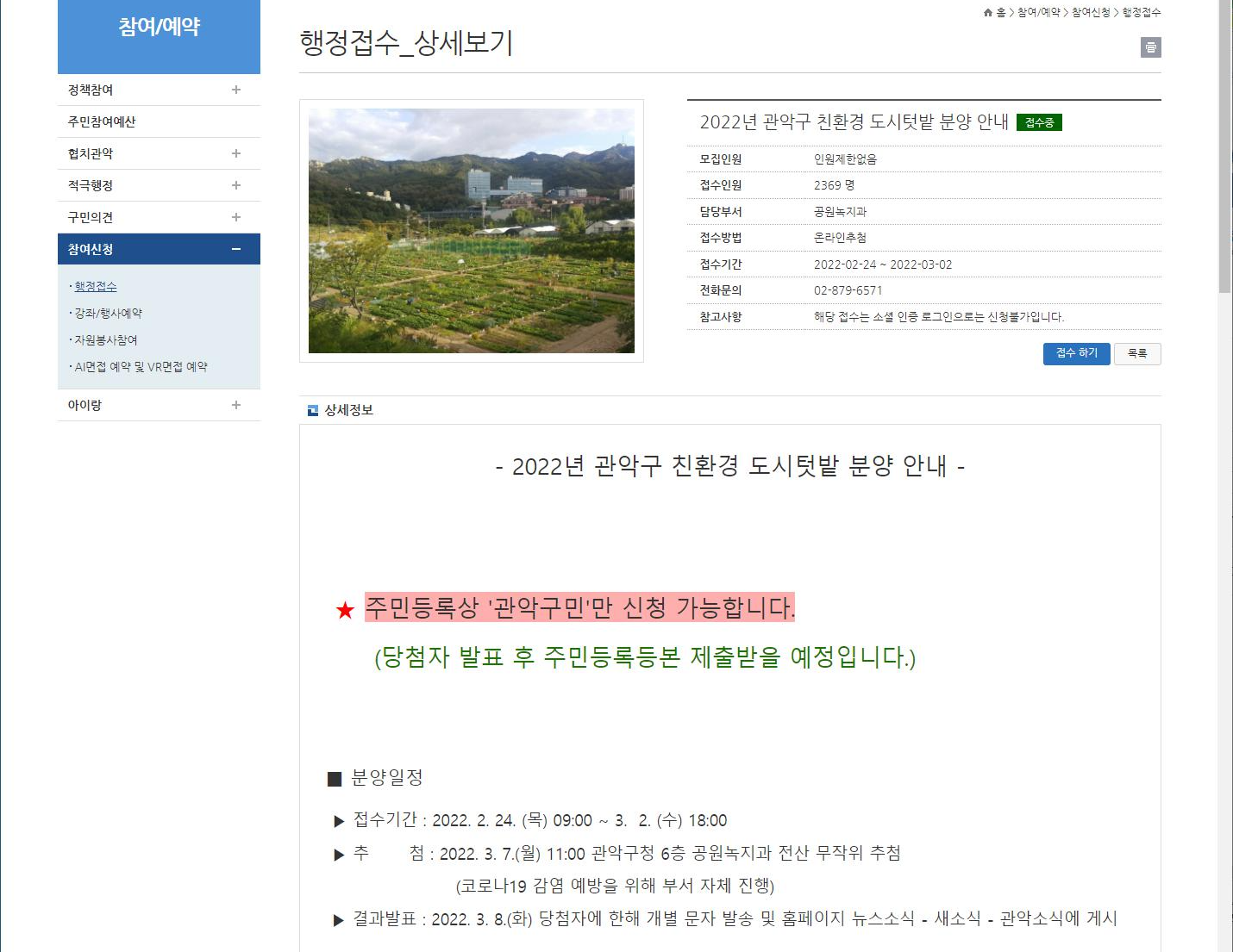 밭이 좀 부족해서 도시텃밭 분양 신청을 했어요.