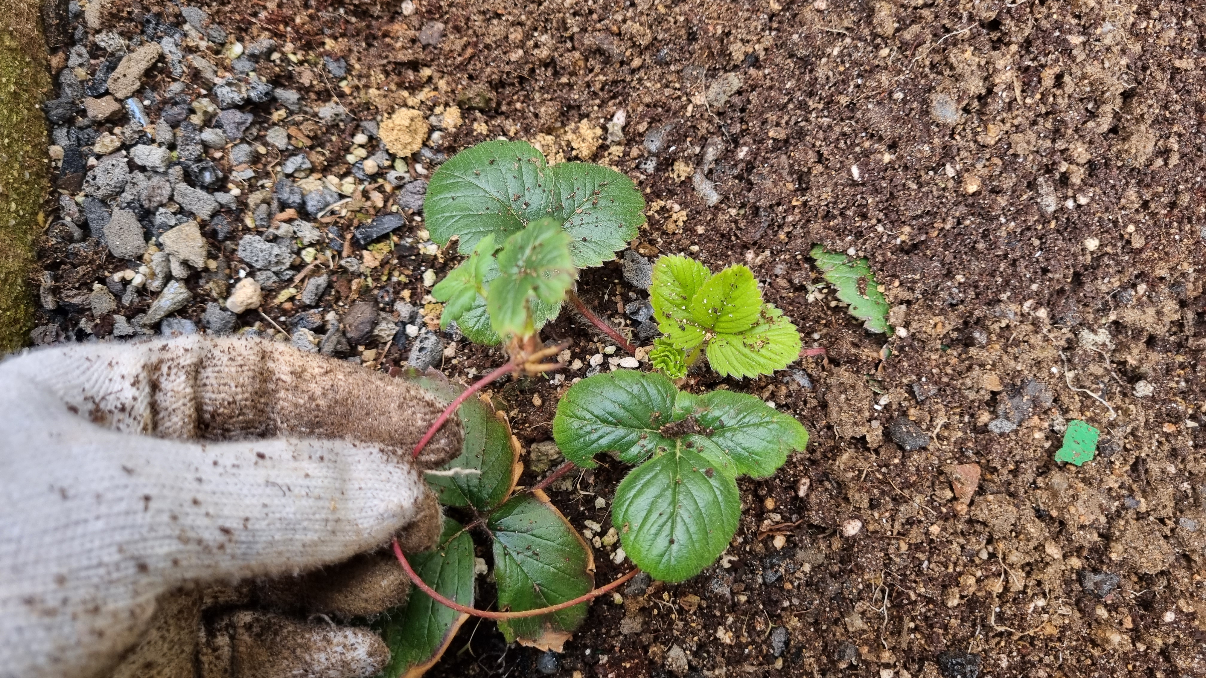 아직 런너도 있고 뿌리를 땅에 내리지 못한 자식묘도 있어요.