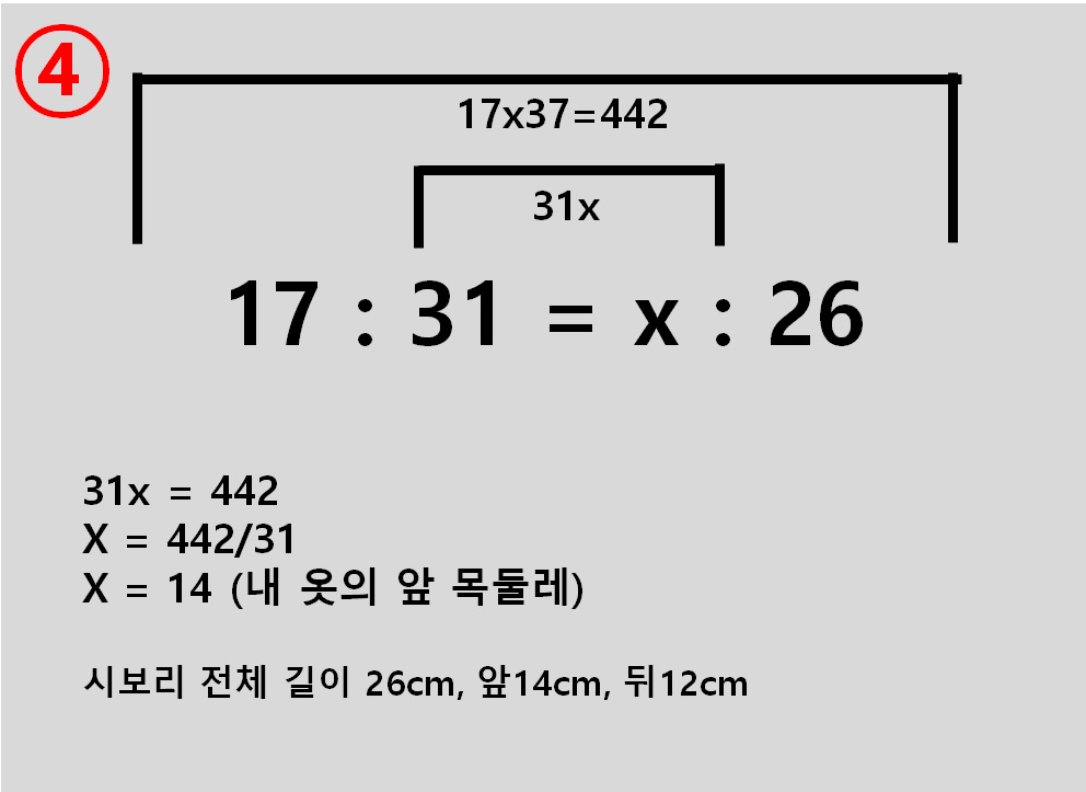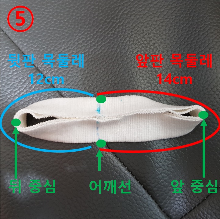 목둘레 시보리 4등분 방법 및 원단에 따른 시보리 길이 결정