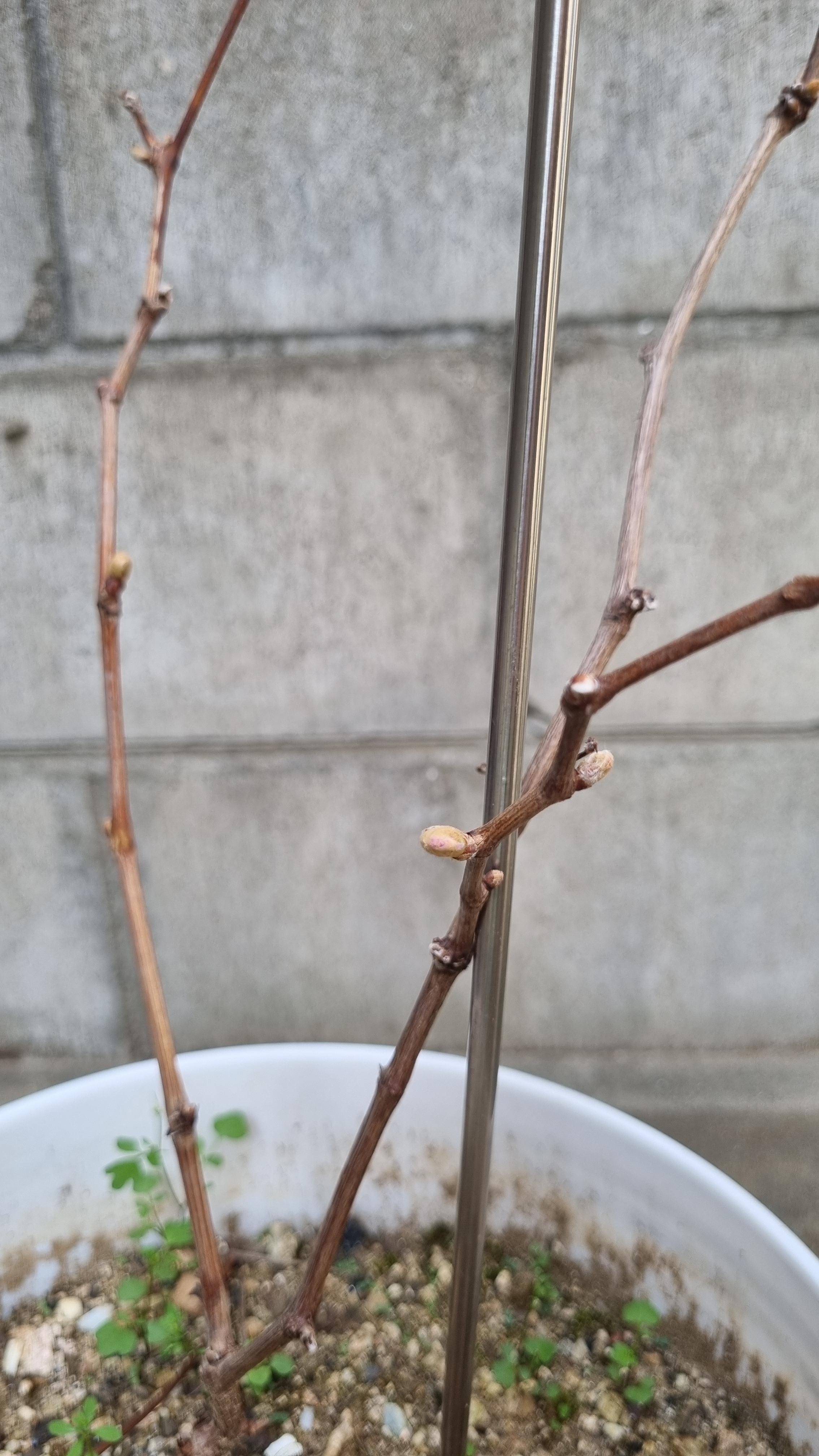 지난 글에서 혹시나 샤인머스캣이 죽지 않았을까 매우 불안해하고 있었다. 하지만 샤인머스캣은 죽지 않았다. 그리고 점점 잎이 나오고 있다. 아주 작고 힘이 없어 보이는 잎이긴 하지만 그래도 죽지 않았다. 신난당~