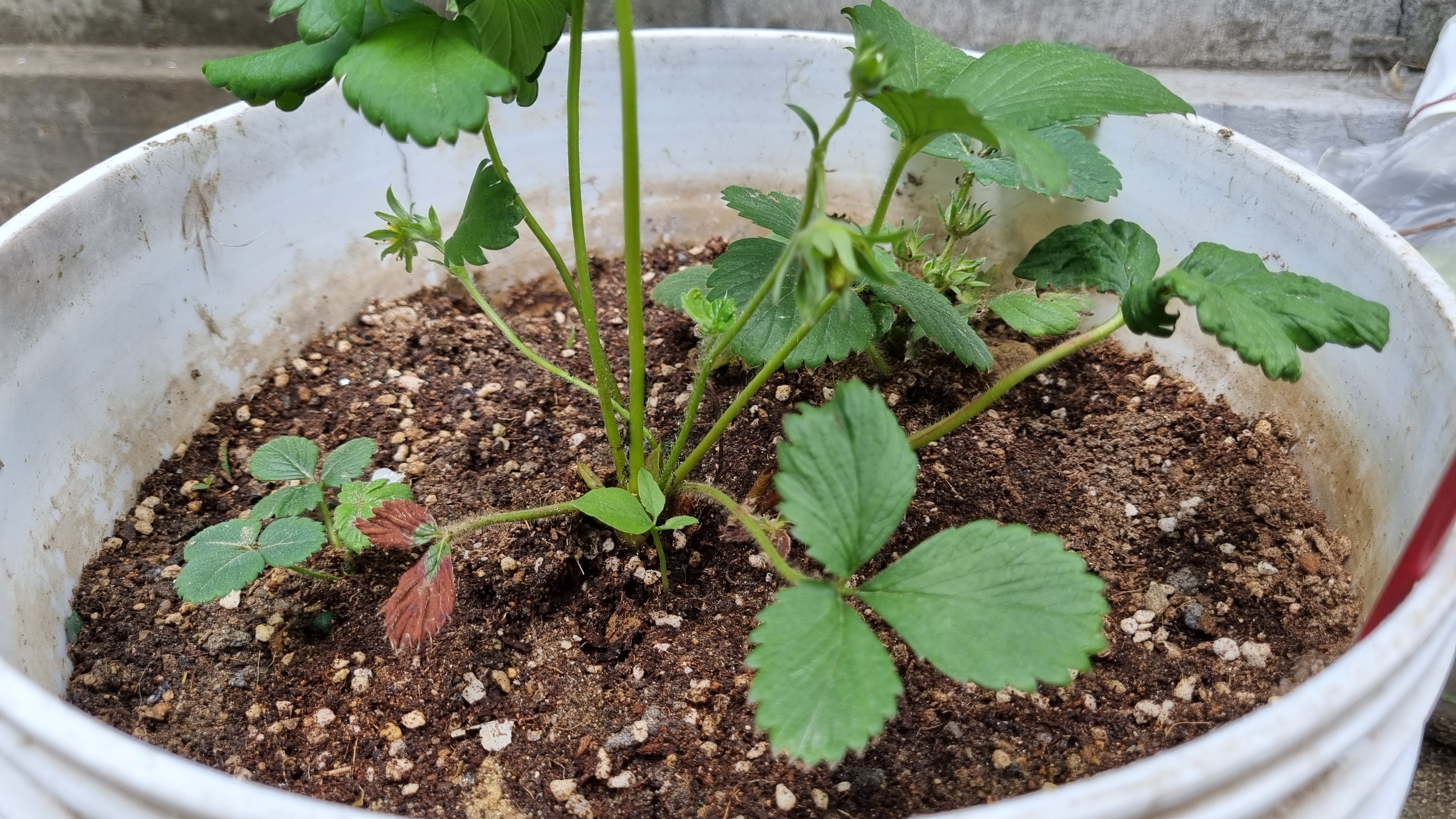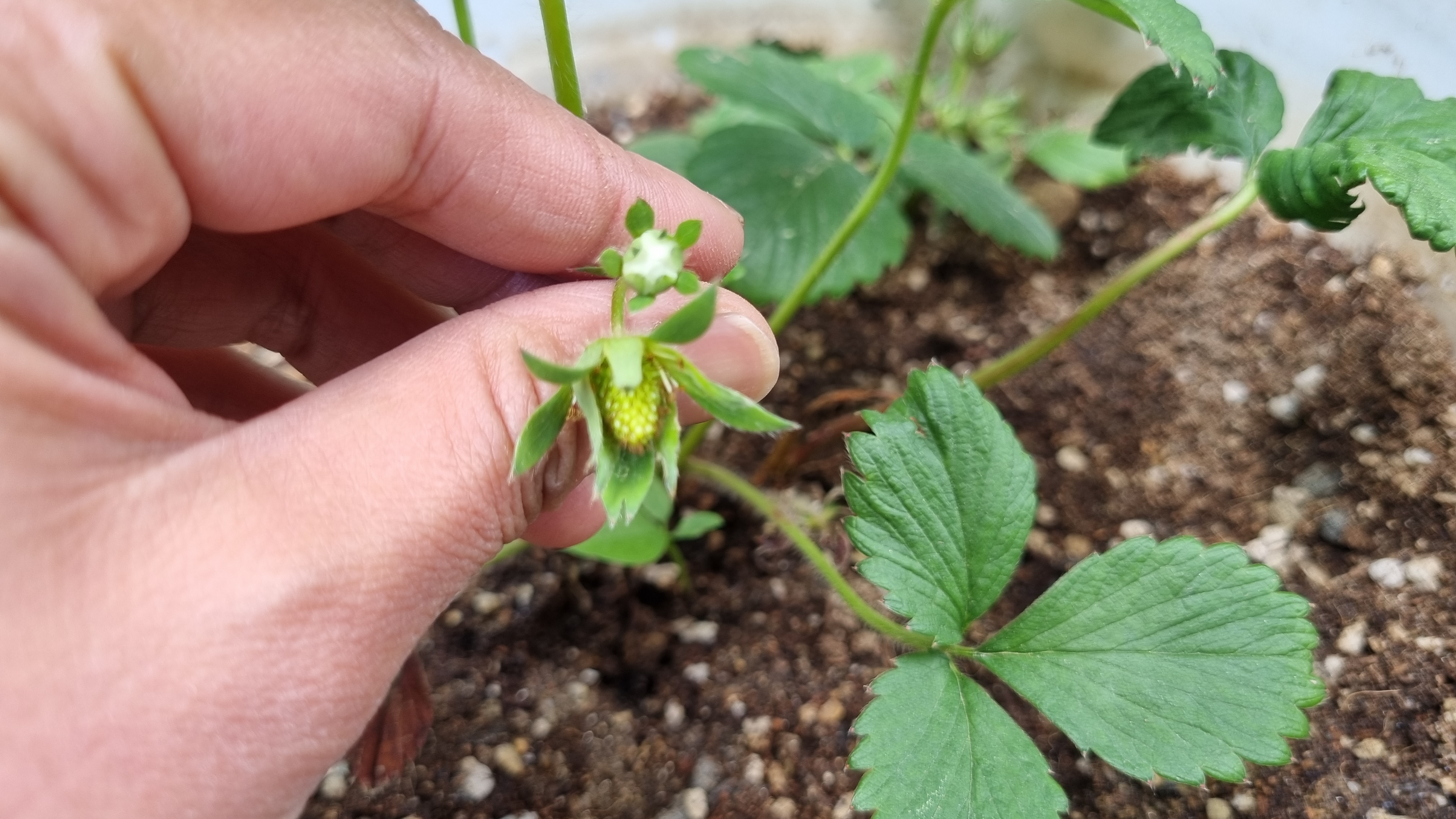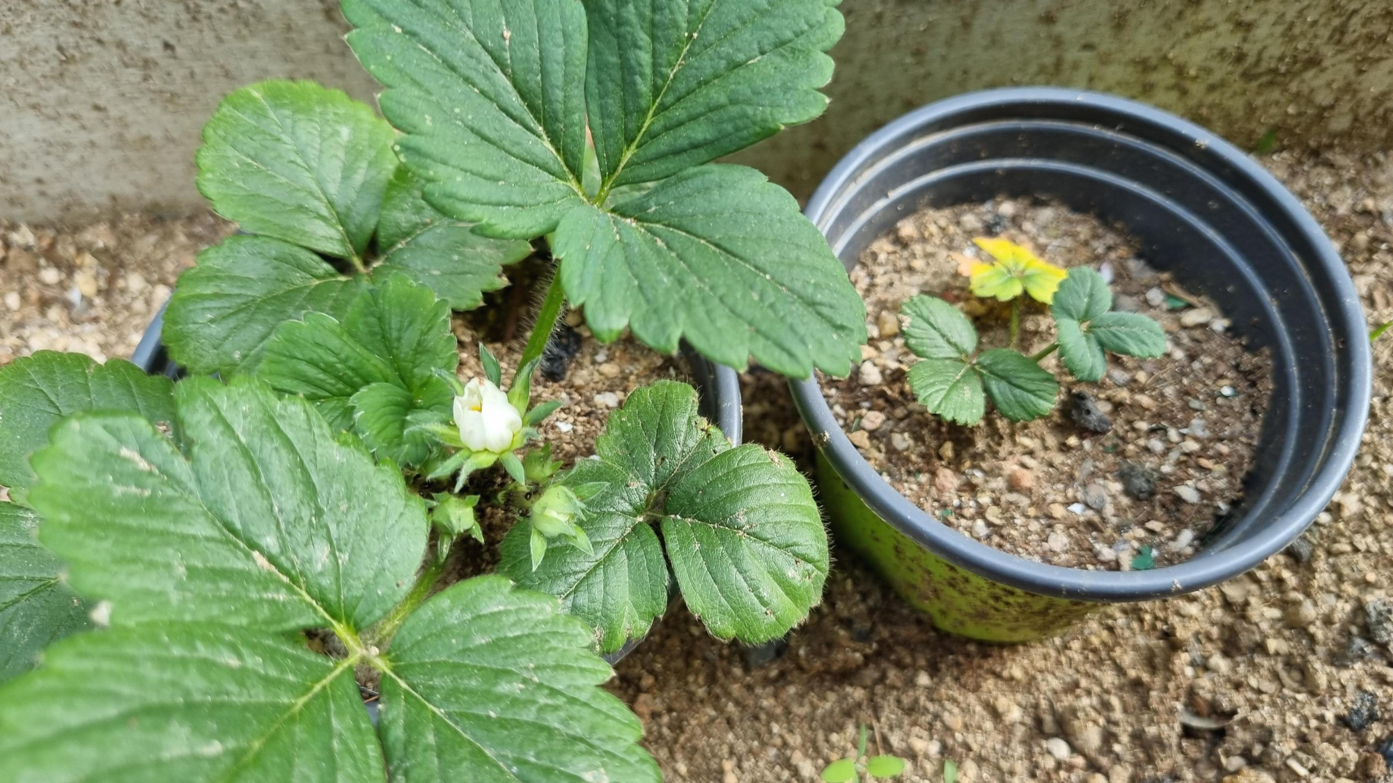 노지에서 화분에 있는 딸기들은 꽃이 피고 지기를 반복하면서 벌써 아주 작게 딸기가 생기기 시작했다.