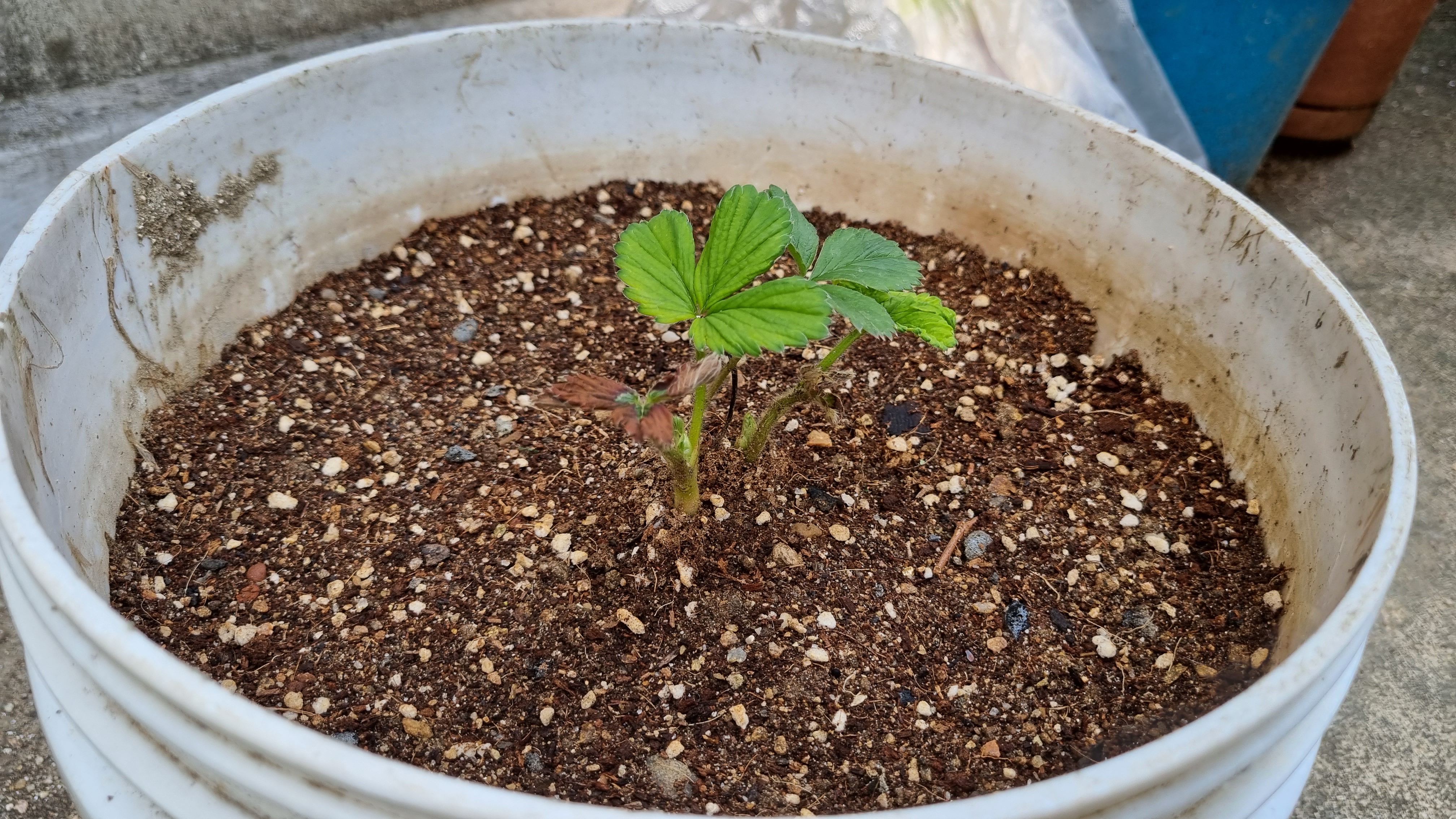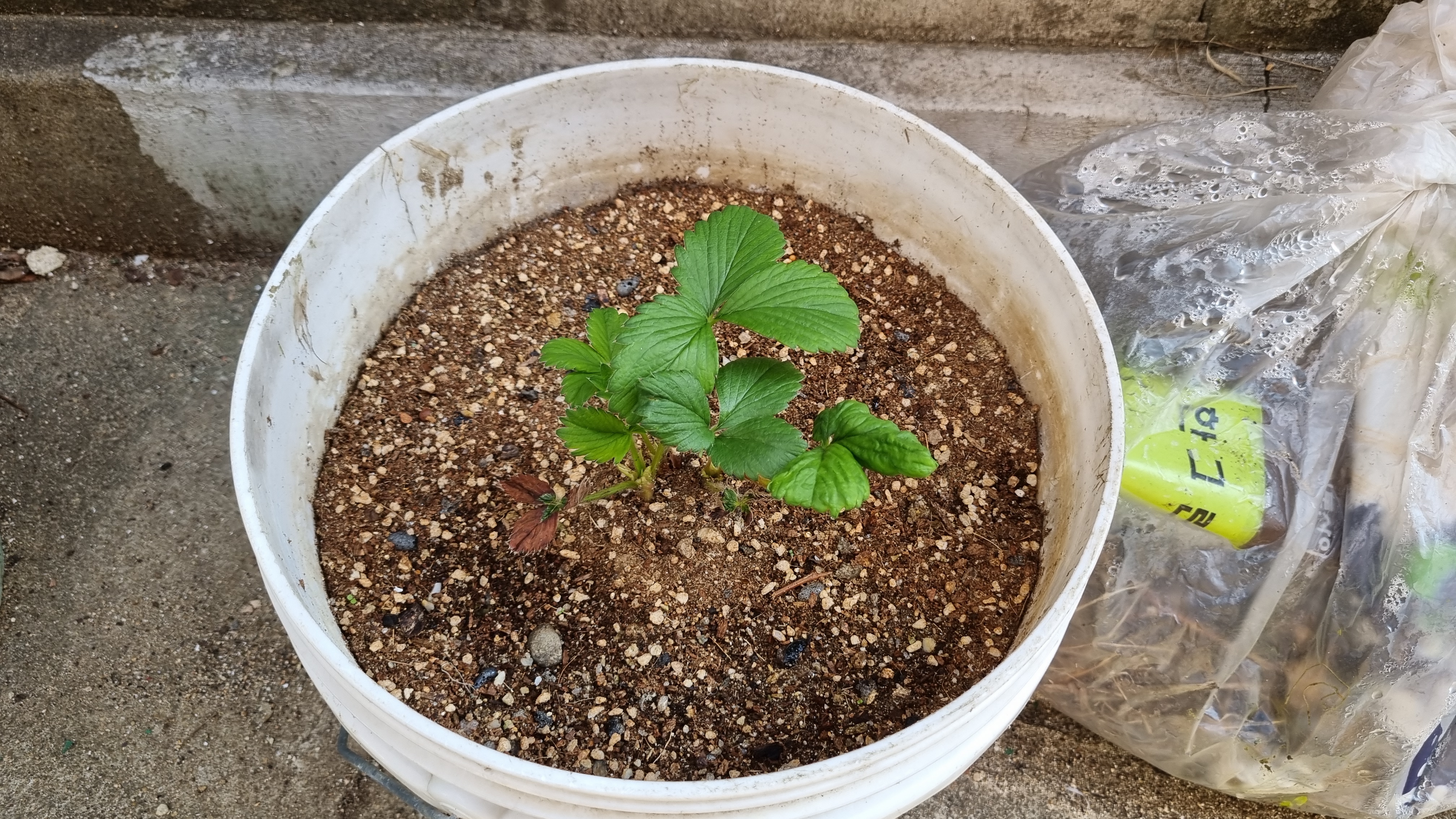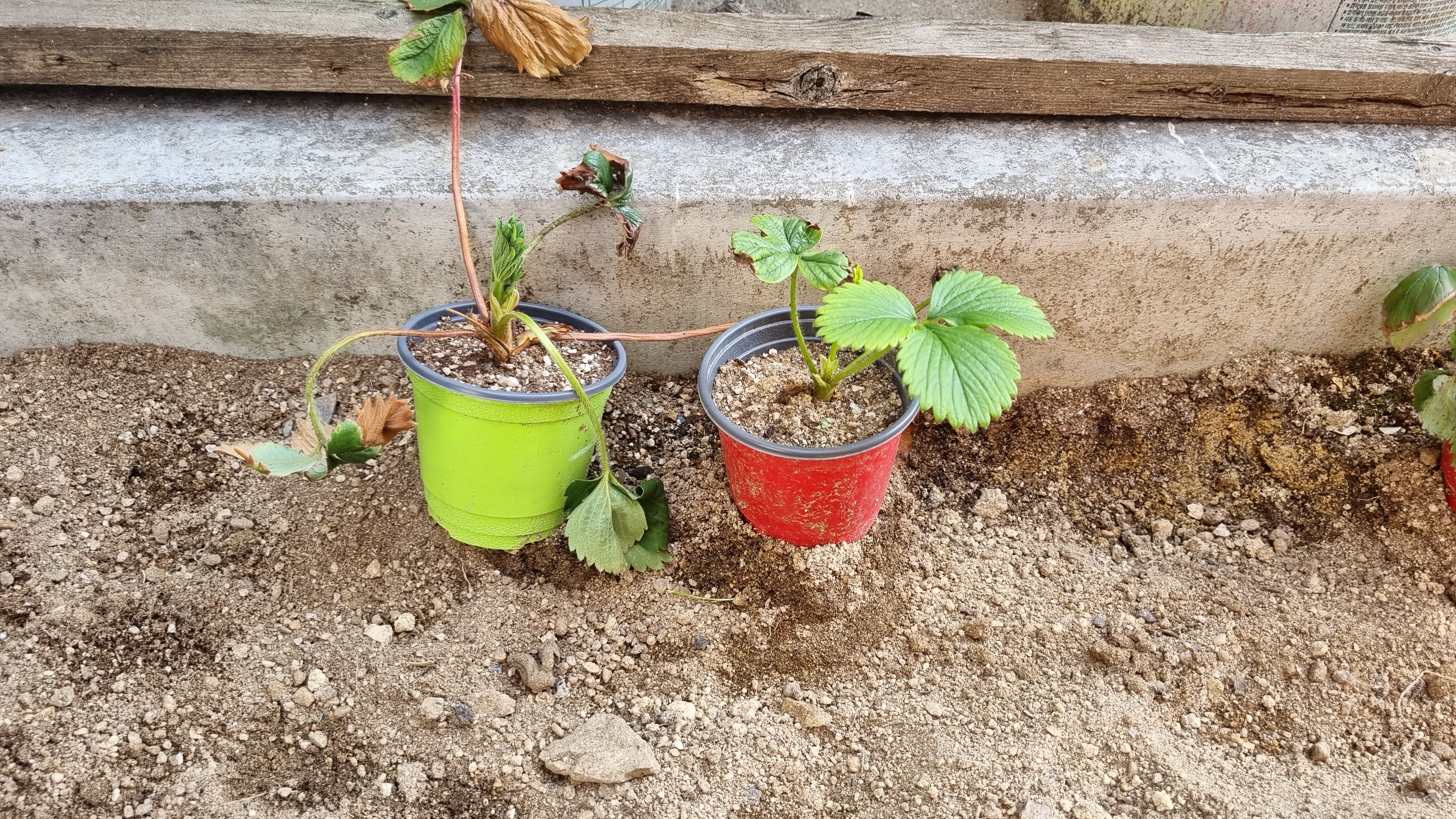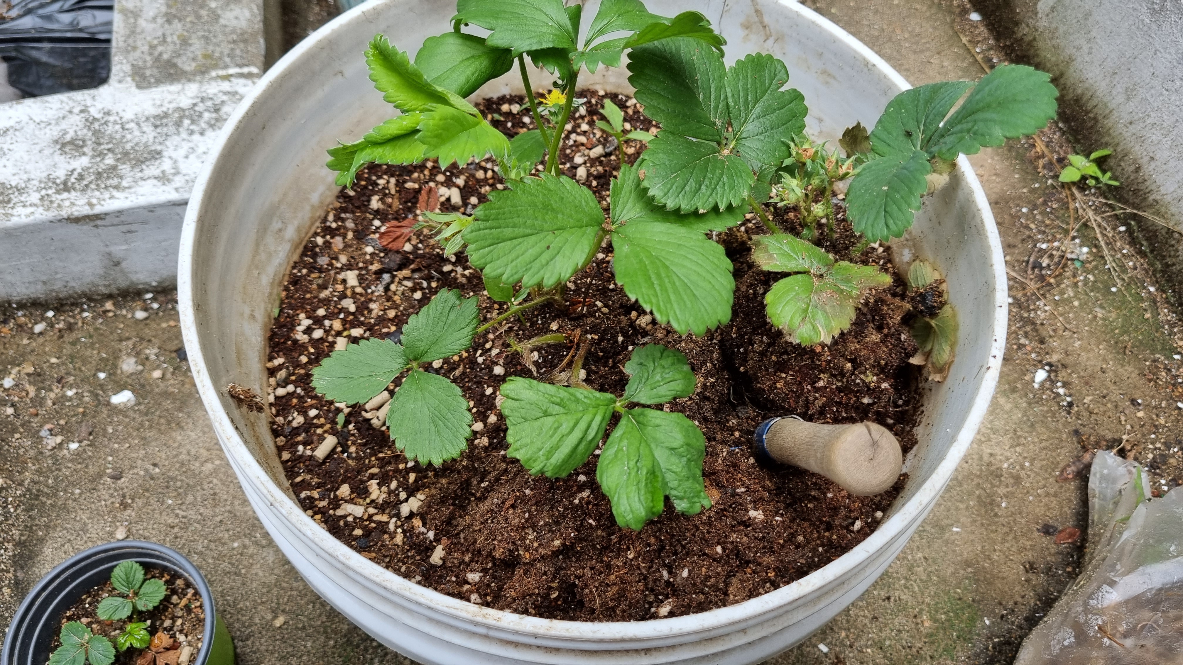 화분에 옮겨 심은 킹스베리 2번은 잘 큰다. 하지만 작은 화분에 잠시 옮겨둔 딸기들은 죽어 간다.