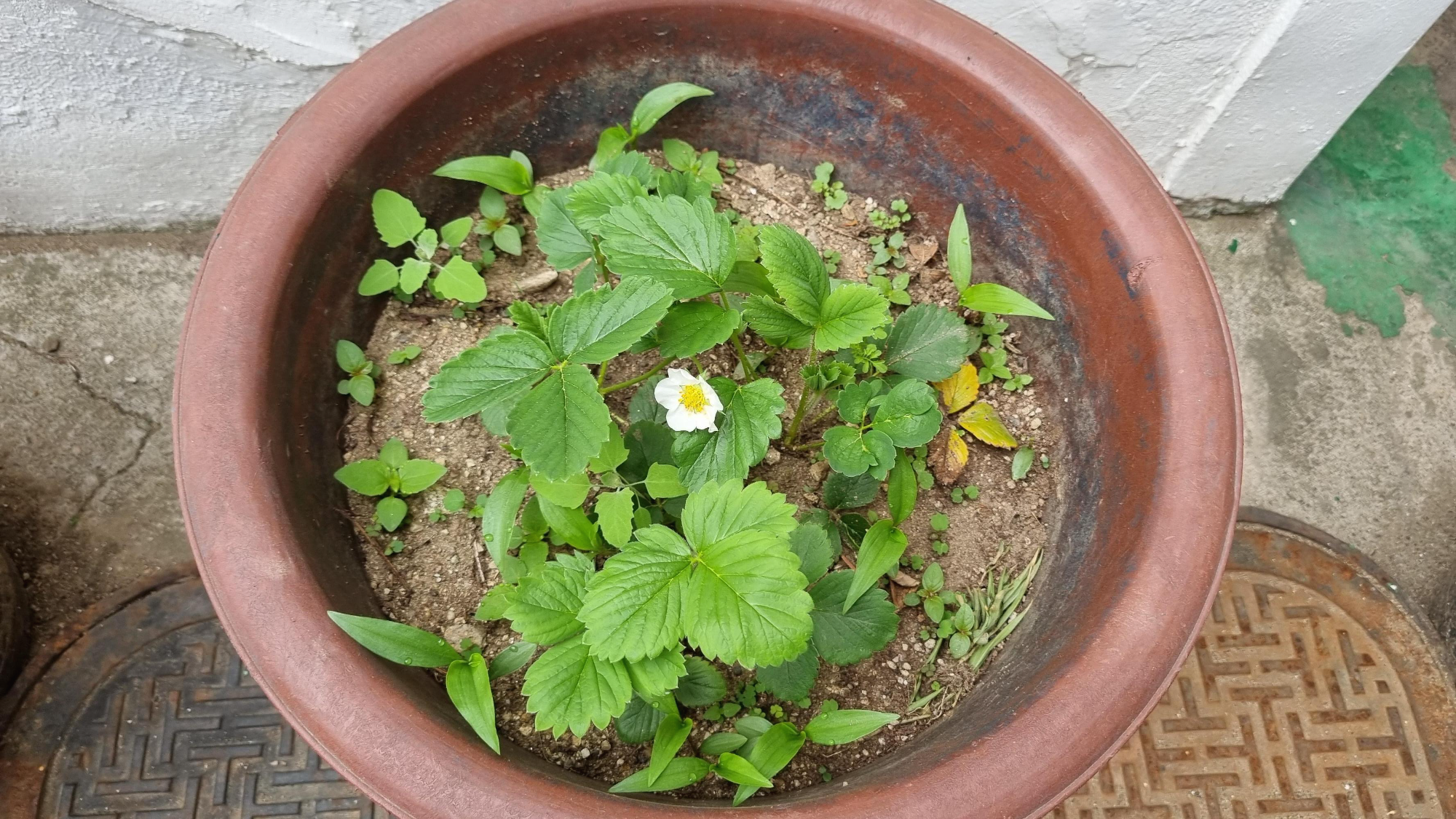 딸기는 크게 신경 쓰지 않아도 때가 되면 꽃이 핀다.