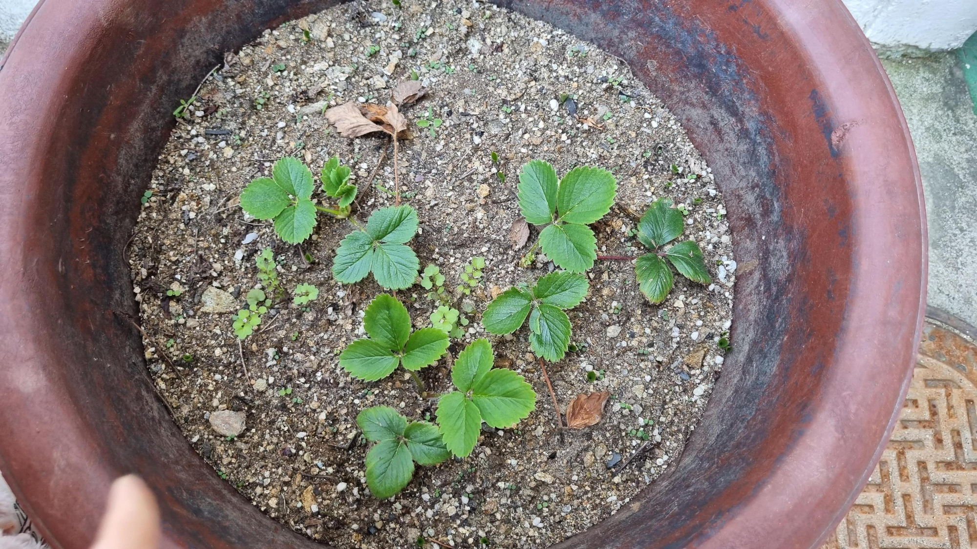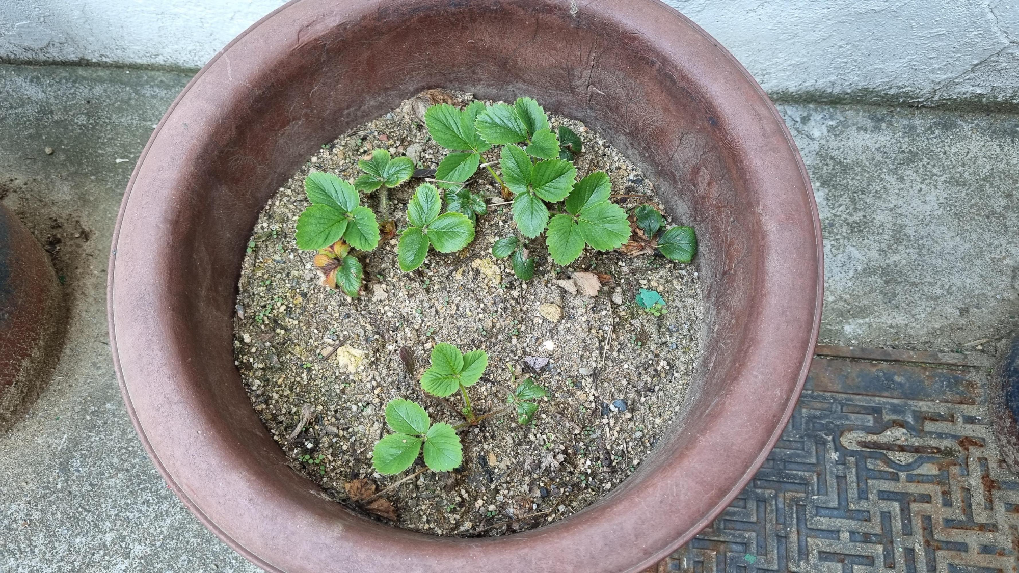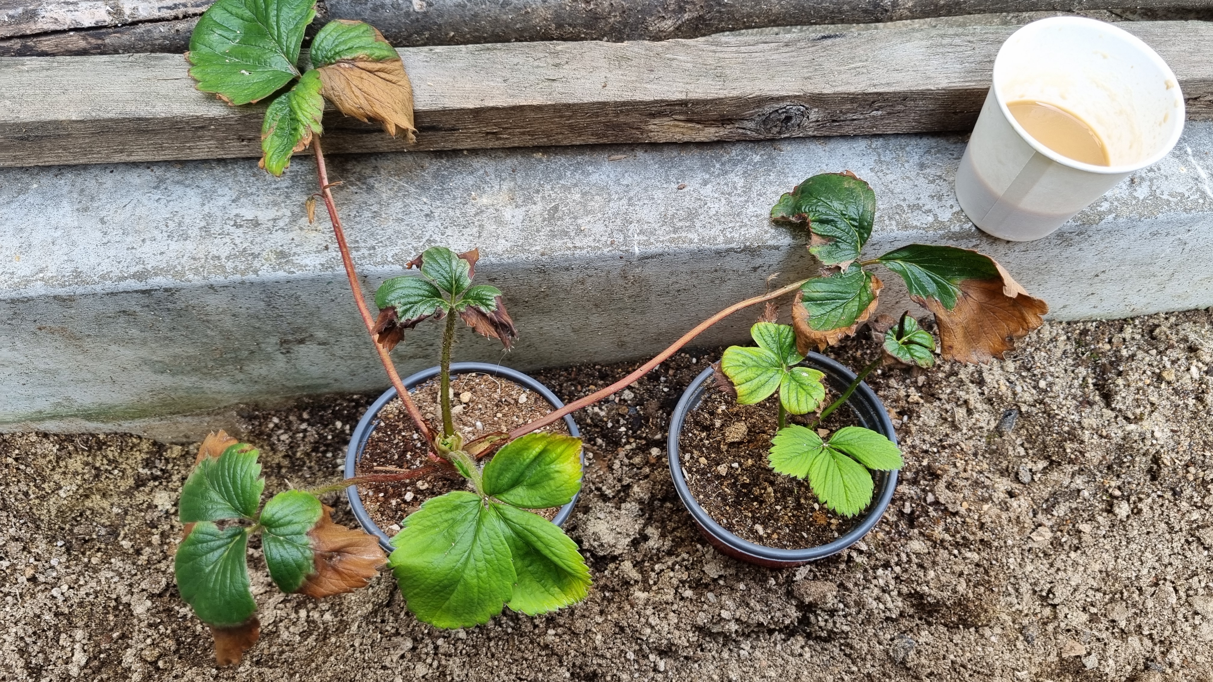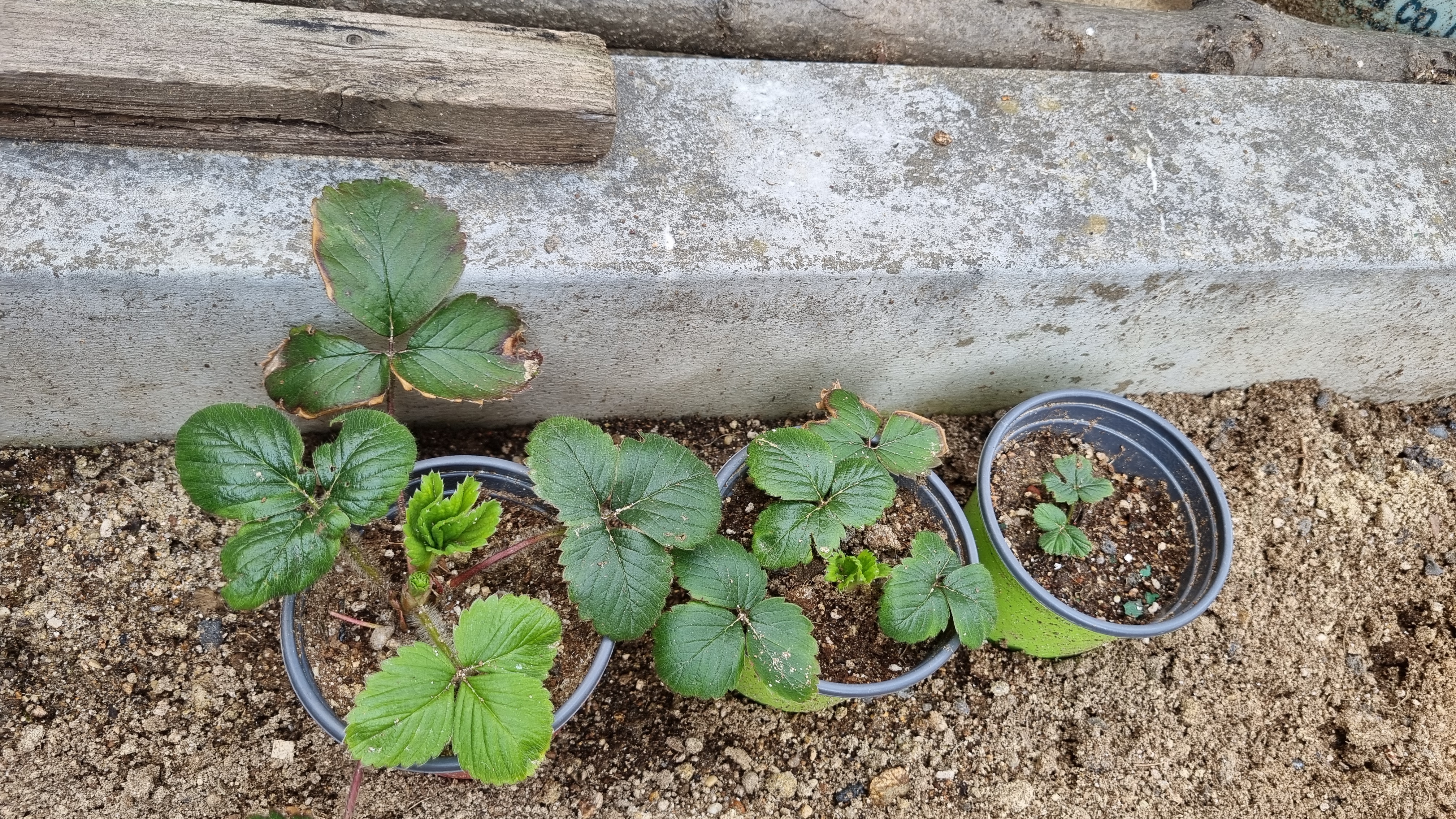 일반 딸기를 옮겨둔 3개의 화분이 처참하다.