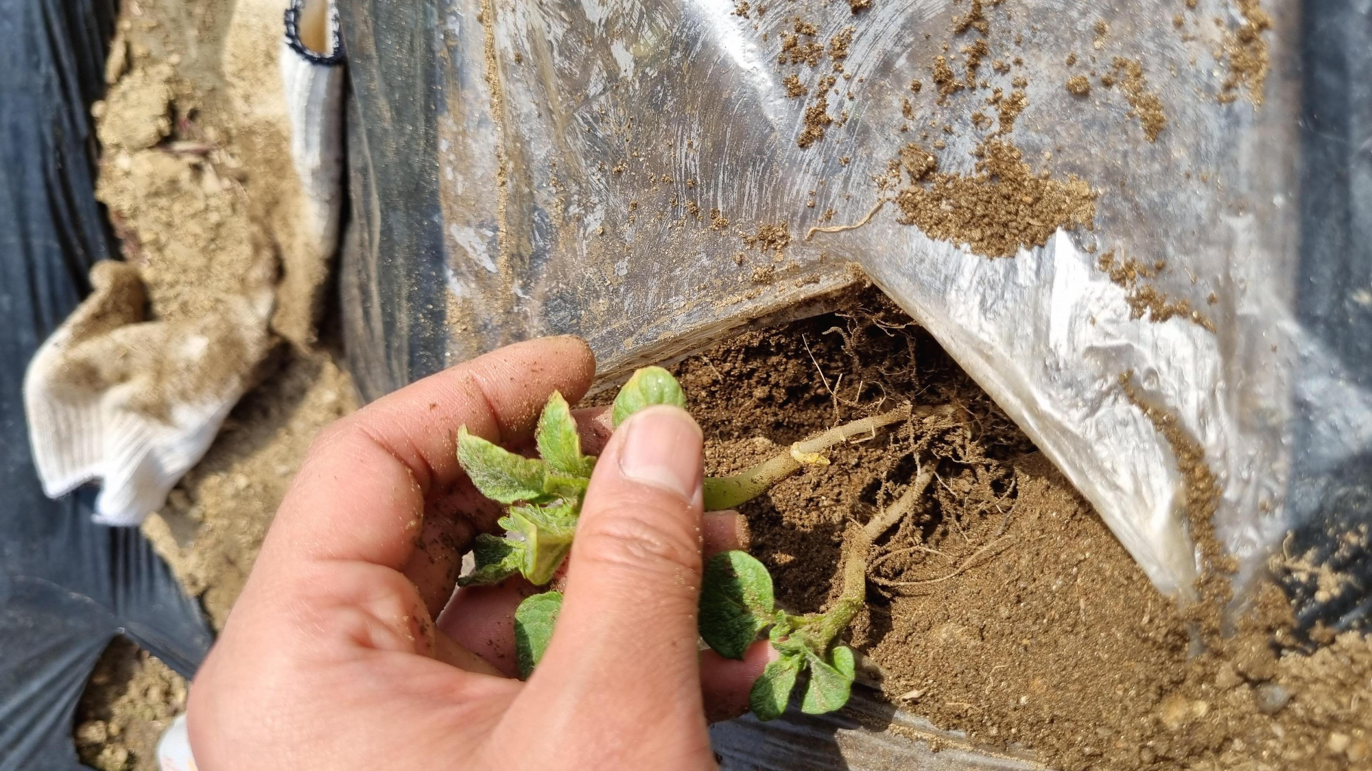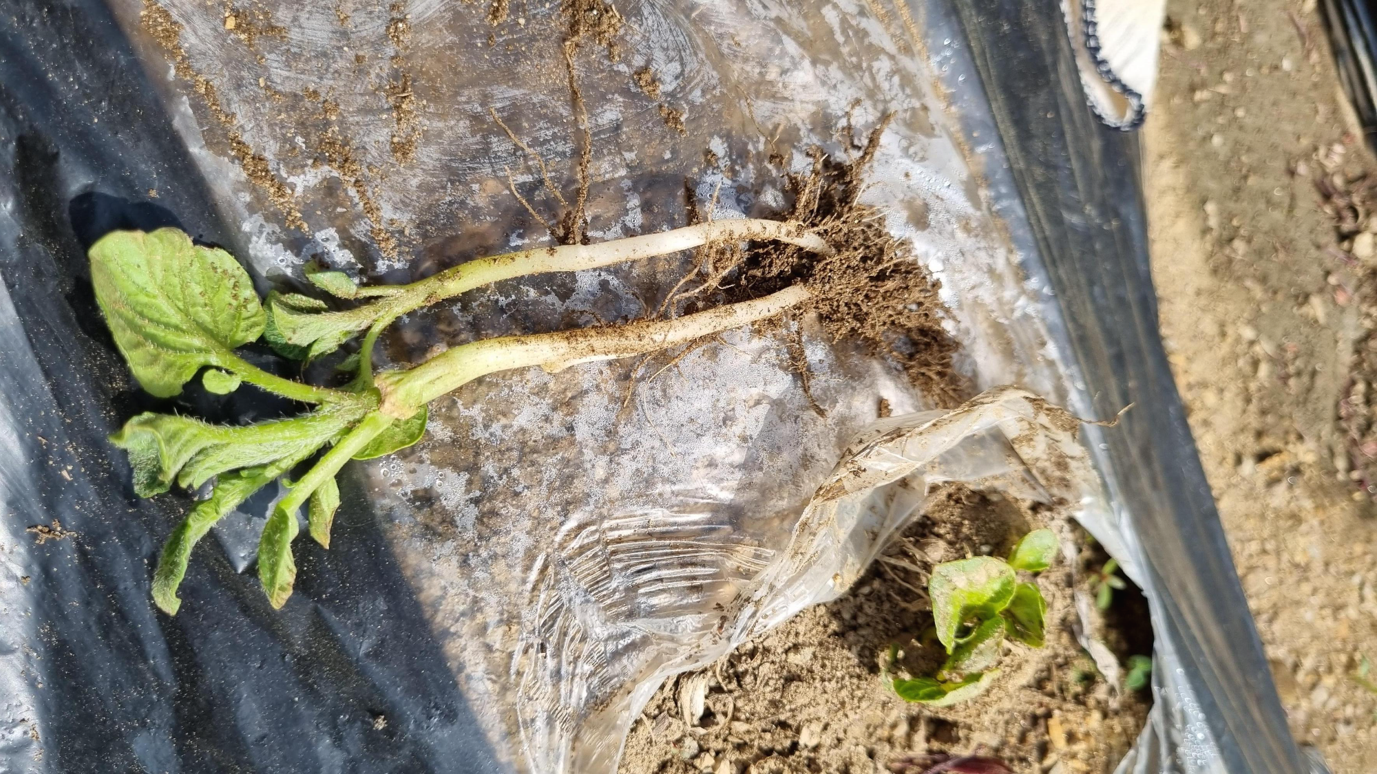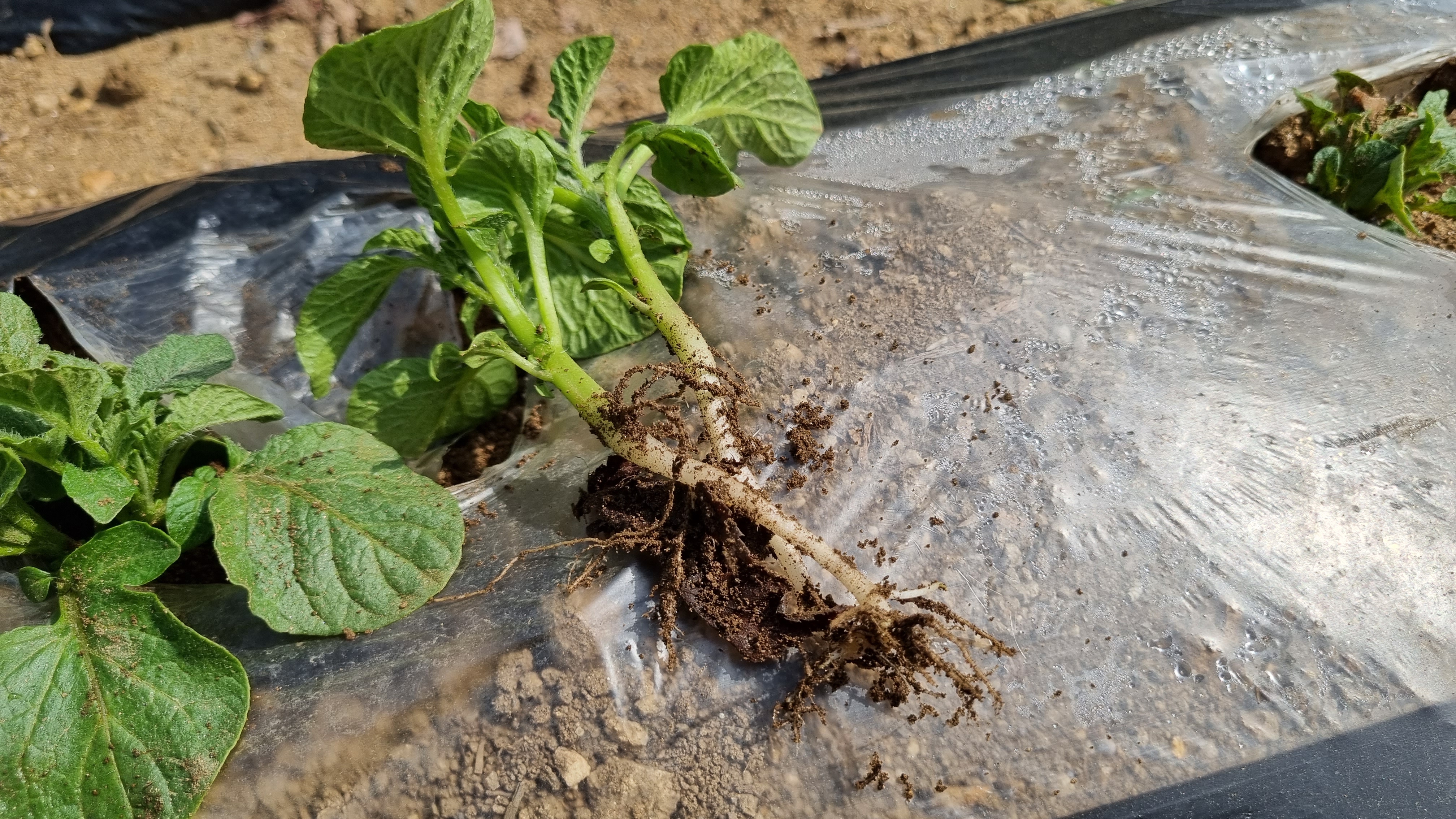 감자 삭이 여러개 나온 곳에서 줄기를 뽑았다.