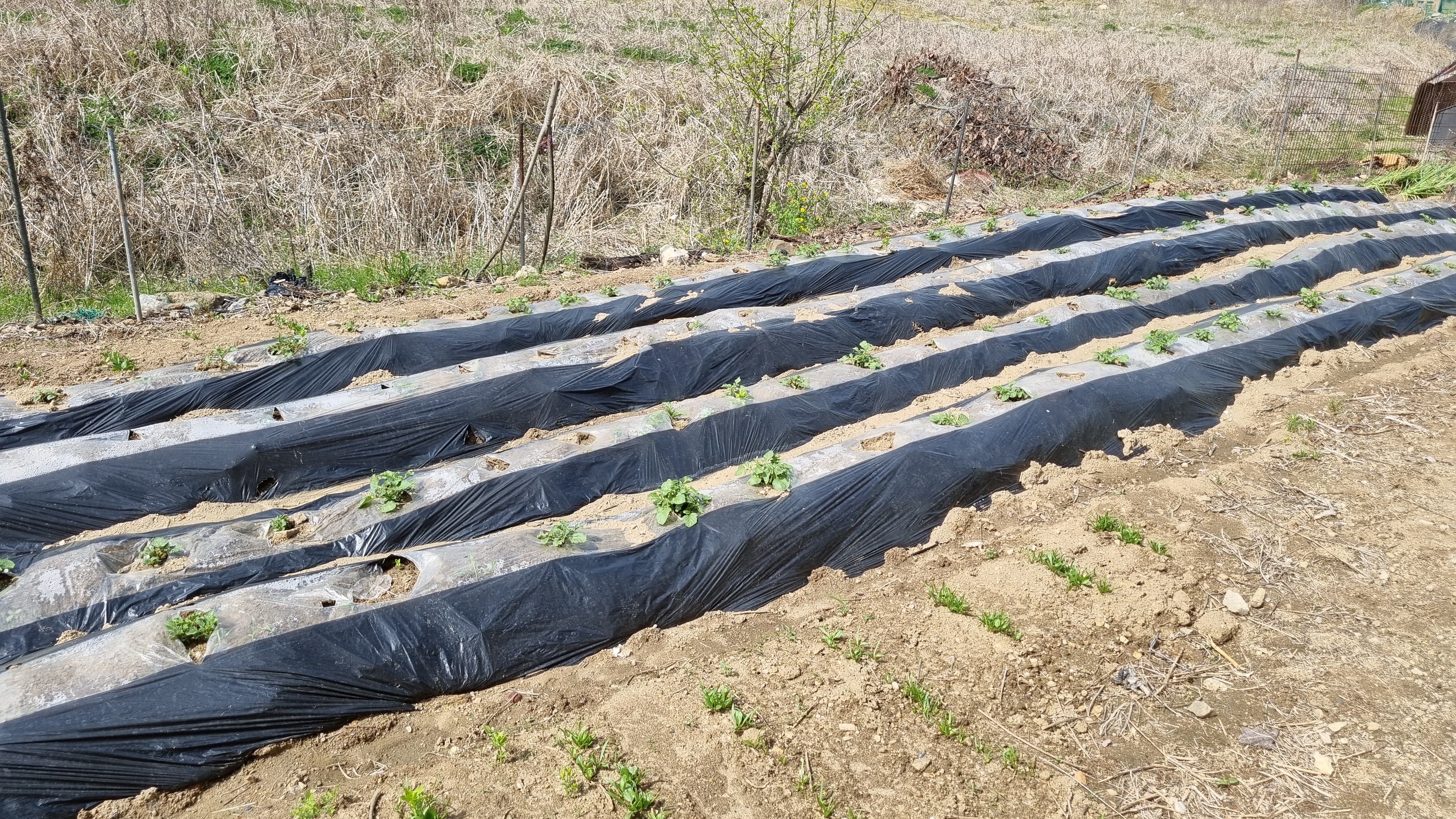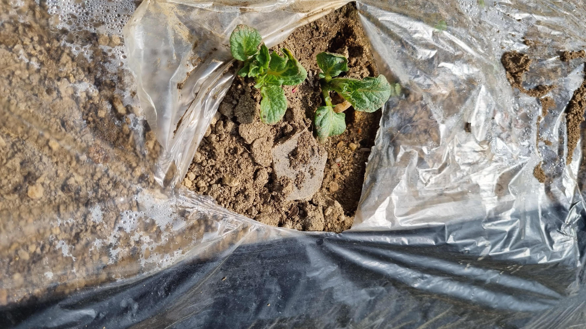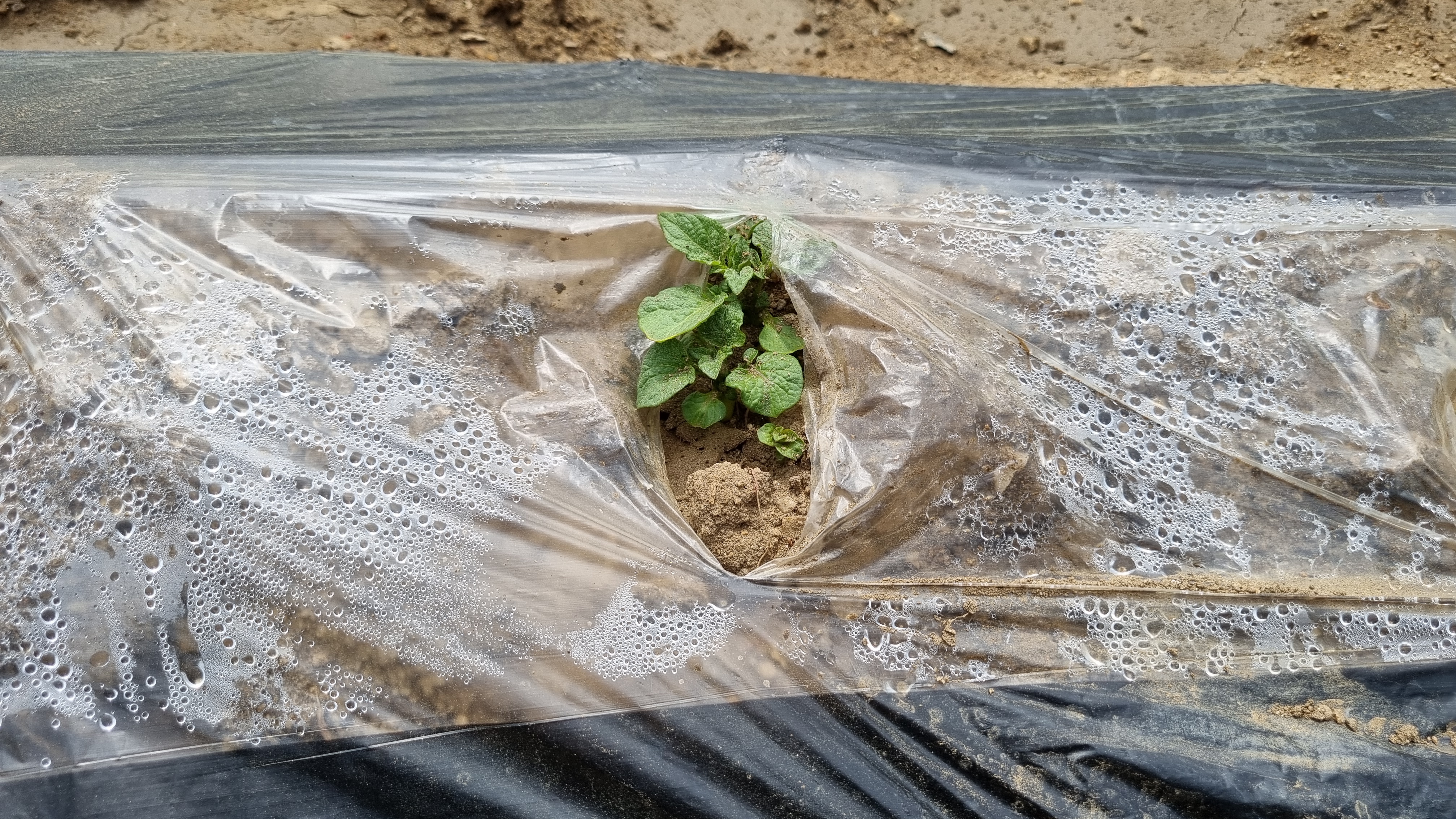작지만 거의 모든 구멍에서 감자 싹이 올라왔다.