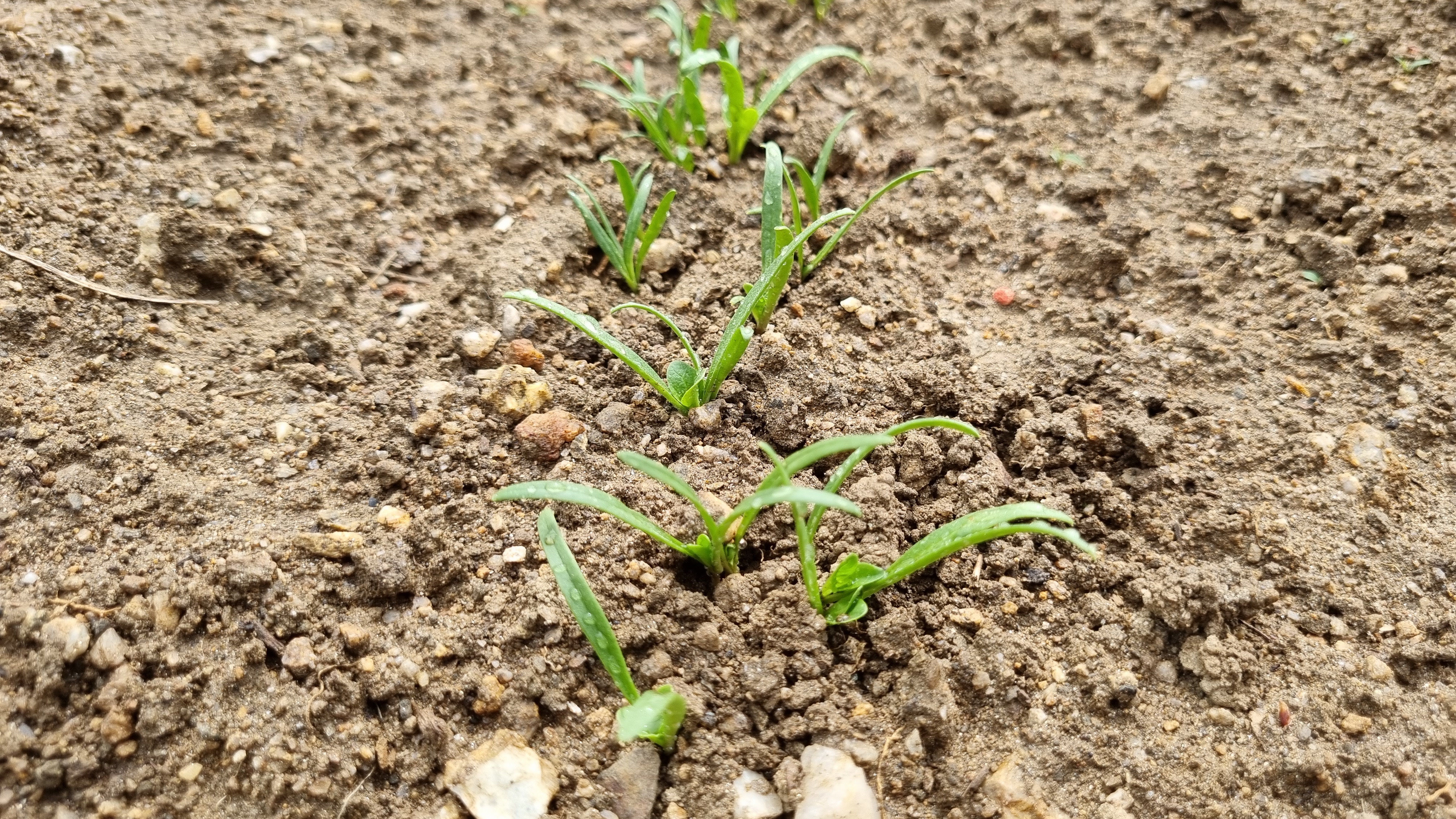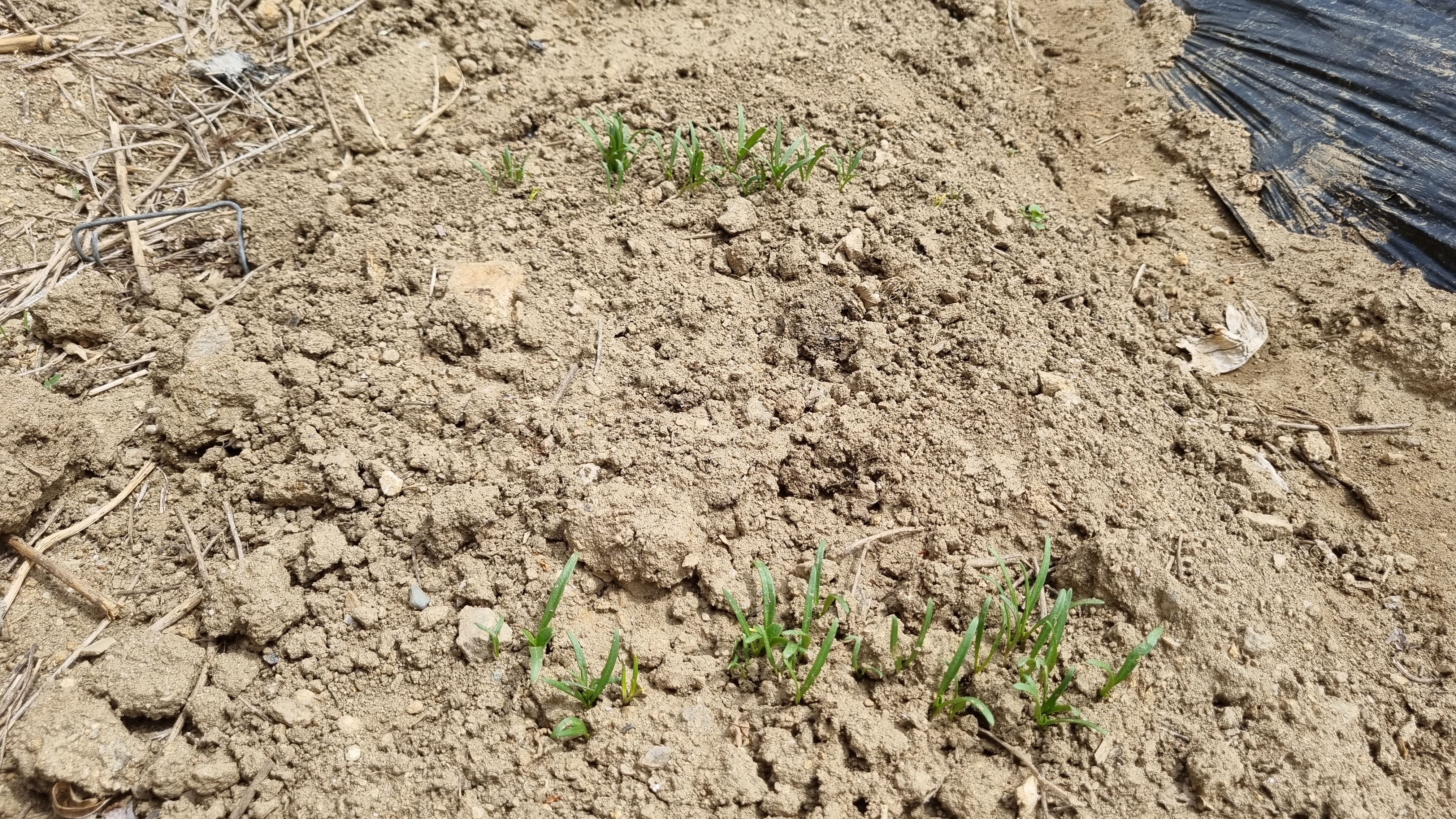 시금치를 씨앗을 뿌리고 약 2주 후 땅에서 뭐가 나오긴 나온다. 내가 씻었을 뿌린 라인을 따라 잡초 같은 풀이 나오기 시작했다. 아무리 봐도 시금치 같이 생기진 않았다. 설마 잔디가 자라고 있는 것은 아니겠지?! 분명 시금치가 맞을 것이라 확신한다. 그러나 처음엔 진짜 잔디처럼 생겼다.