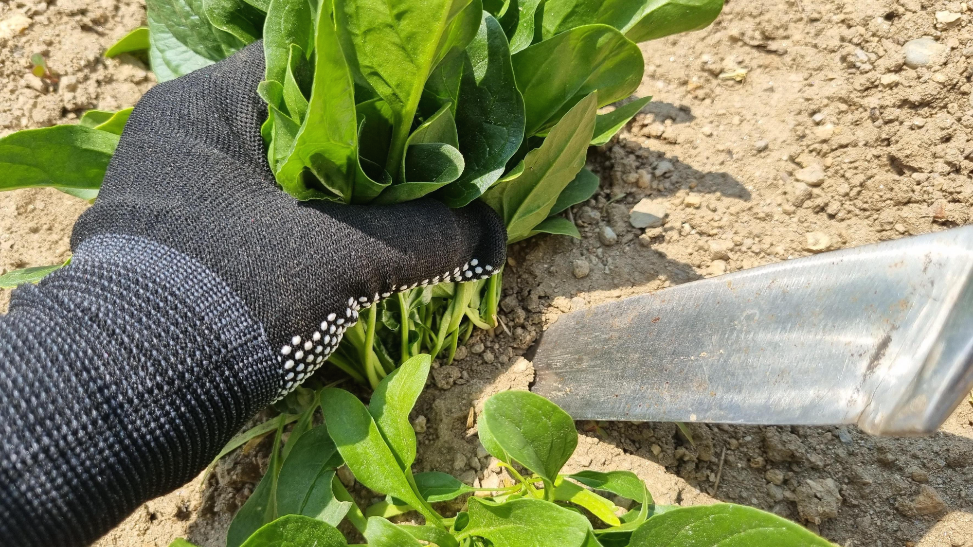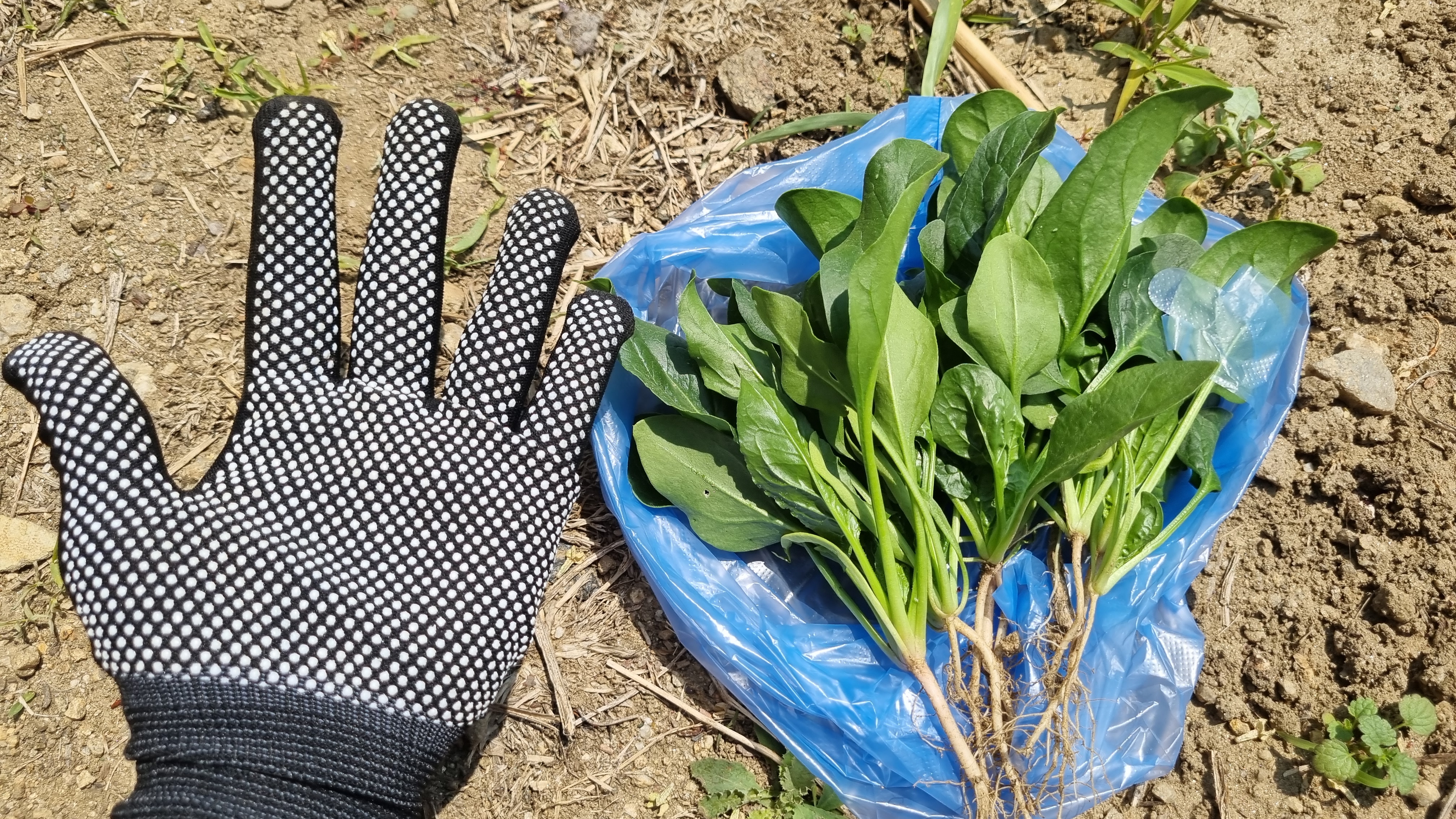 다시 주변에서 알려준 방법대로 시금치를 뜯었다. 시금치를 잡고 칼을 땅에 살짝 넣어서 시금치 뿌리를 자르면 된다. 이 방법이 훨씬 편하고 빠르다. 역시. 농사도 경험이 중요한 것 같다.