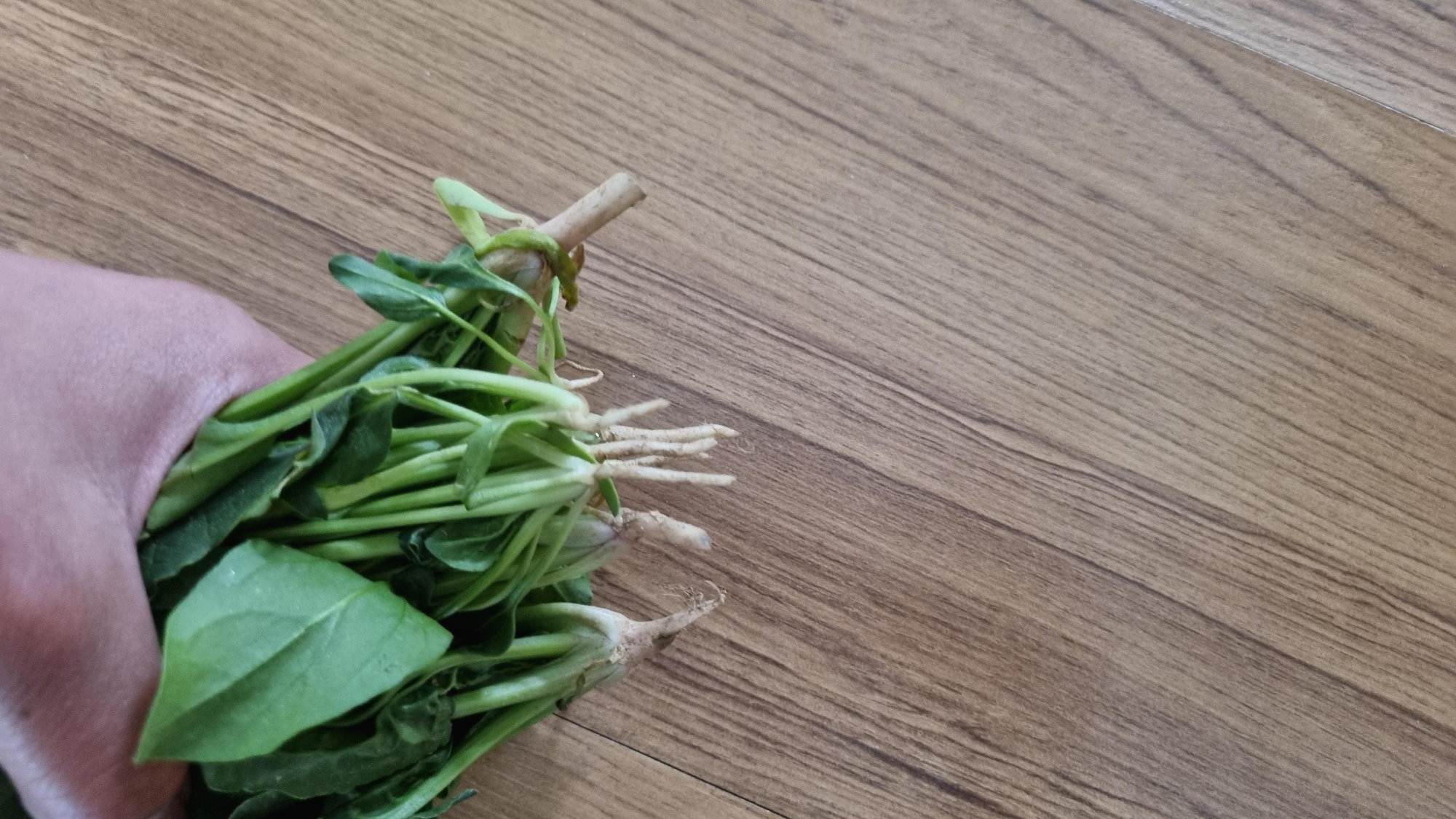 분명 시금치 뿌리를 칼로 자르고 사진을 찍은 거 같은데 밭에서 찍은 사진이 없다. 그래서 집에서 마지막 사진을 찍었다.