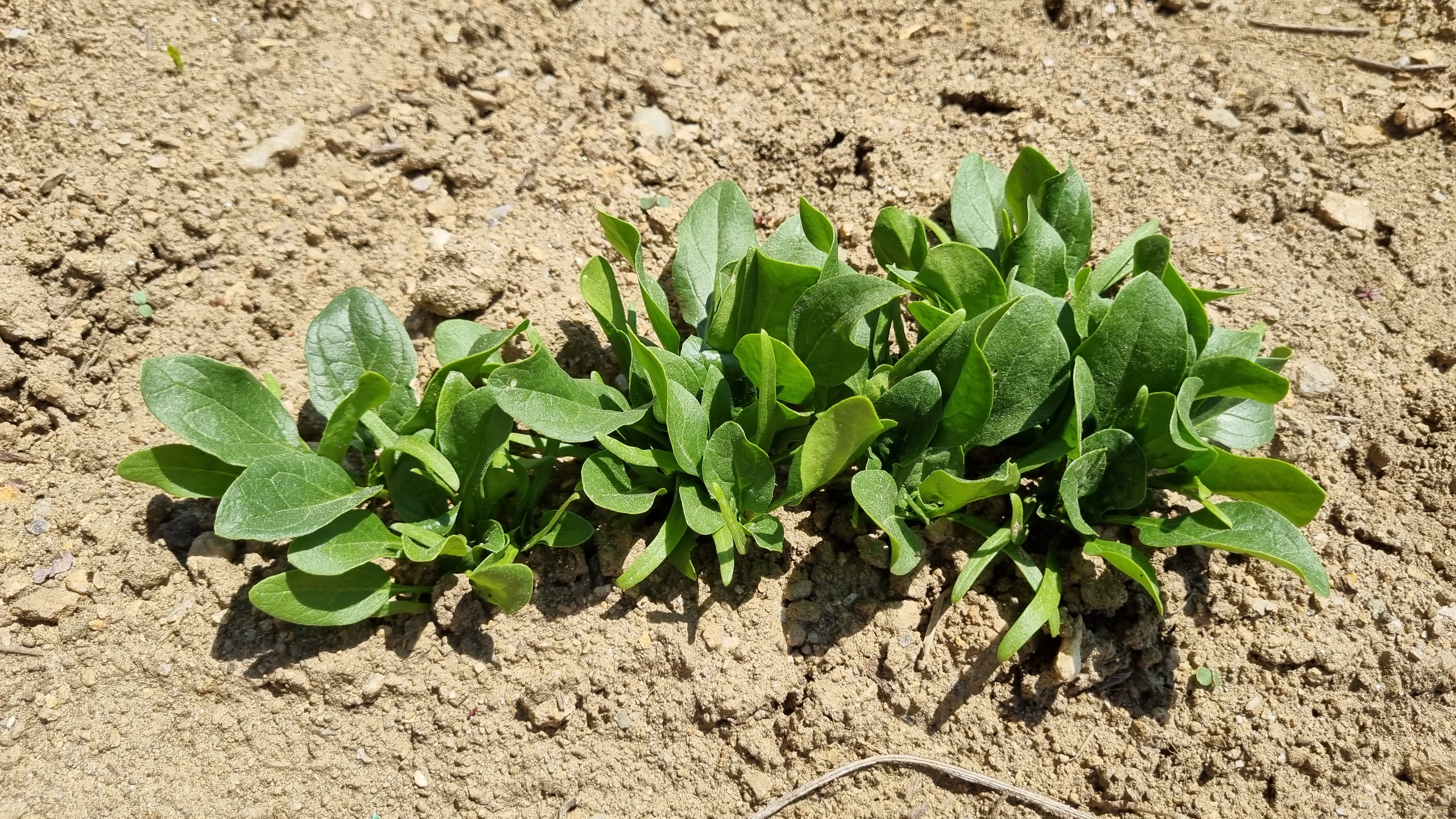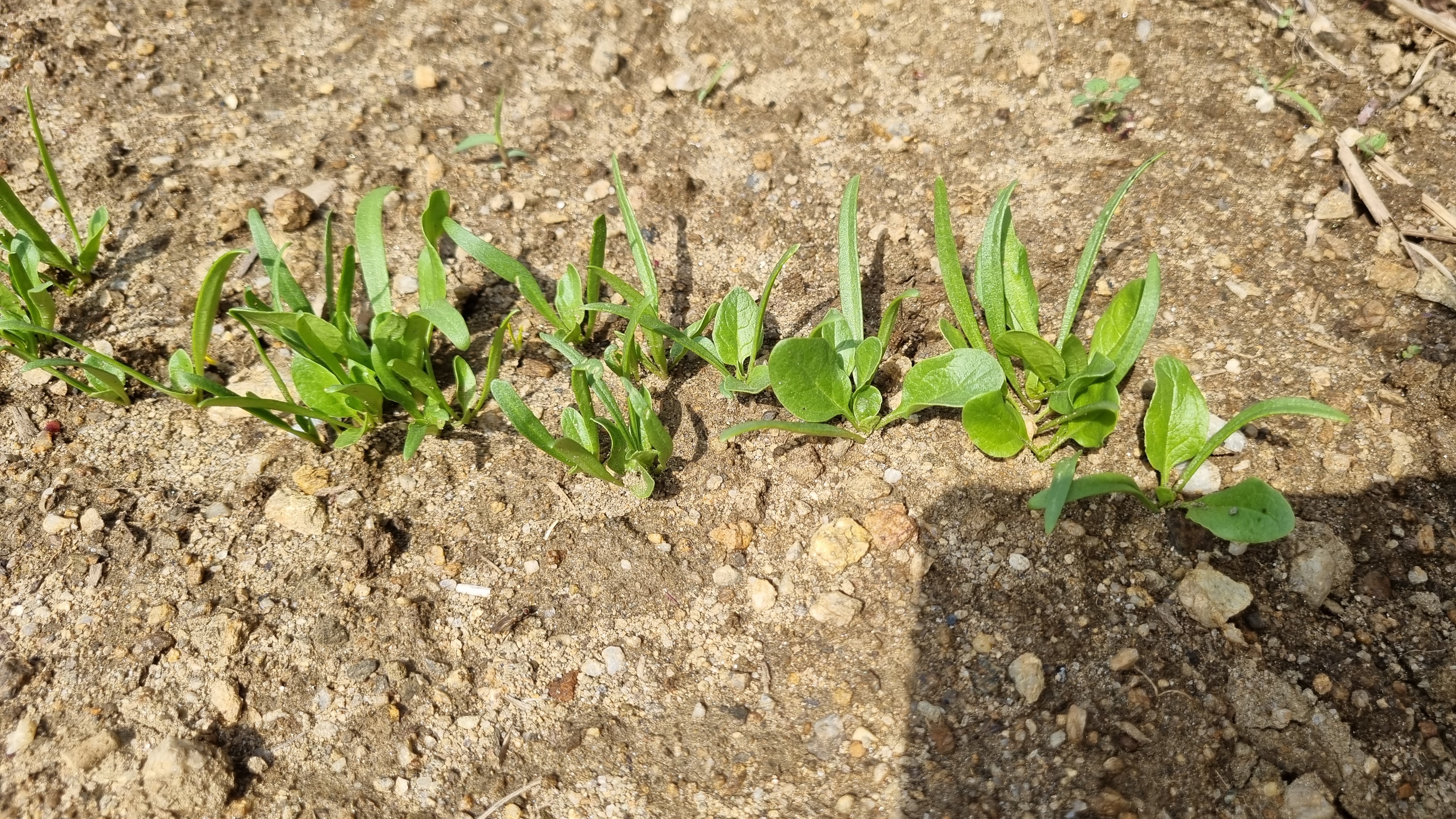 잔디 같이 생긴 시금치를 확인하고 5일이 지난 후 다시 시금치를 심은 밭에 갔다. 제법 시금치 모양을 닮은 잎이 생겼다. 그래!! 이것은 시금치가 확실하다. 처음엔 잔디처럼 그냥 길쭉한 풀이 나오더니 점차 잎이 시금치처럼 넓어진다. 신기하기도 하지!!