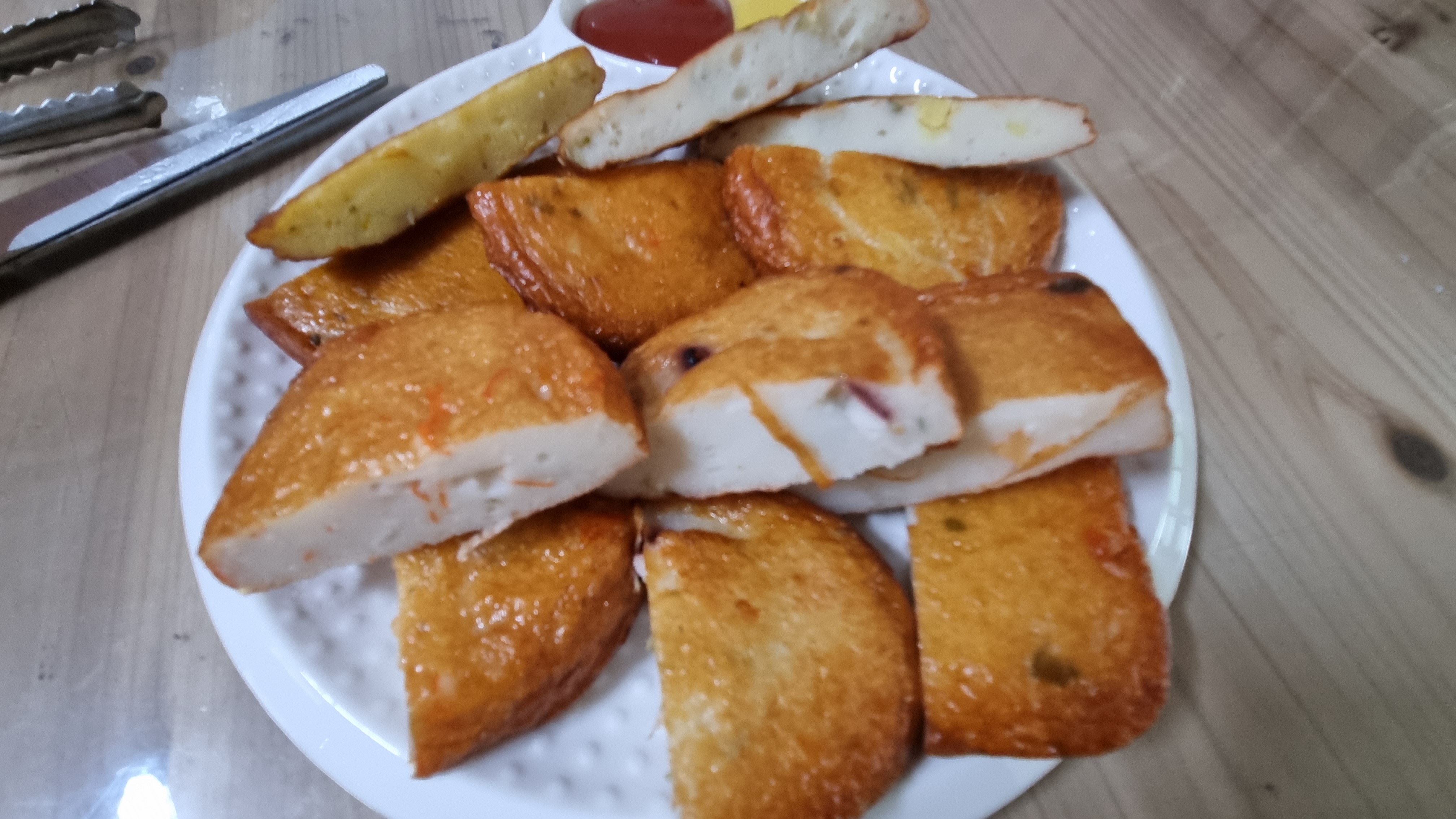 찾았다. 송일형 수제 어묵 명인. 사실 유튜브에서 송일형 수제 어묵 명인을 보고 안양 중앙 시장에 갔다. 어묵 참 맛있다. 모양도 예쁘고 색도 알록달록한 색감 때문에 부가 적인 재료 없이도 충분히 풍성해 보인다. 어묵탕 육수로만 어묵탕을 끓였는데 제법 맛있다. 그리고 남은 어묵은 냉동실에 넣었다. 냉동실에 넣었다 꺼내서 기름에 다시 튀겼다. 조금 탄 것 같은 색깔이지만 안 탔다. 어묵 마이야르 반응이 생겼다고나 할까...
