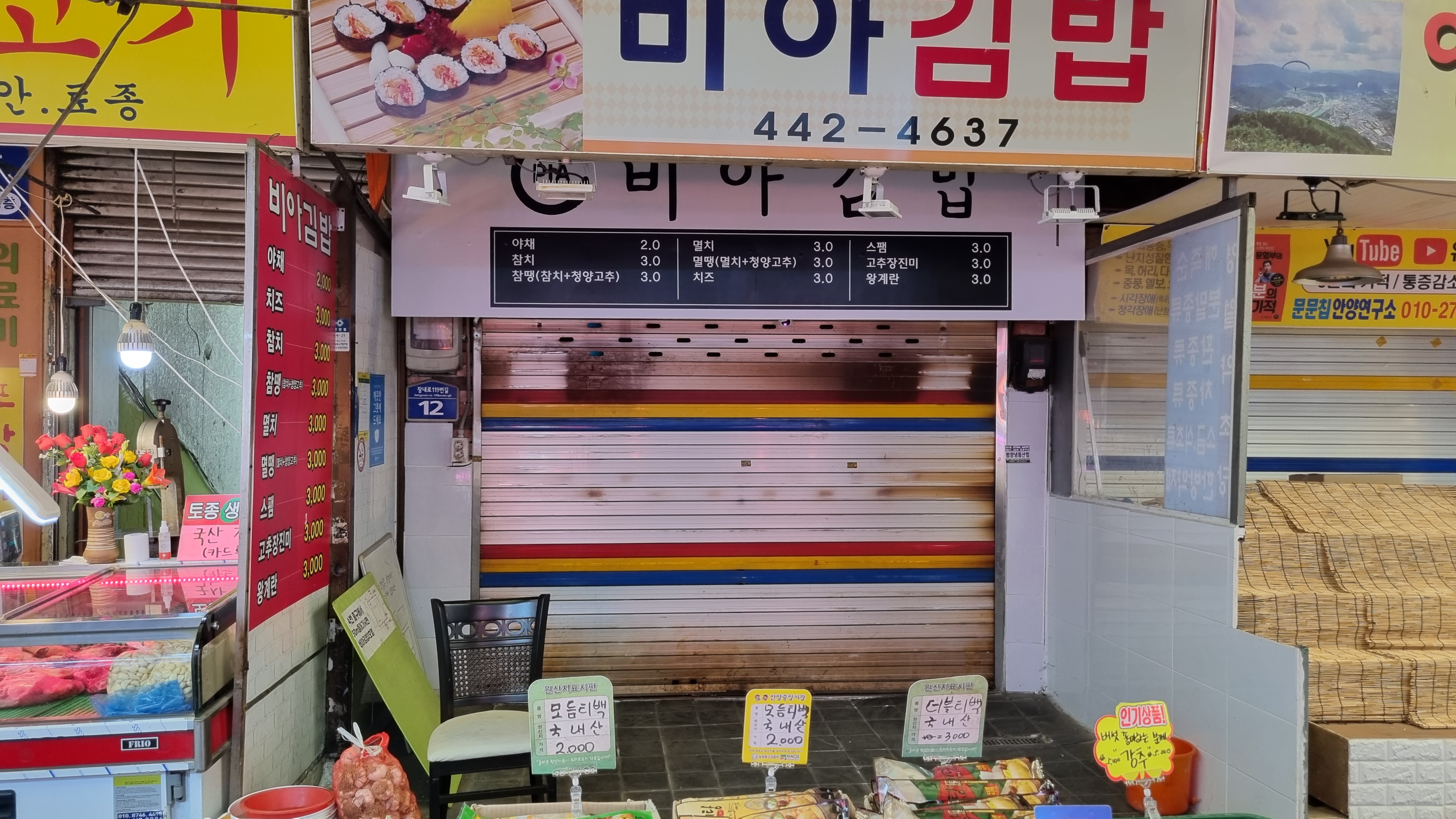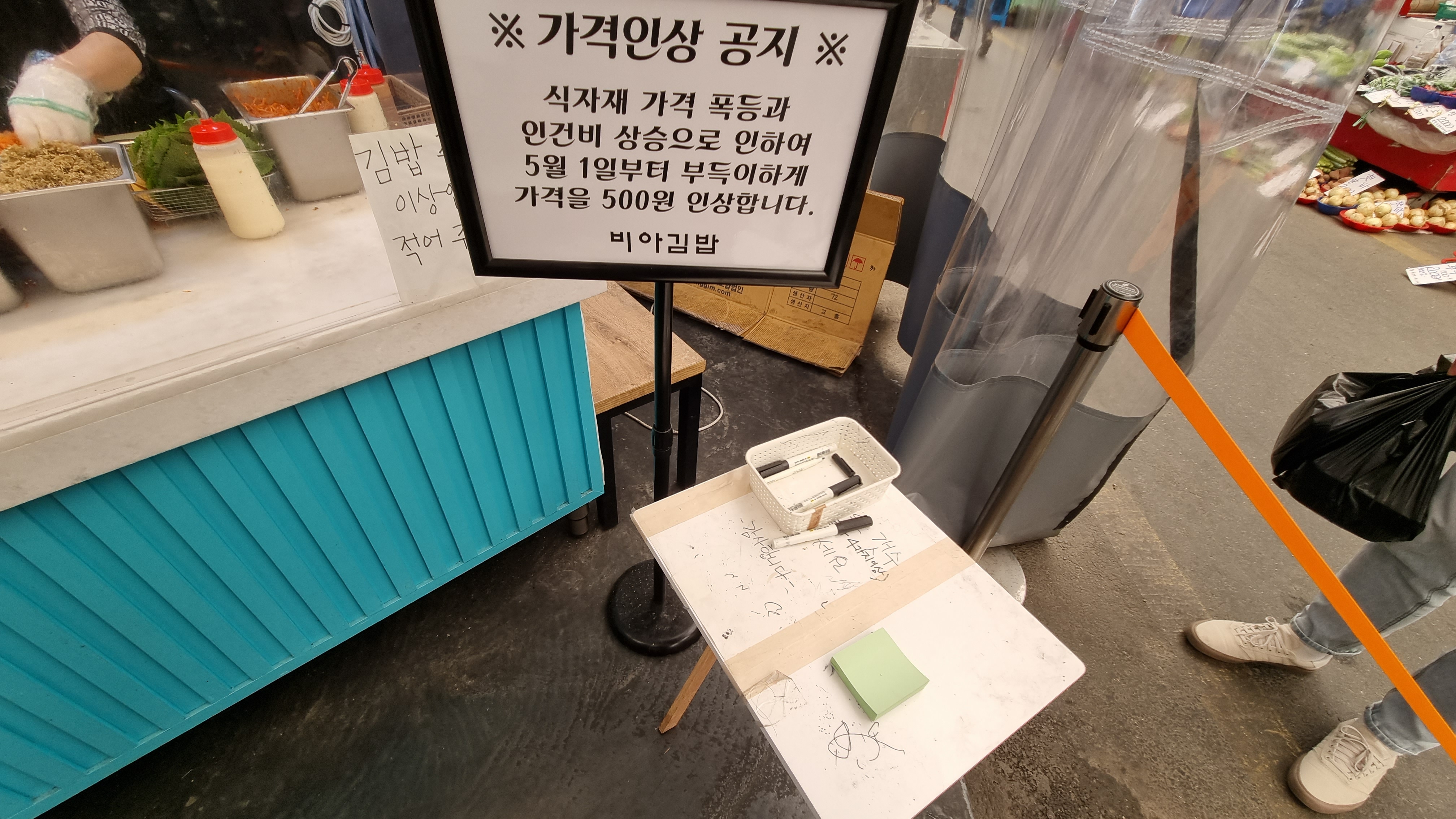 안양 중앙시장에 비아 김밥은 2개가 있다. 처음에 찾았던 곳은 문을 닫았다. 주말엔 모두 오픈 하지만 평일엔 한 곳만 문을 여는 듯했다. 요즘 물가가 다 오르고 있다. 비아 김밥도 어쩔 수 없이 가격을 인상했다.