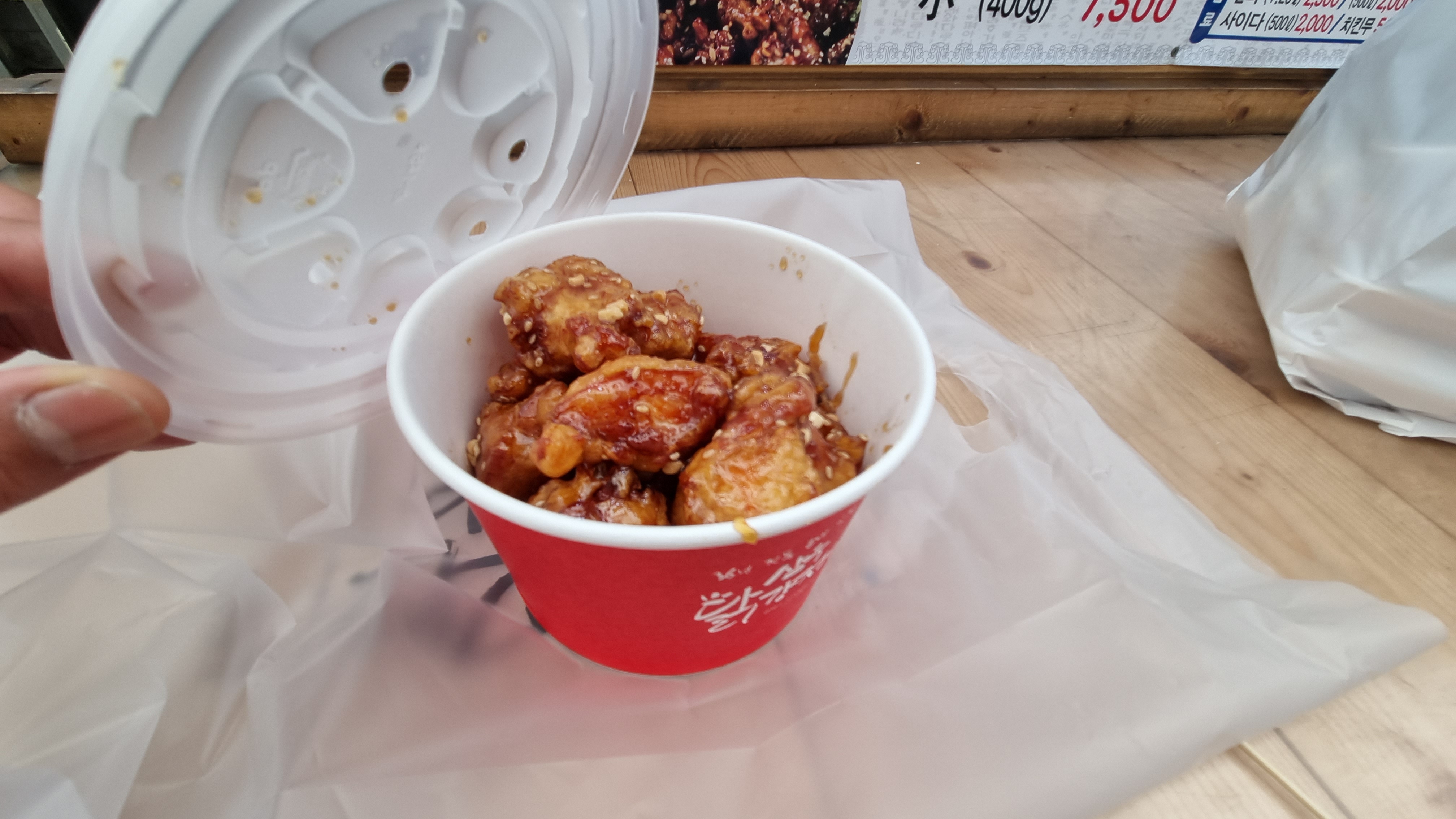 배부른데 닭강정 냄새에 끌려 결국 소자 하나를 주문했다. 순한 맛으로.