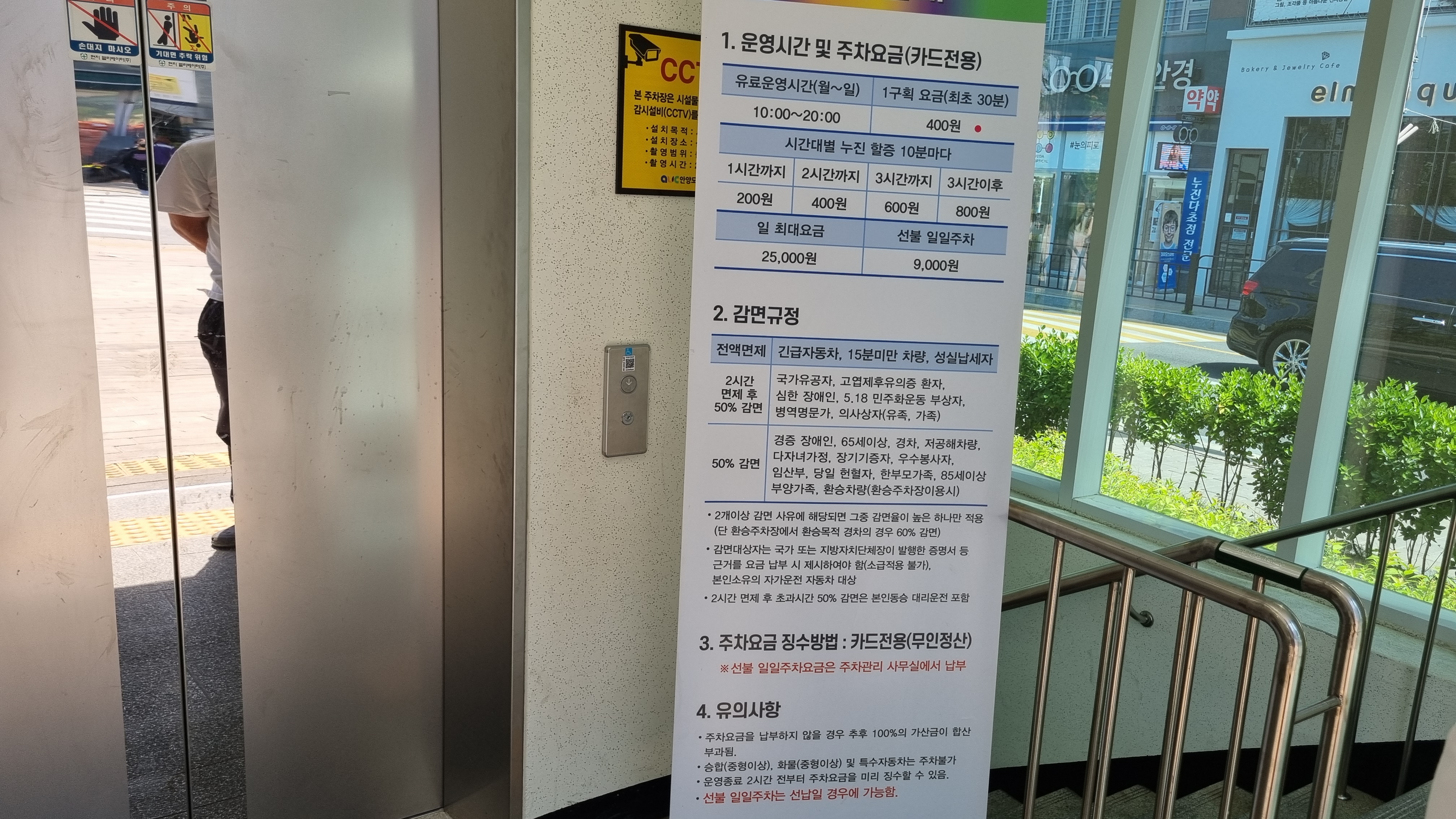 시장에서 문건을 사고 주차권을 받는다. 주차권이 있으면 최초 1시간 30분을 감면받을 수 있다. 즉, 2,200원을 할인해 준다. 내가 주차한 시간은 1시간 57분. 원래는 3,400원이지만 주차권으로 2,200원을 할인받아 주차요금 1,200원을 지불했다.