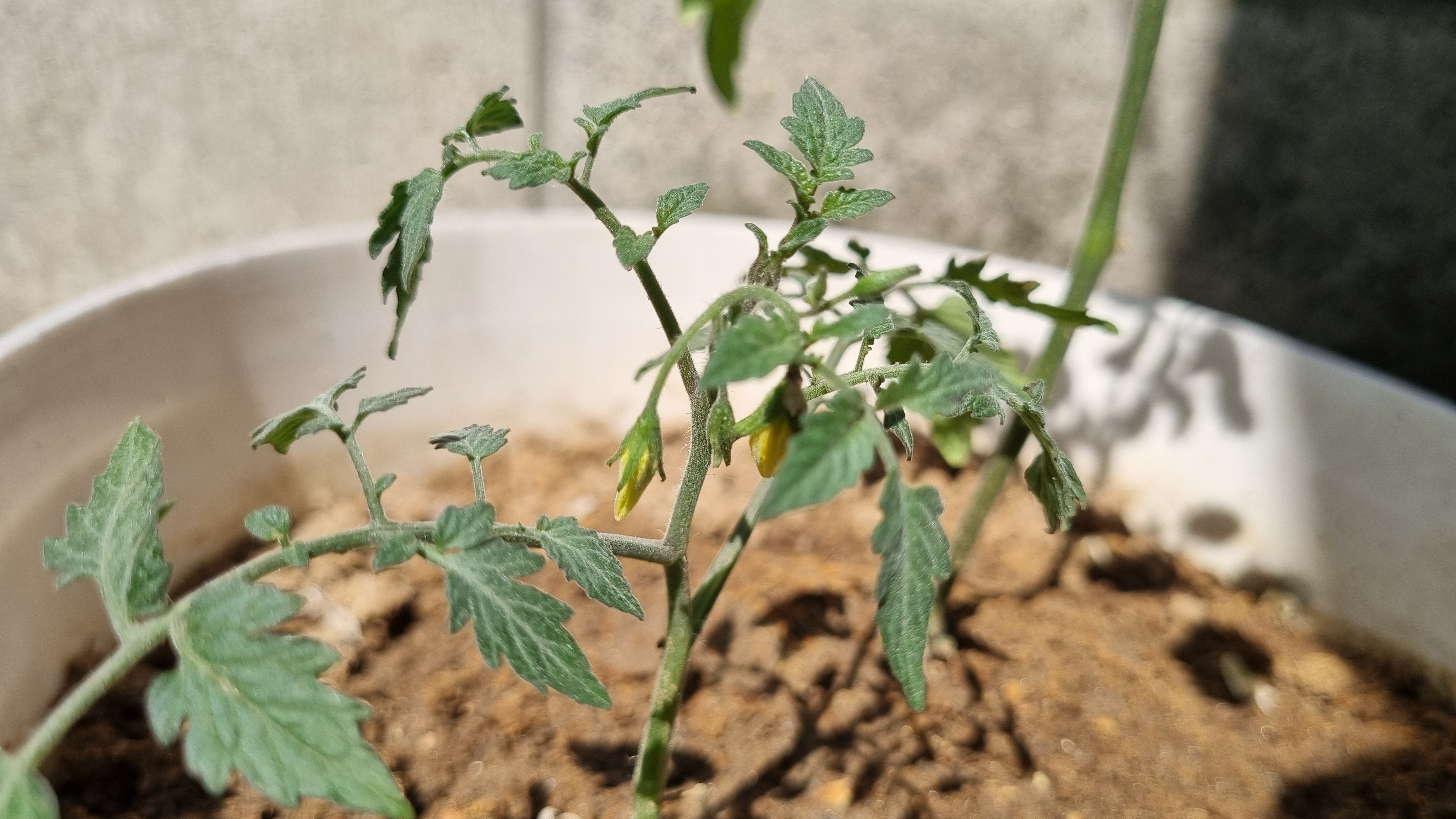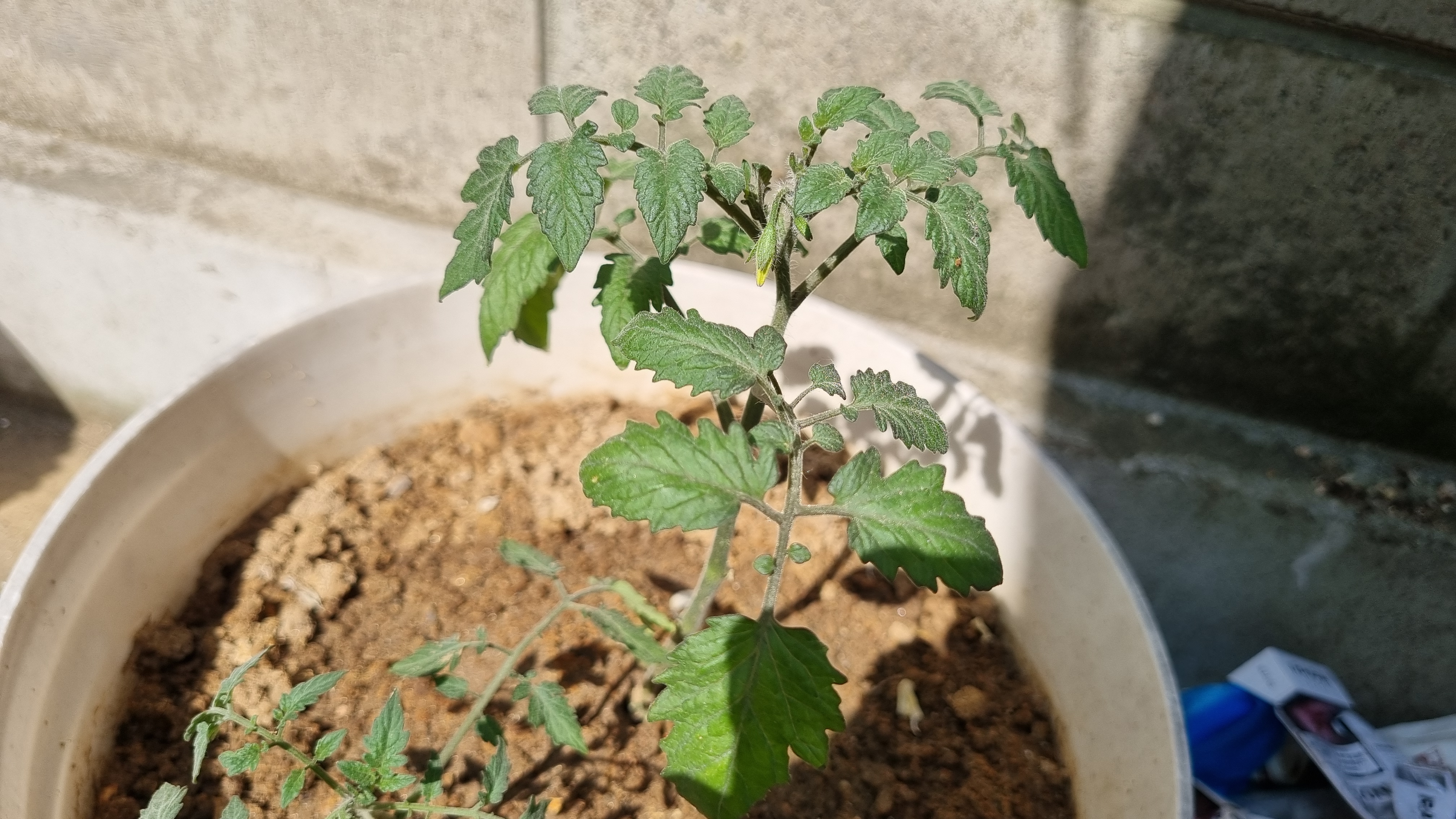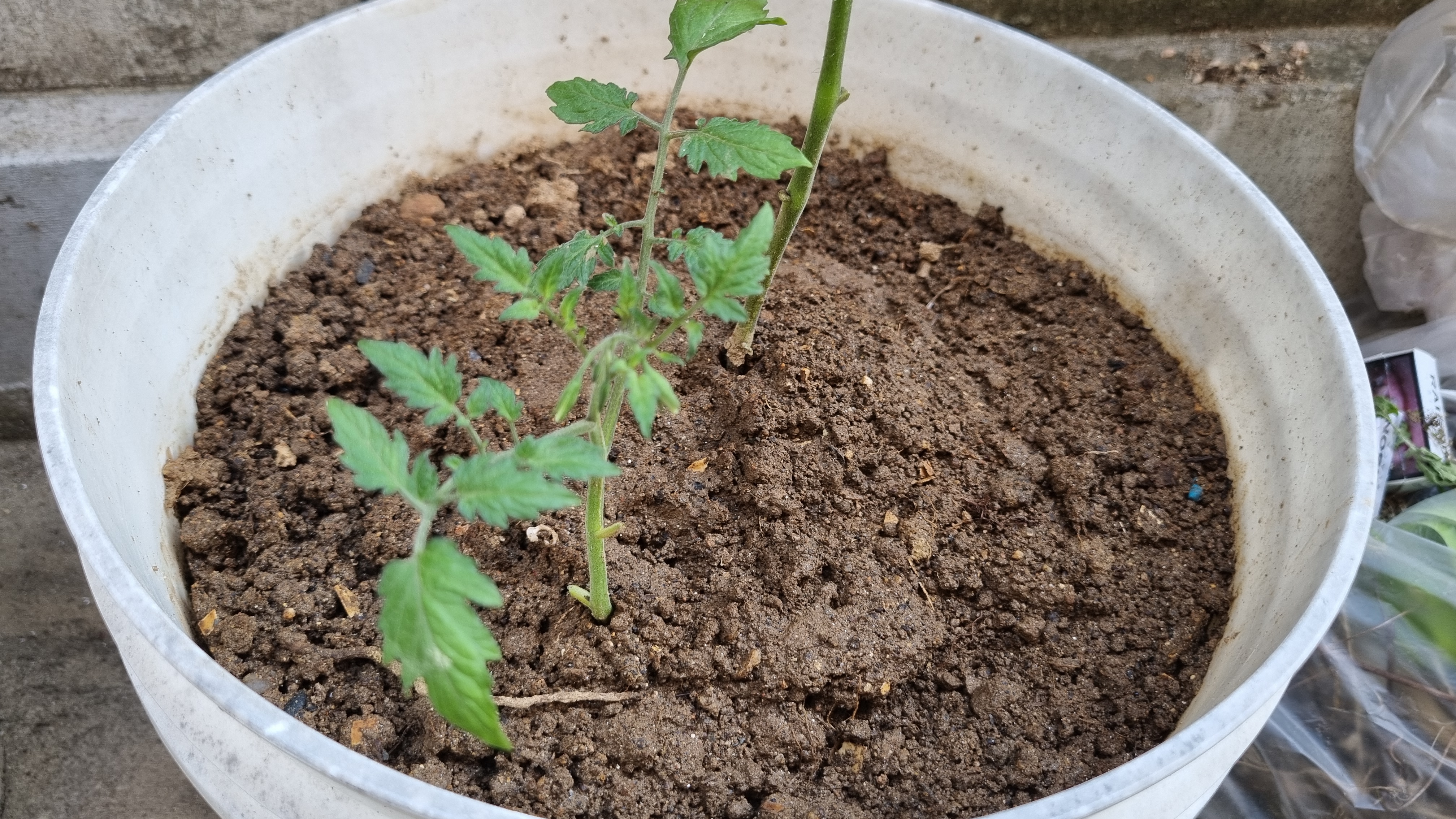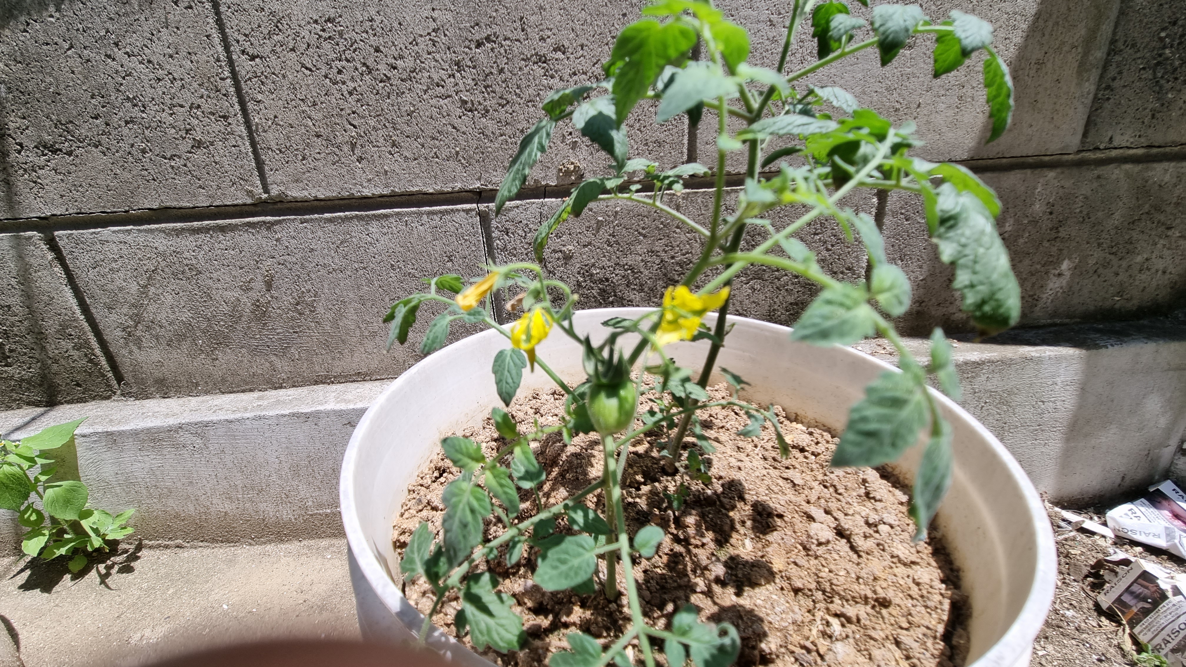 하나의 화분에 2개의 토마토 모종이 심어져 있다. 분명 그때 아버지가 모종을 심어 주시면서 하나는 무슨 토마토, 하나는 무슨 토마토라고 일컫어 주셨는데. 기억이 안 난다. 결론은 2개의 토마토 종이 다르다.