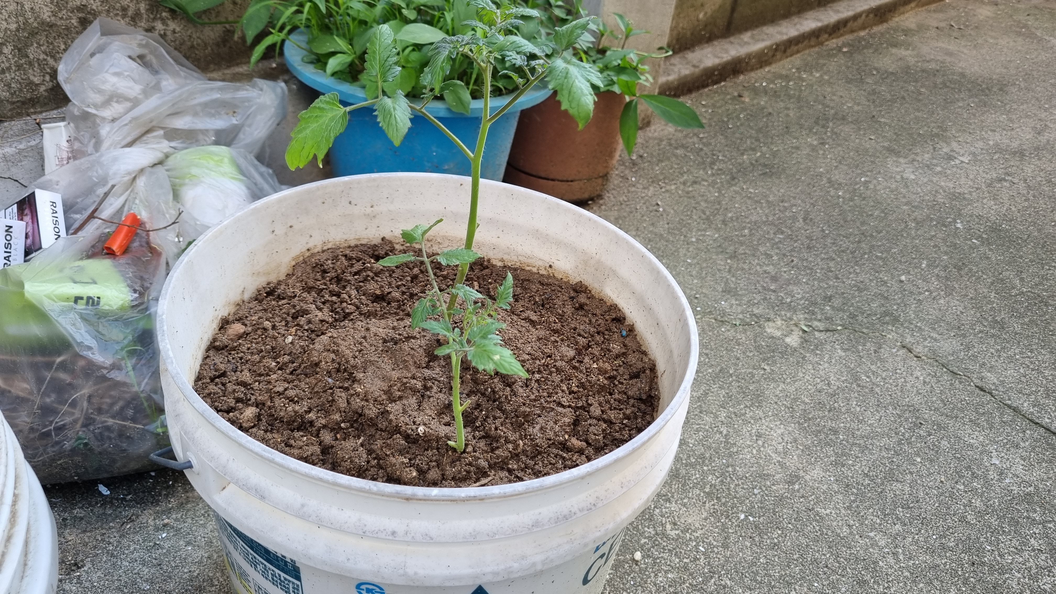 사실 토마토를 키우지 않으려고 했다. 그러나 토마토 모종이 또 생겼다. 그것도 2개나. 모종 시장에 가서 모종을 사면 친절하신 사장님이 그냥 가져다 키우라고 하나씩 주신다. 그래서 어쩌다 보니 토마토 모종이 생겨서 화분에 심었다. 아니 아버지가 심어 주셨다.ㅋ