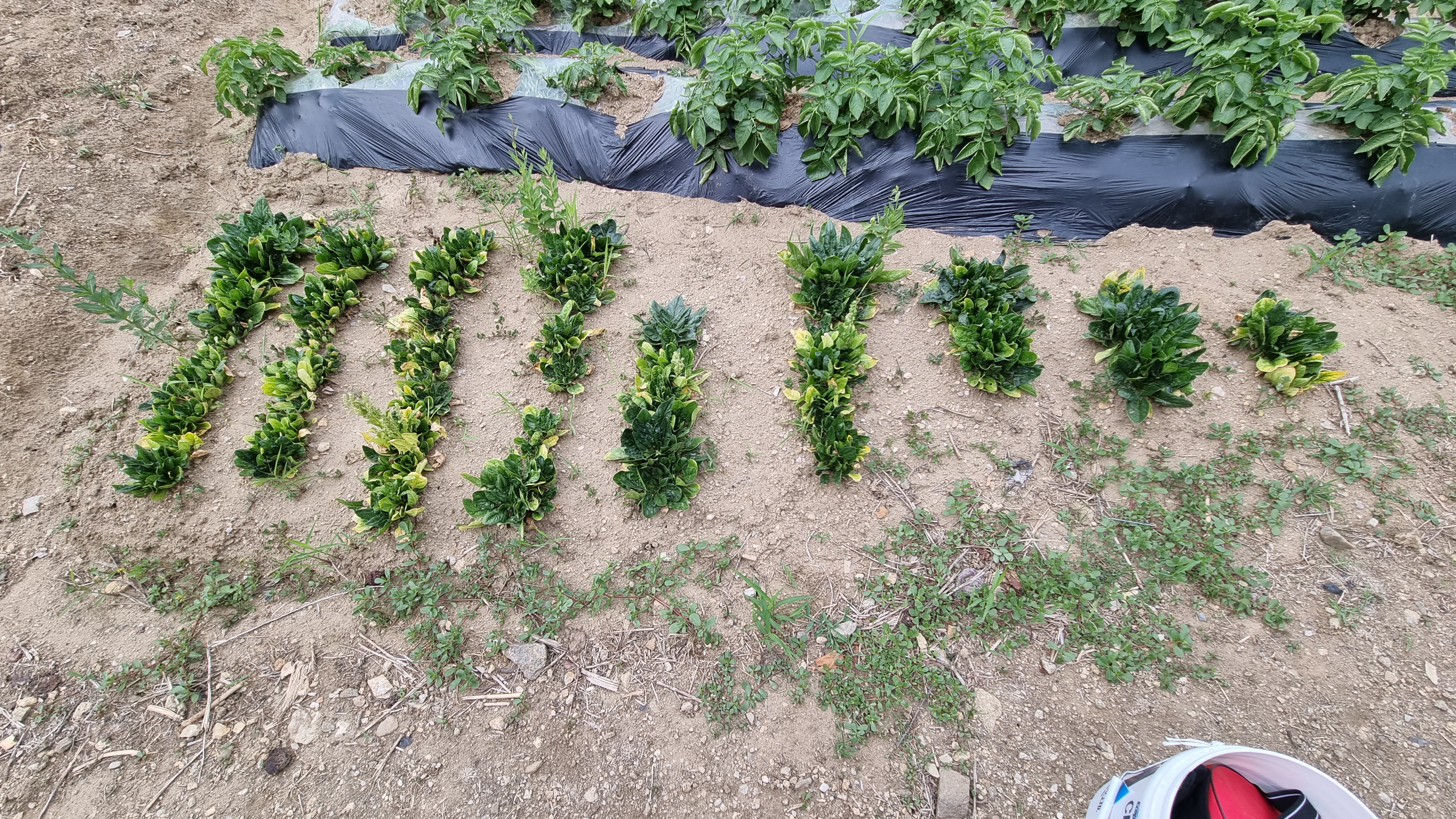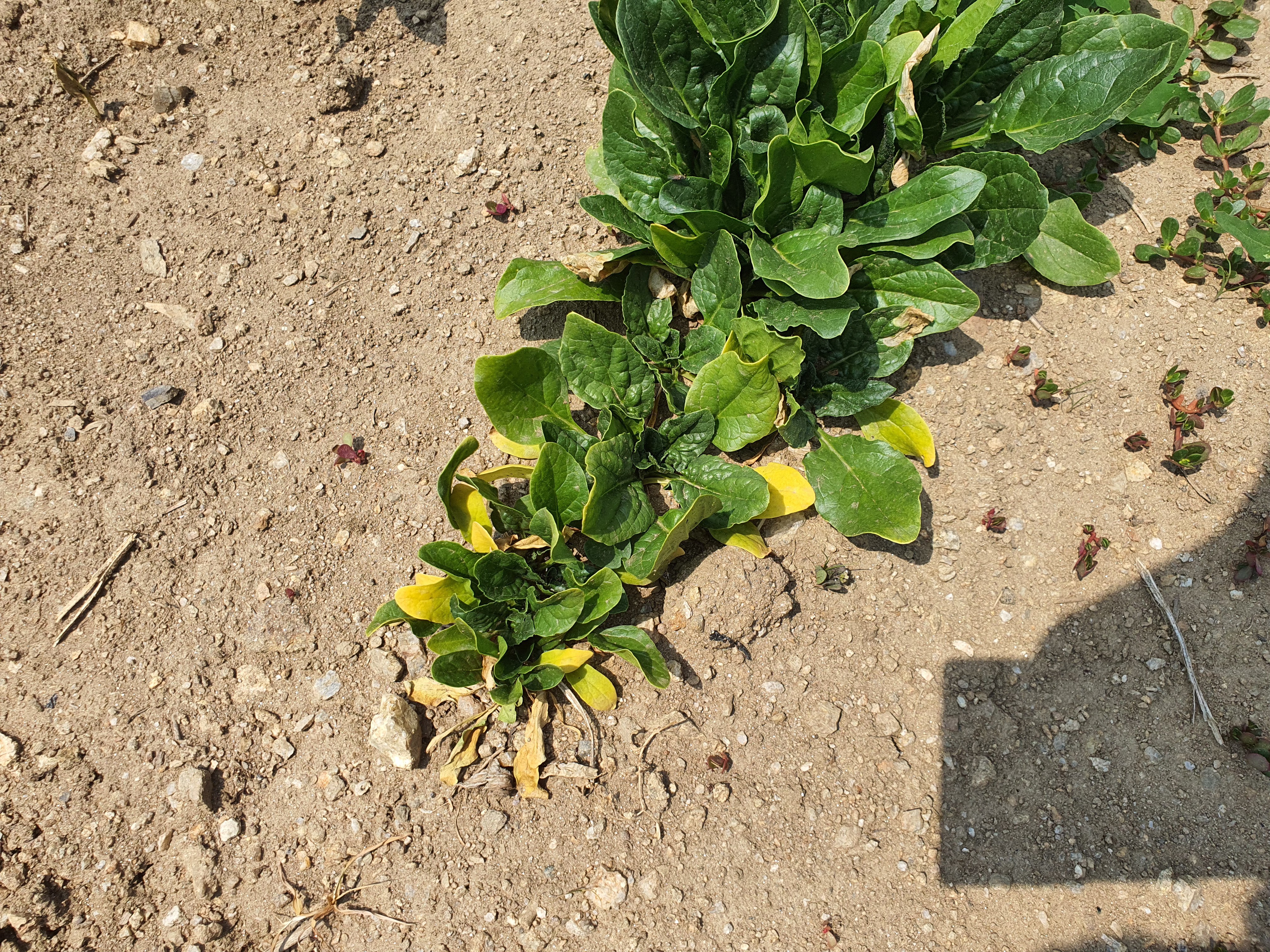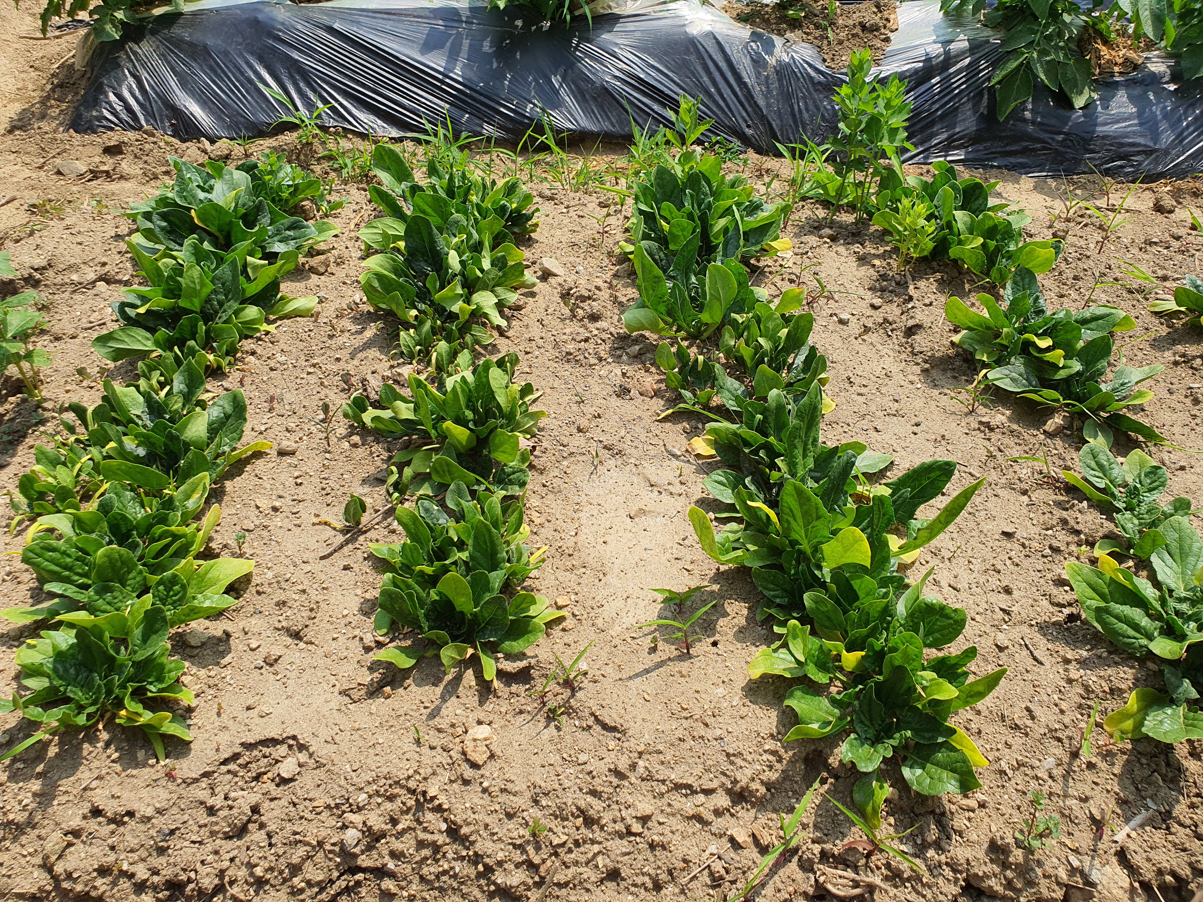 시금치가 많이 자랐다. 시중에서 판매하는 것만큼이나 크게 자란 것도 있지만 아직 뜯기에 너무 작은 시금치들이 있다. 그래서 1주 정도 수확을 미루기로 결정했다. 시금치 잎이 누렇게 변한 이유는 가물어서 그렇다고 했다. 비가 안 와서 물을 자주 줘야 되는데 밭에 자주 못 가서 일주일에 한 번 정도 물을 줬더니 시금치 잎이 누렇게 뜬다.