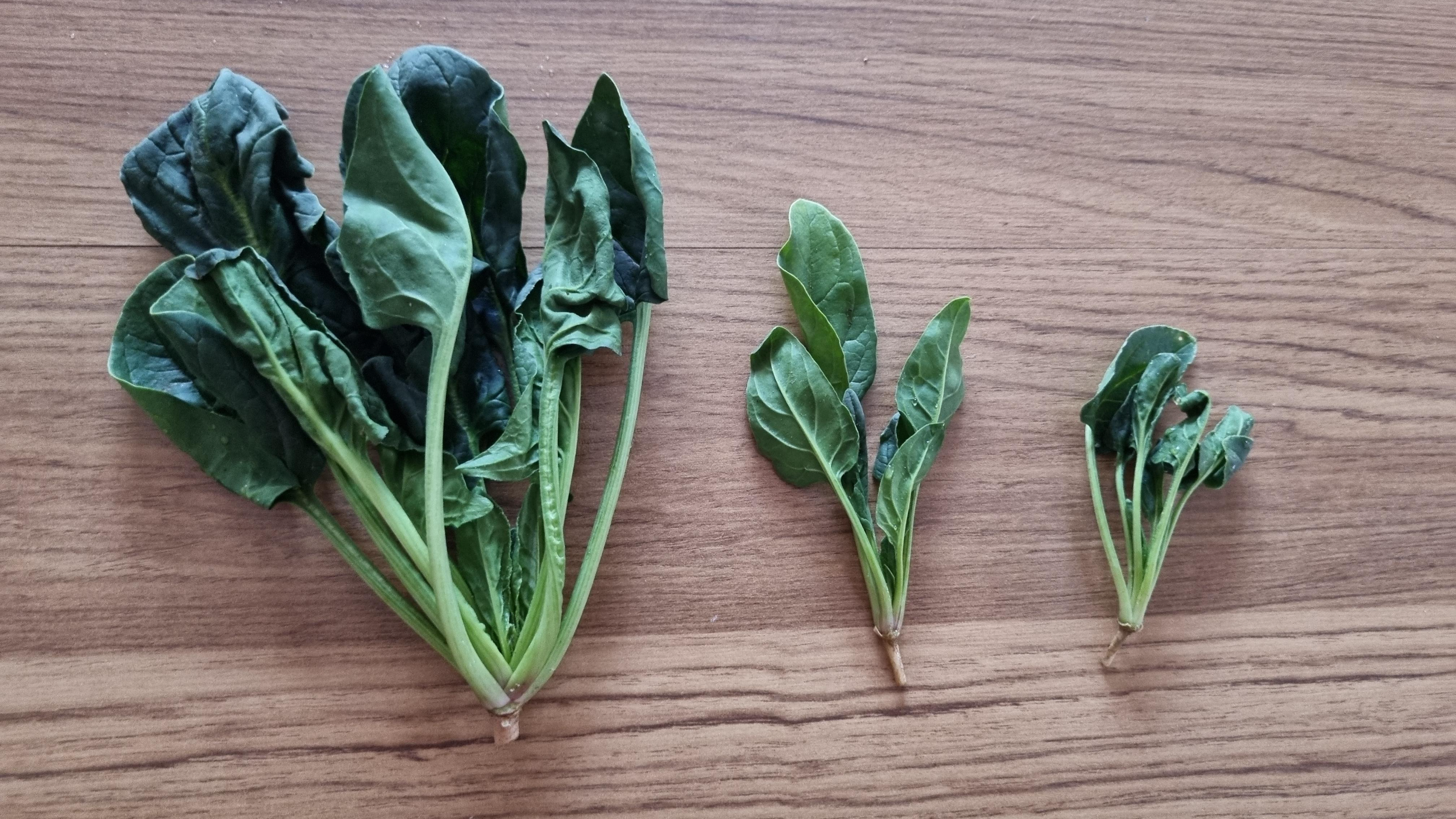 위의 사진에서 왼쪽에 있는 시금치는 시중에서 판매하는 것만큼 크게 잘 자랐다. 하지만... 오른쪽의 시금치들은 작아도 너무 작다. 시금치가 작다고 먹지 못하는 것은 아니다. 어쩌면 부드럽고 여려서 아이들이 먹기엔 더 적절할지도 모른다.