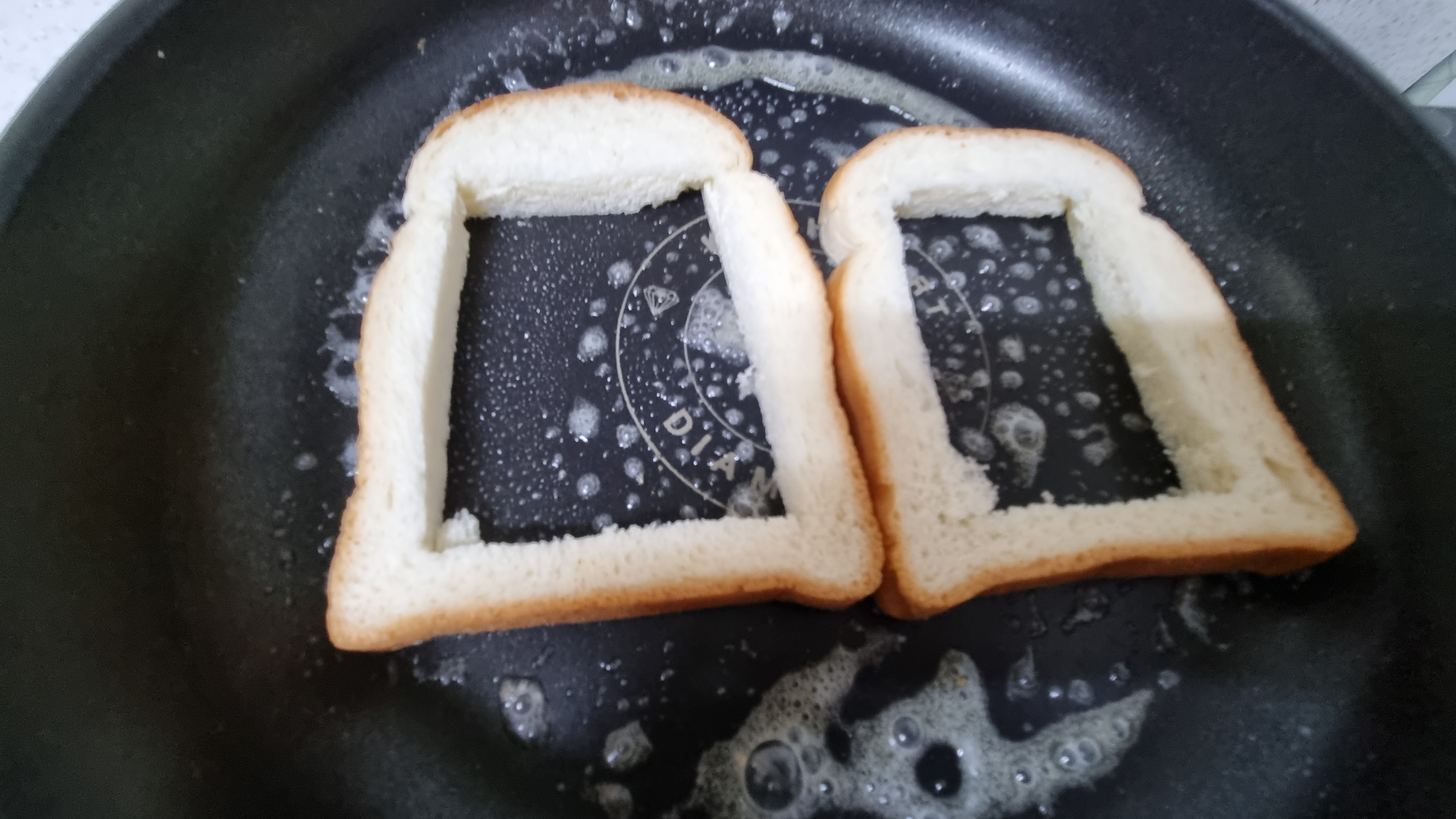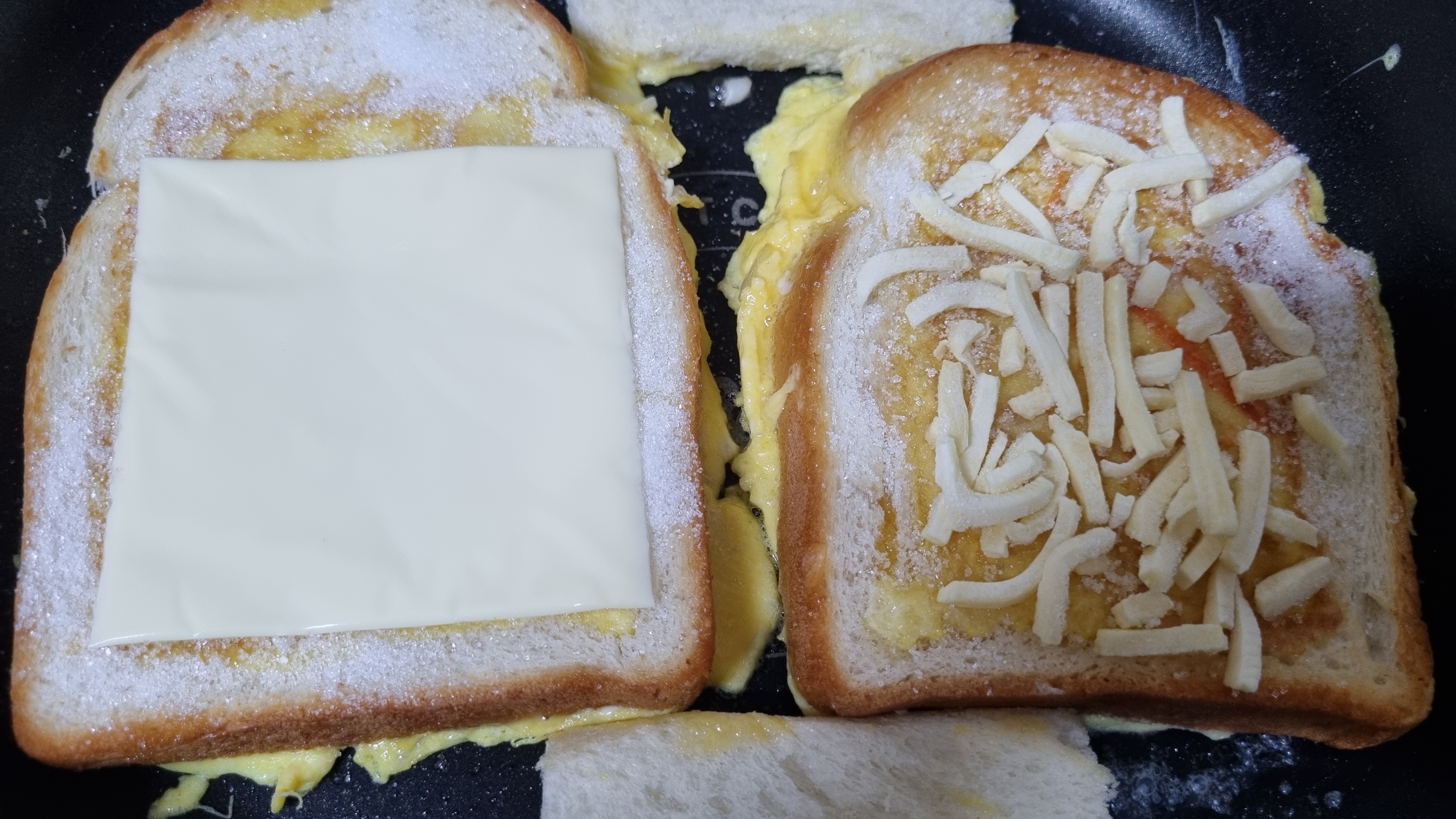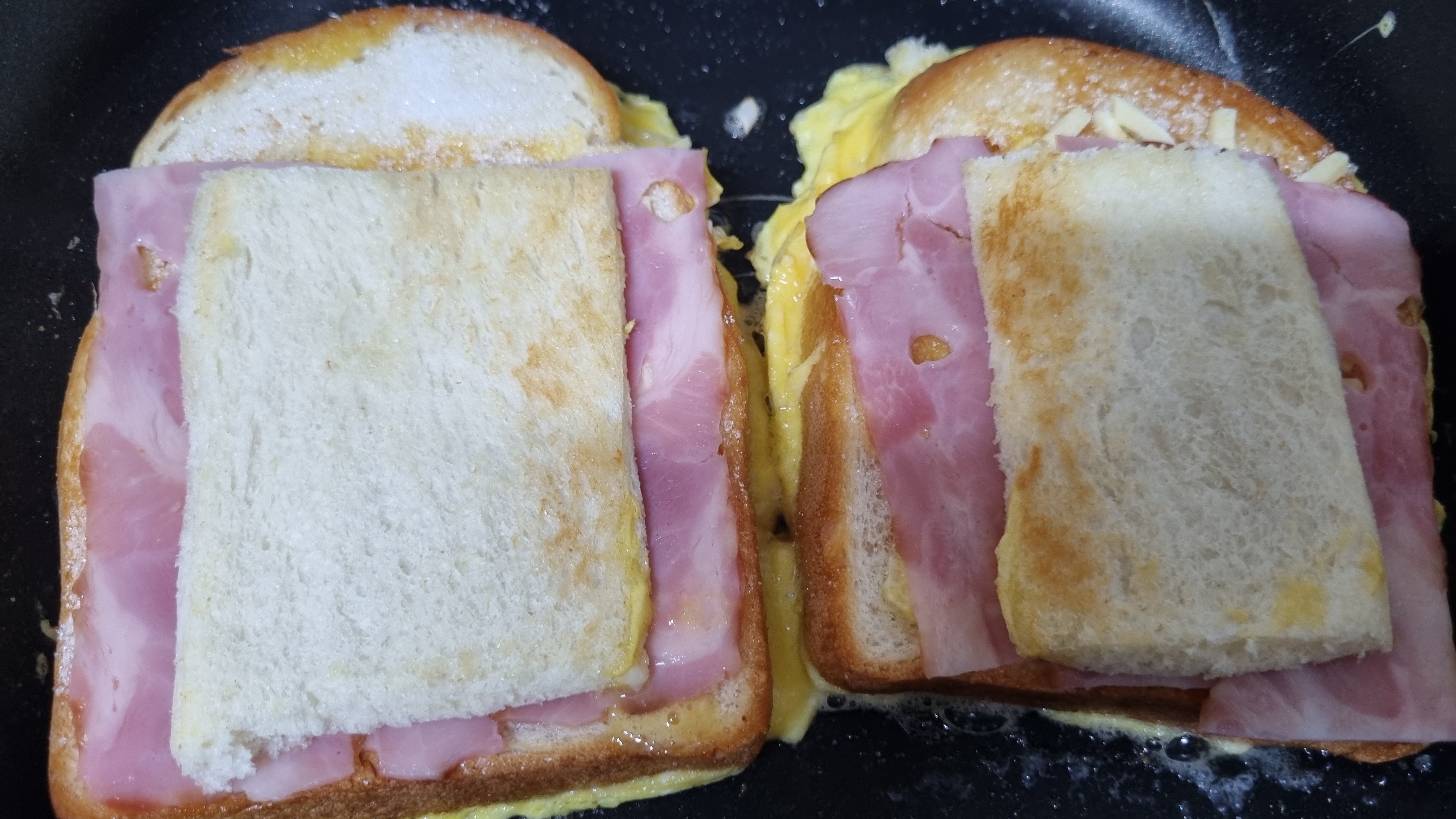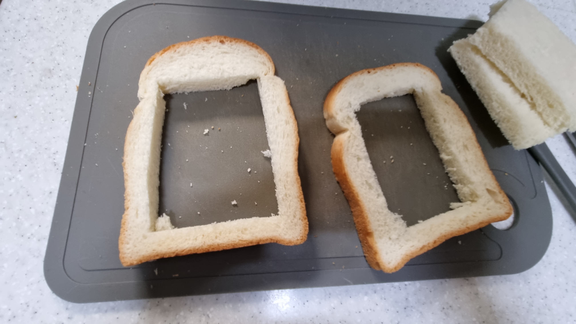 식빵 안쪽은 칼로 잘랐다. 왜냐면 이유 없다. 어디서 본거 따라 했다.
