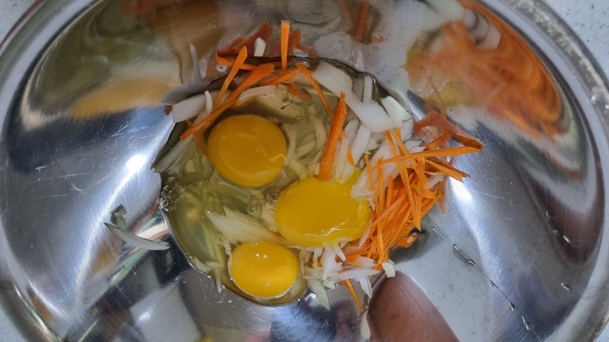 집에 있는 야채 대충 썰어서 계란 3개와 섞었다. 집에 있는 야채라고 해봐야 고작 당근과 양파뿐.