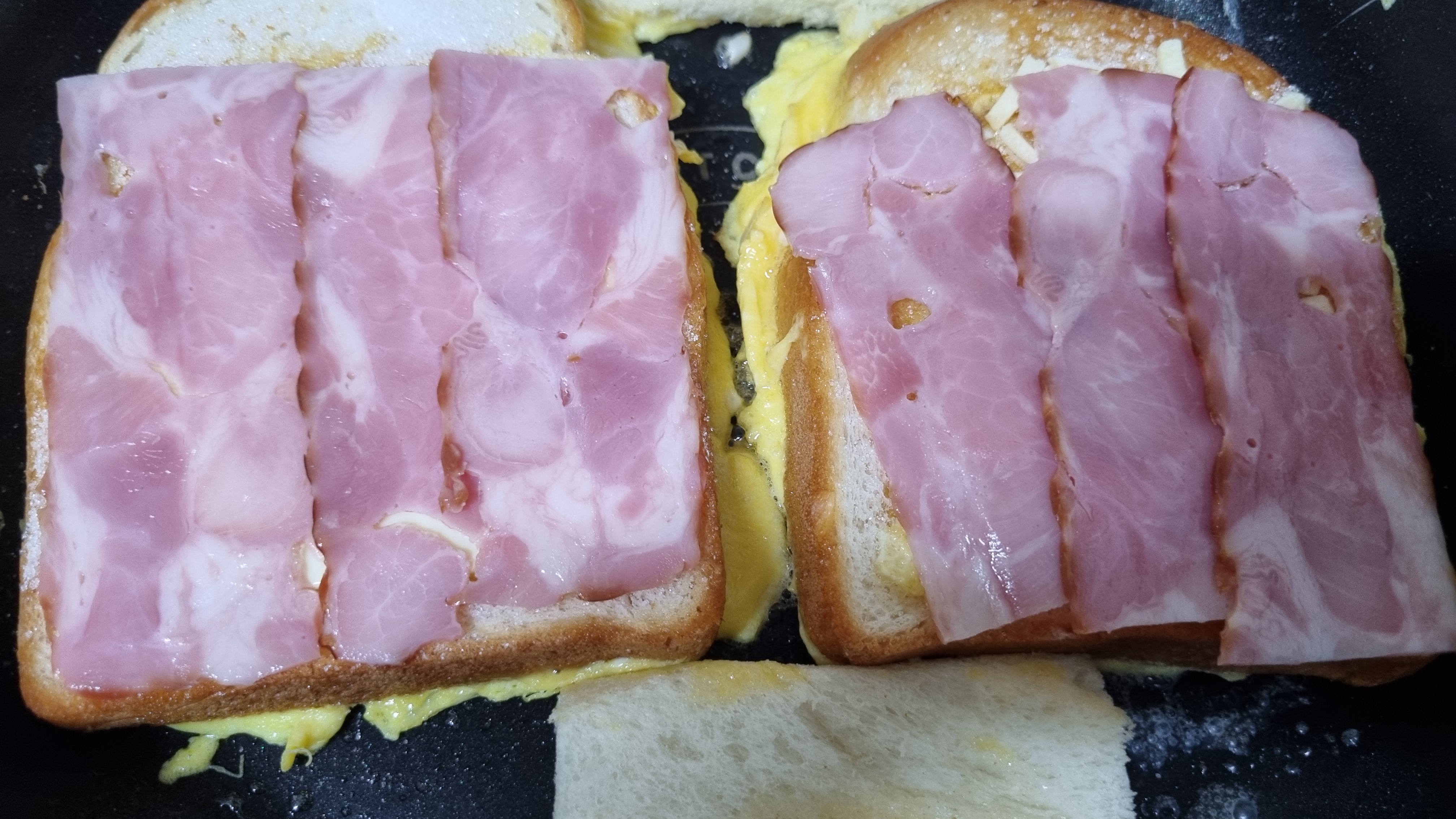 치즈 위에 베이컨을 올렸다. 베이컨은 넣으면 토스트 끝판왕. 절대 맛이 없을 수 없는 조합이다.