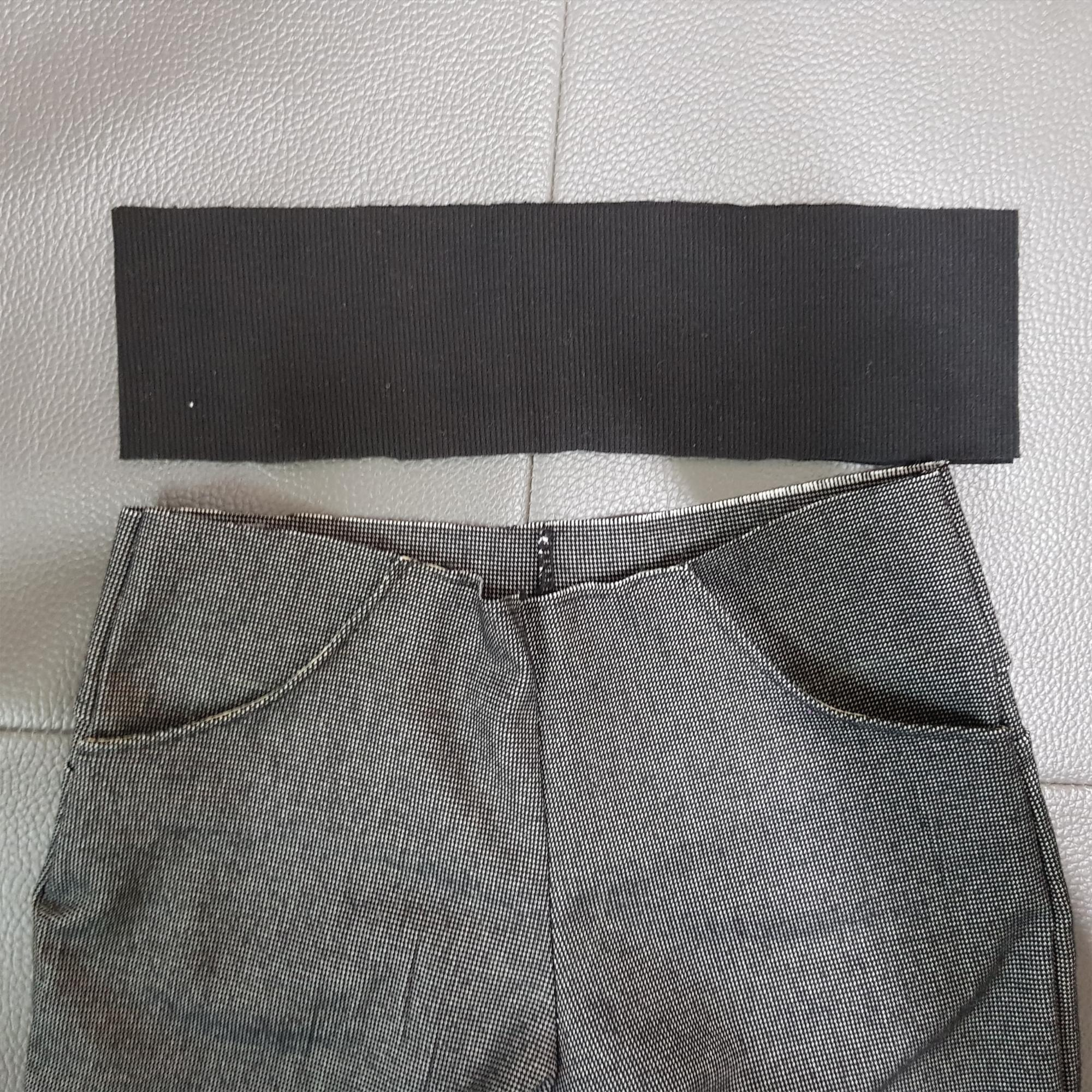 바지 뒤판에 오버룩 미싱으로 요크를 달고 밑위를 재봉했다.