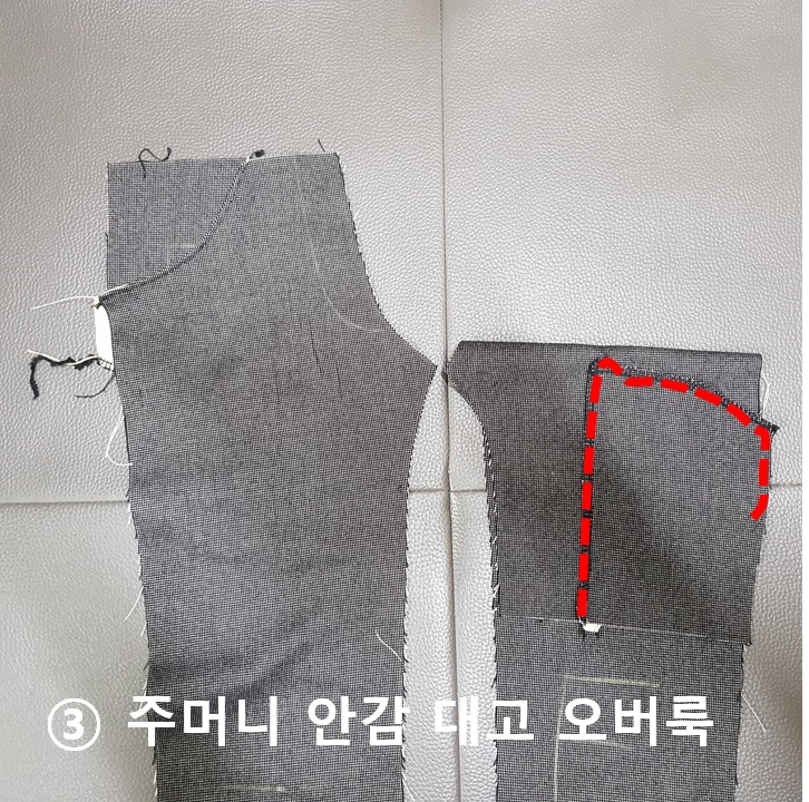 안주머니 달고 안주머니 안감 달아주기. 바지는 주머니 달기가 어려운 거 같다. 바지를 다 만들고 보면 주머니 입구가 작아지는 경우가 생긴다.ㅠㅠ 재단을 잘못해서 그런 건지 곡선이라 그런 건지 지난번에도 실패한 경험이 있어 이번엔 아주 천천히 생각하면서 폴리스판 면바지의 주머니를 만들었다. 주머니 만드는 과정을 잊어버리지 않게 아래 사진으로 주머니 만드는 순서를 정리했다.