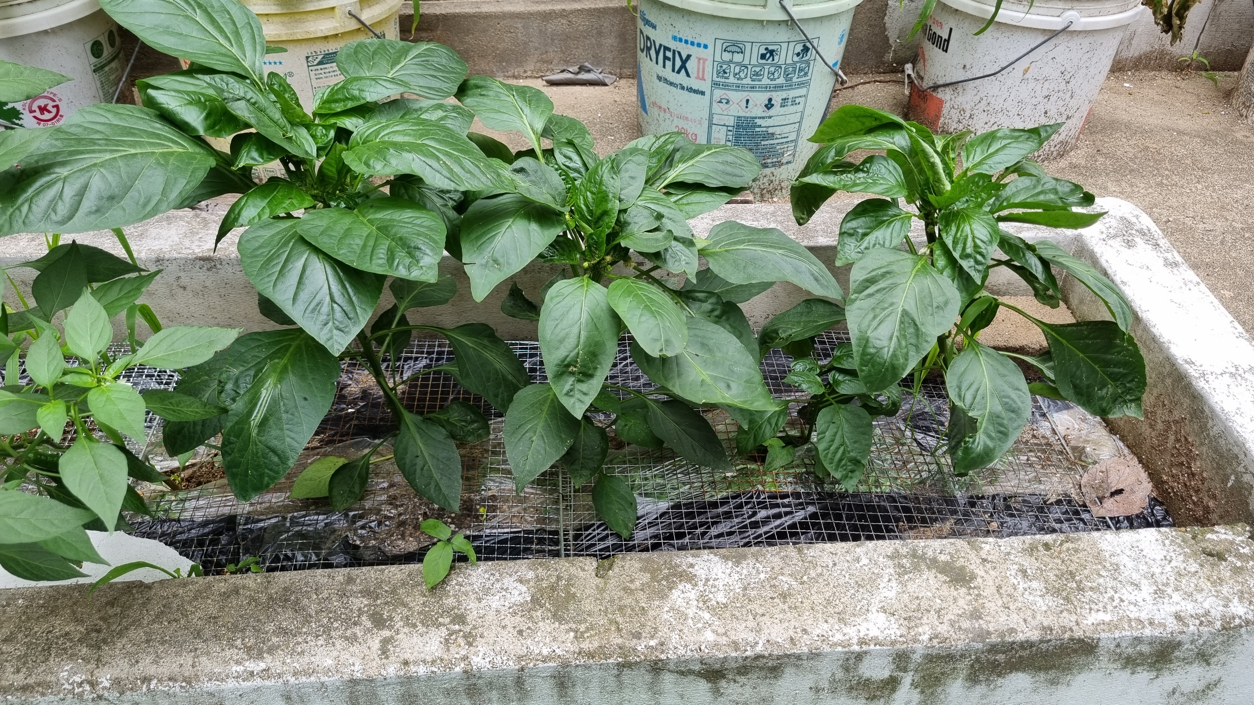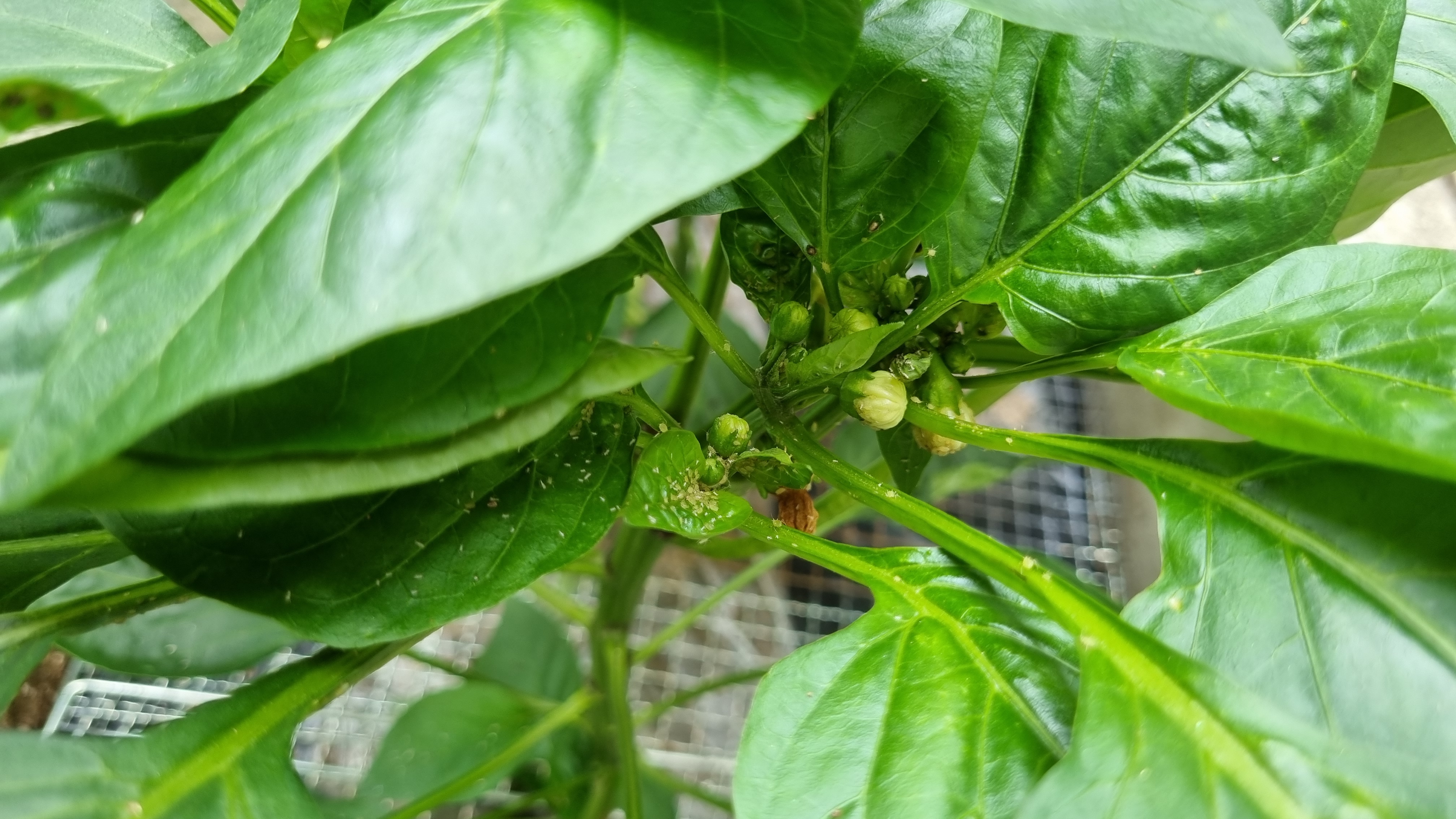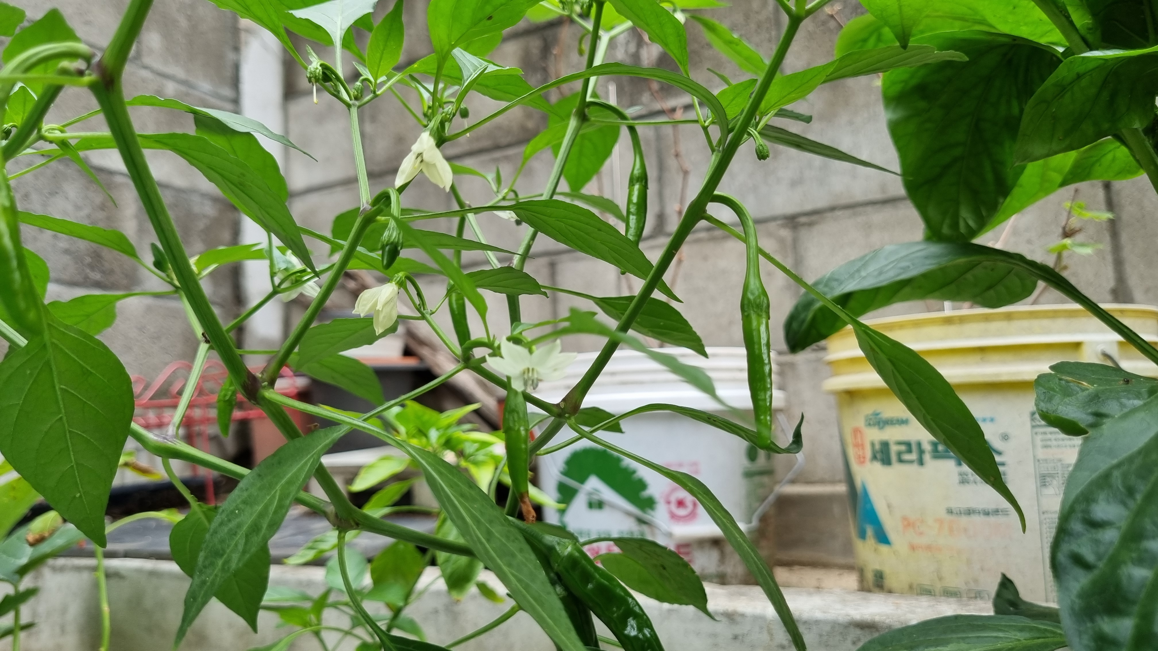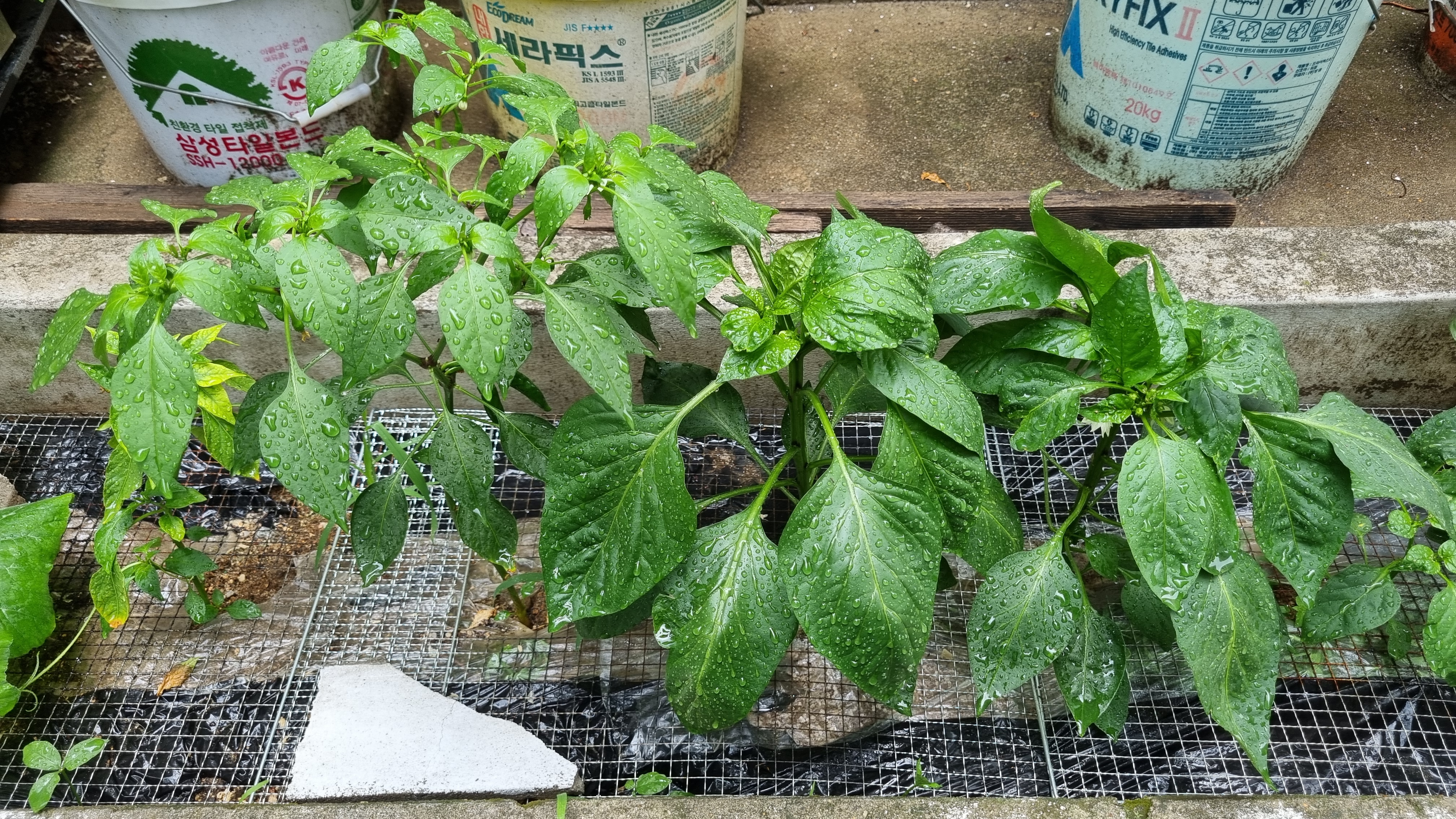 피망은 매우 잘 자라고 있다. 하지만... 이 피망에도 문제가 있다. 사진은 없지만 잎 뒤로 진딧물이 있다. 엄청 심한 정도가 아니라 비가 오면 없어지겠거니 내버려 뒀다.