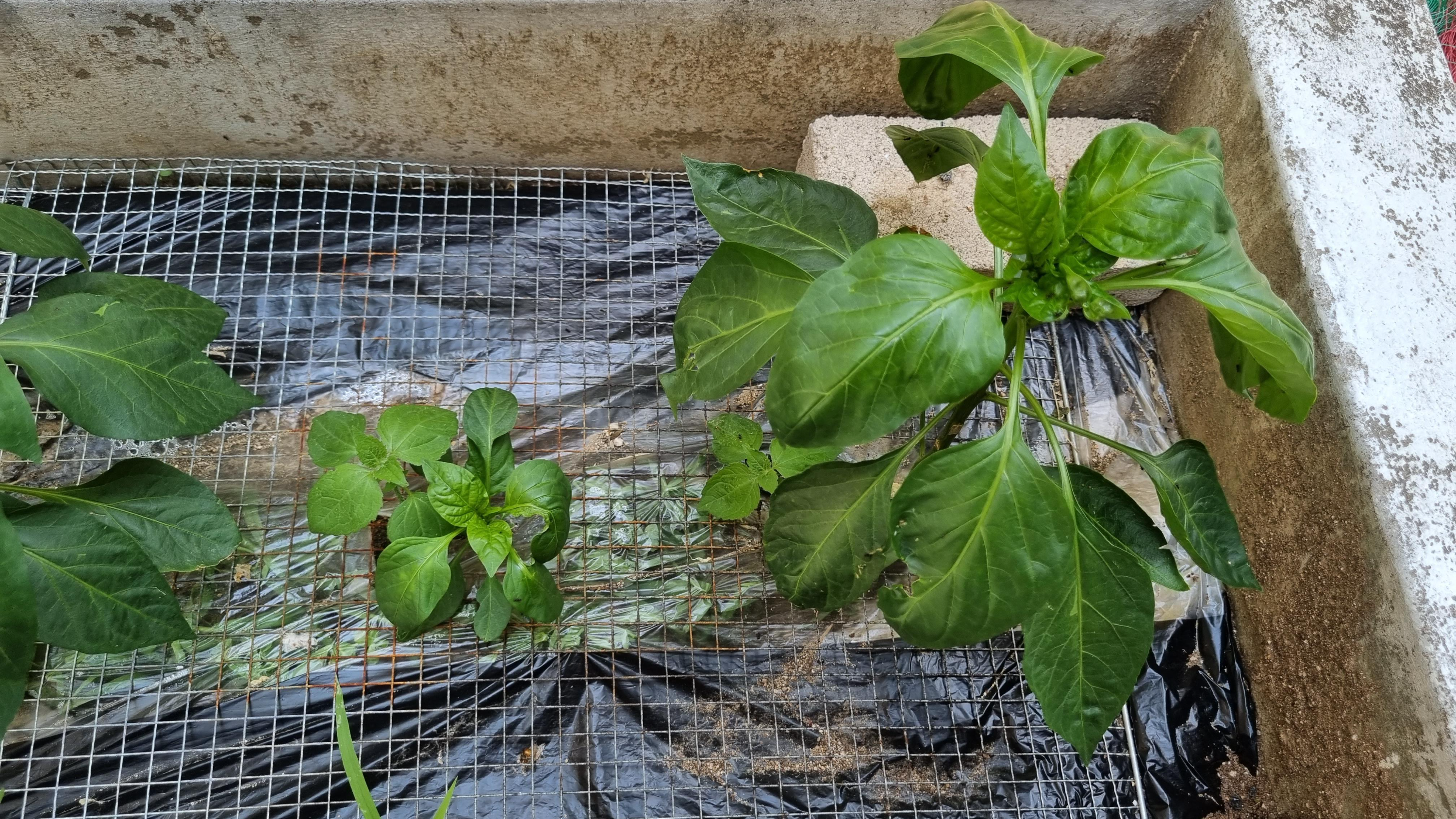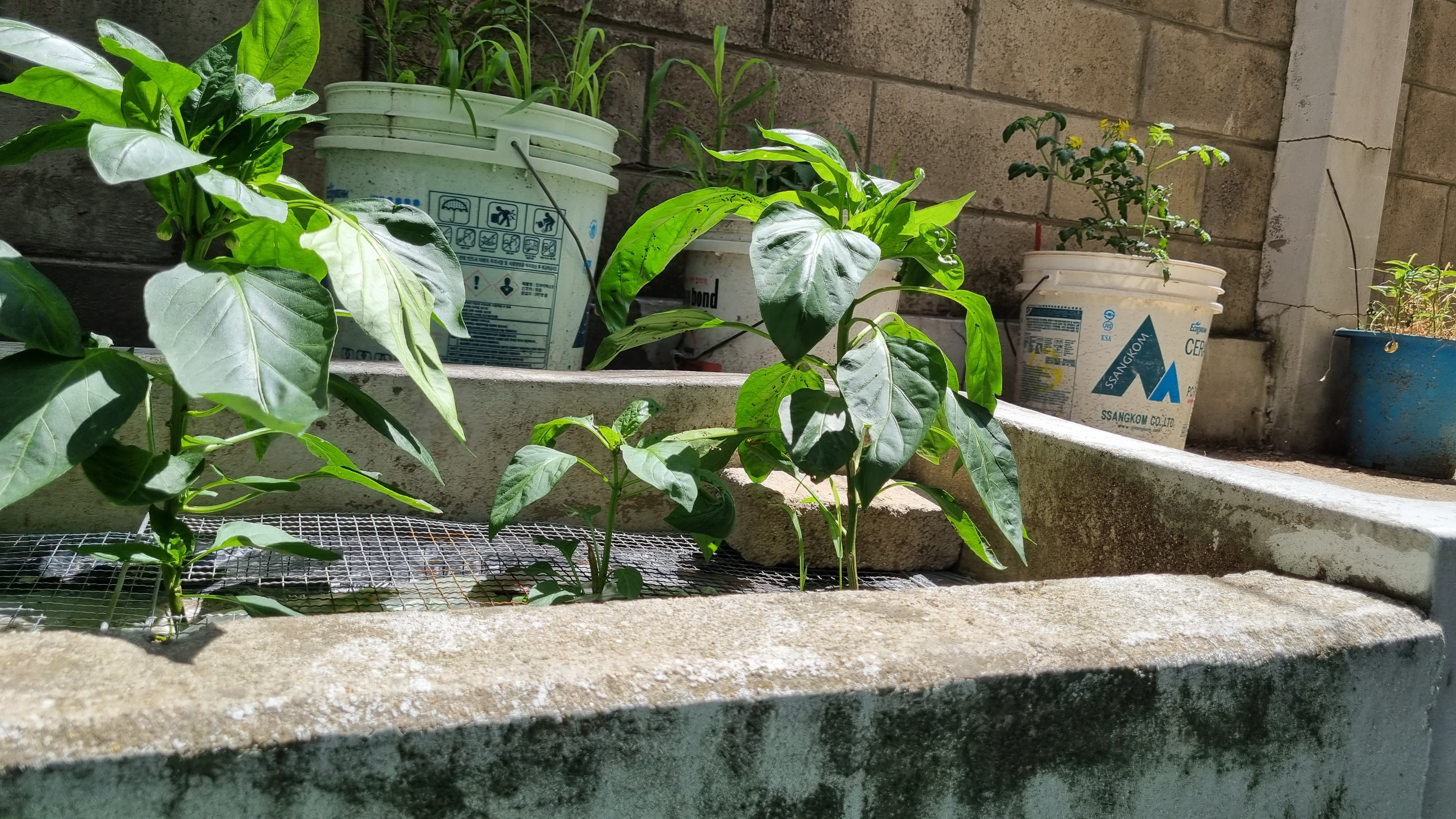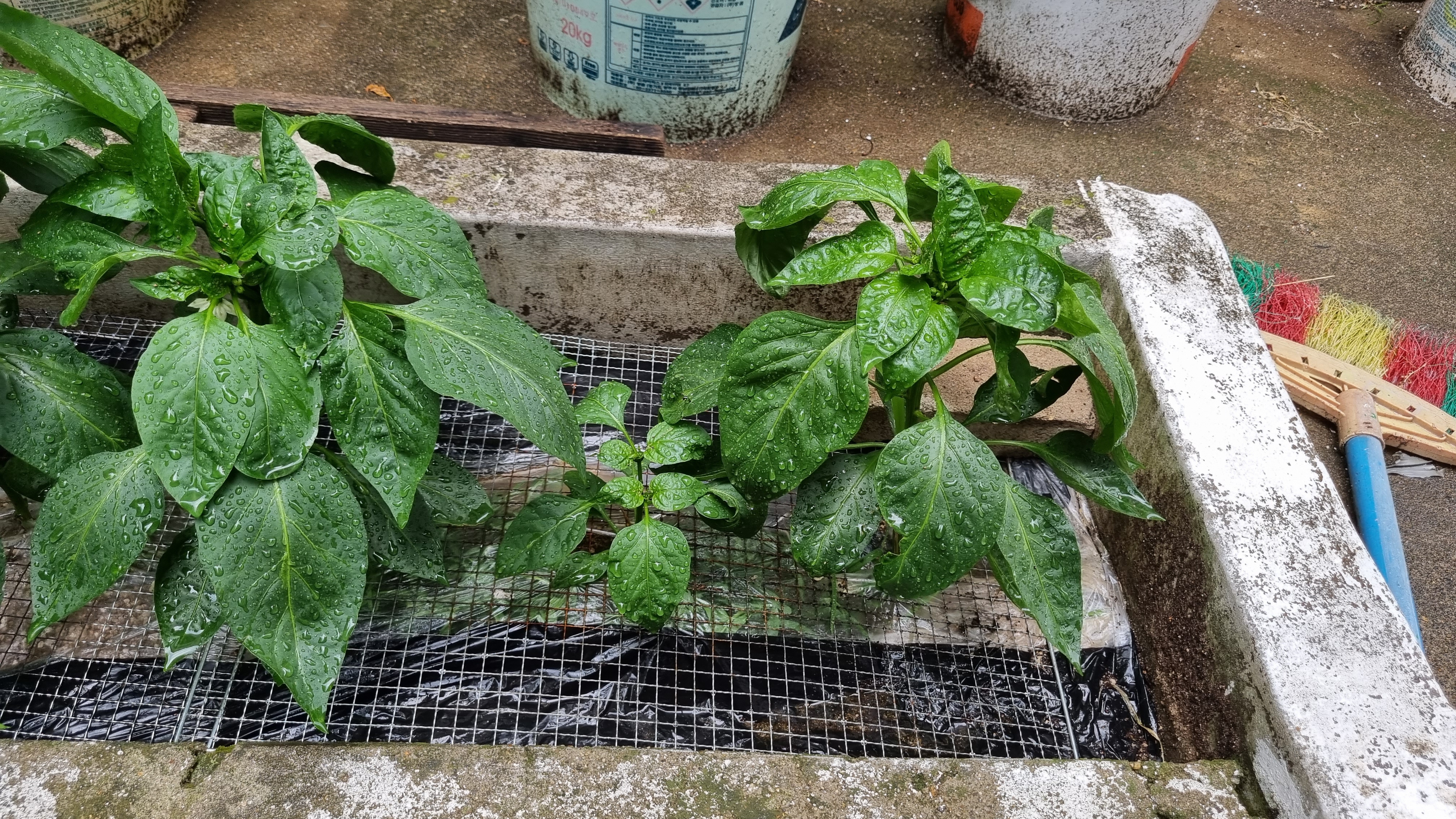 고추와 피망도 잘 자라고 있다. 하지만 왼쪽의 고추 모종 2개는 희망이 없어 보인다. 잘 자라지 않는다. 분명 병해충일 것 같은데... 정확한 원인은 모르겠다.