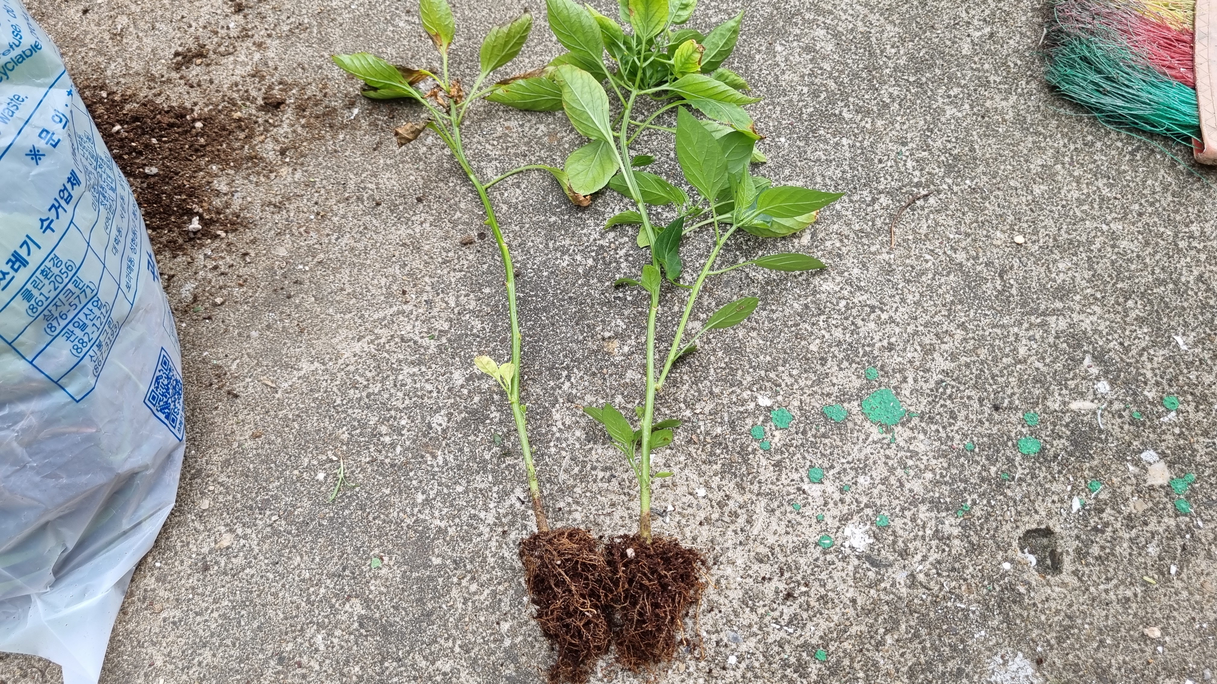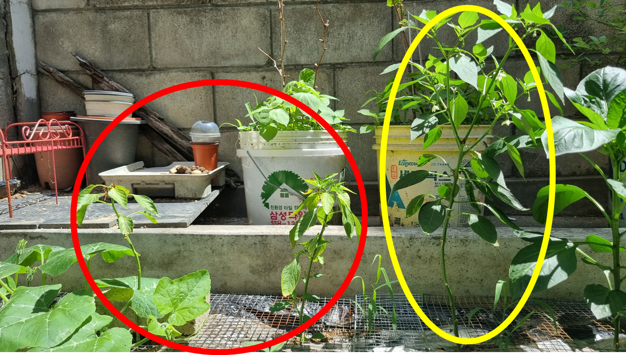 고추 모종 3개를 심었는데 2개는 부실하다. 왜 같은 모종을 사다 싶었는데 하나는 무럭무럭 잘 자라고 2개는 시들하고 크지도 않고 잎이 누렇게 되는 것일까?