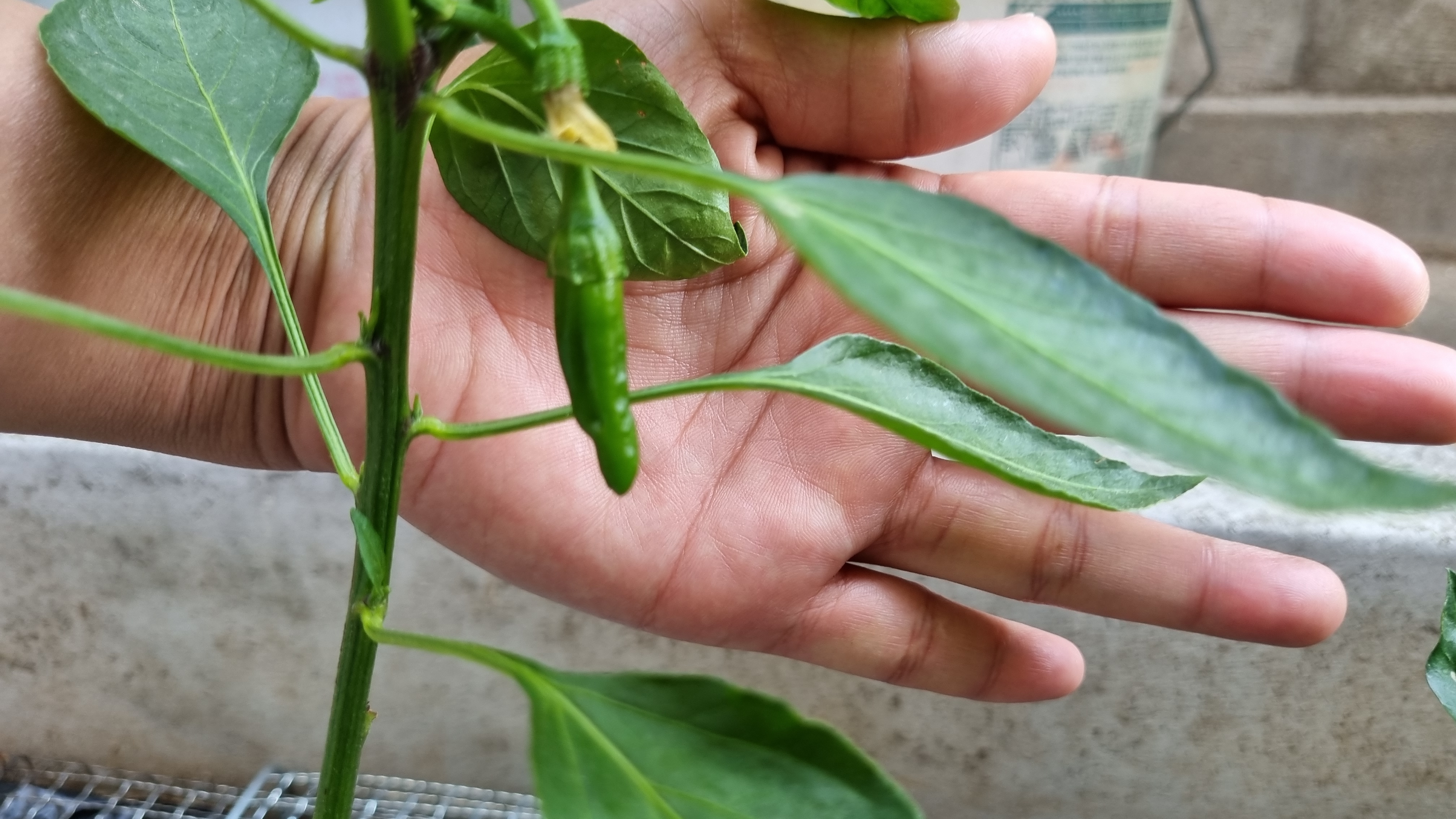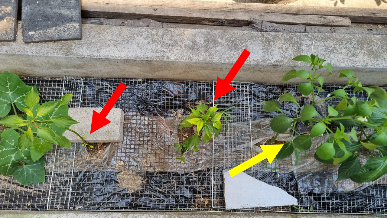 정말 무슨 영문인지는 모르겠으나 2개의 고추는 진짜로 크지 않는다. 위의 사진에서 빨간색 화살표가 가리키는 고추는 오른쪽의 노란 화살표가 가리키는 모종과 크기가 확연히 차이가 난다. 색도 다르고.