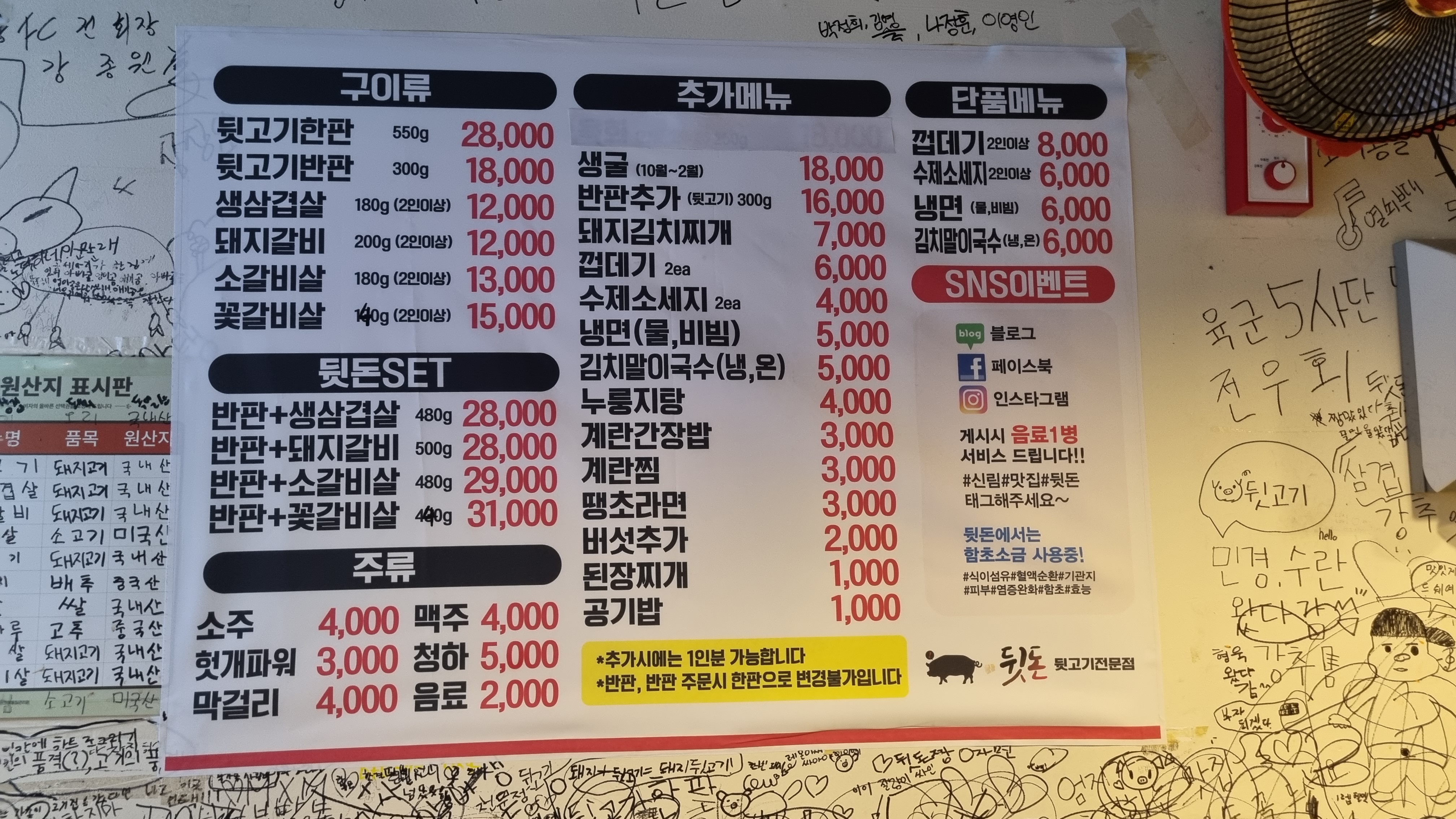 뒷고기 한판을 주문했다.