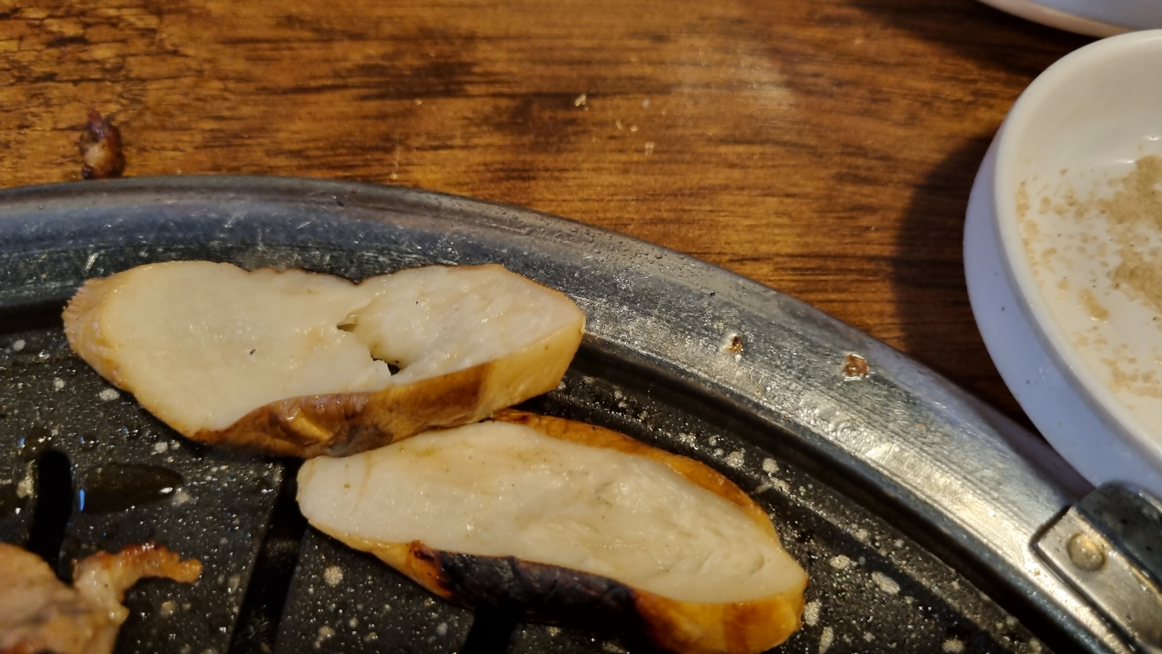 새송이 버섯도 통째로 구워서 가위로 잘랐더니 더욱 맛있다.