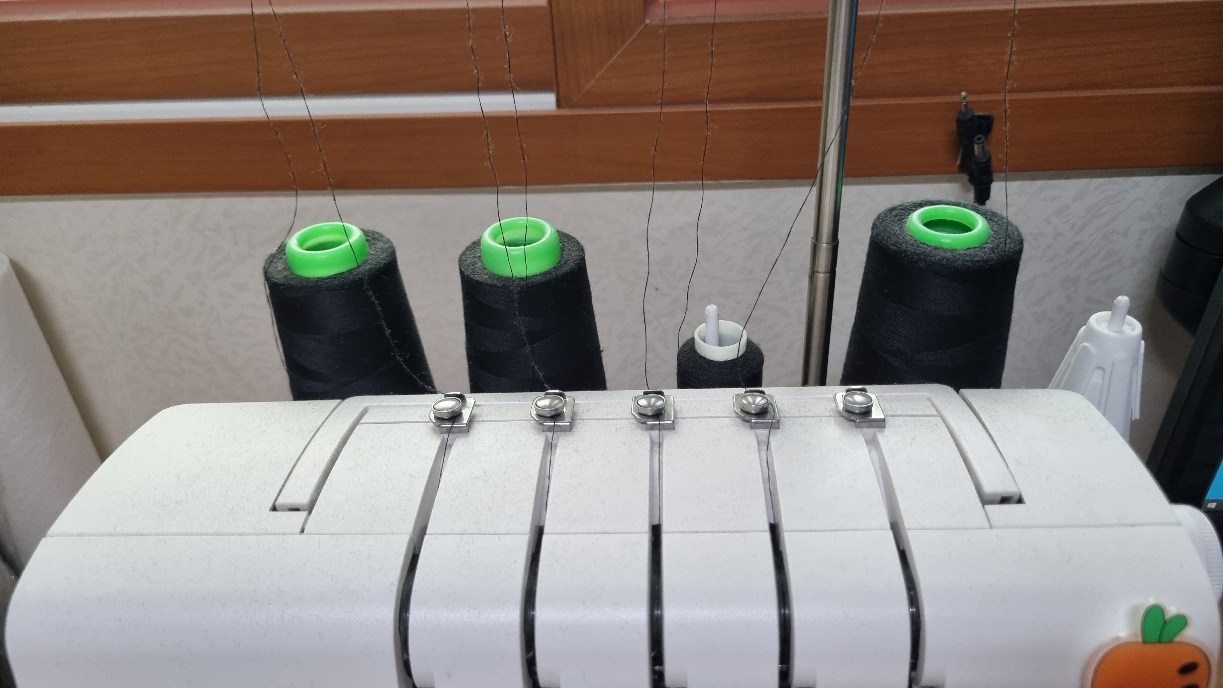 밑실과 윗실만 사용하는 재봉틀 즉, 본봉은 실을 갈아 끼우는 일이 그렇게 번거스럽진 않다. 하지만 오버록 실 갈아 끼우려면 정말 오래 걸린다. 거기다 실을 잘못 끼워서 재봉이 안 되면 더욱더 피곤해진다. 요즘 실 끼우기가 익숙해져서 금방 끼우긴 하지만 그래도 갈아 끼우기 귀찮다.