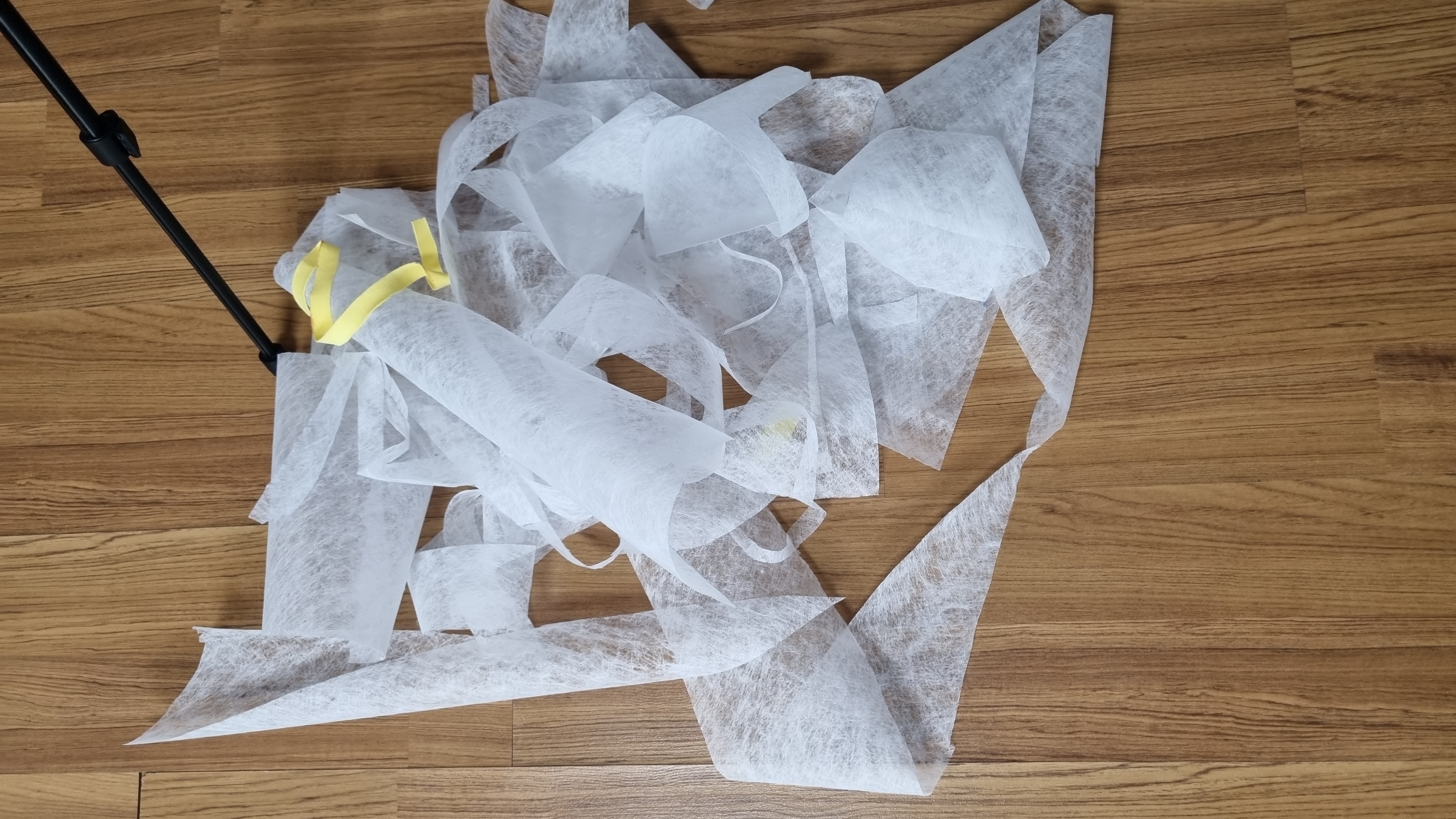 위의 사진은 쓰레기가 적게 나온 날이다. 사실 원단이 두껍고 같은 옷을 여러 벌 만드는 날이면 미친다. 쓰레기봉투에 이렇게 남은 원단을 버려도 되나 싶기도 하고.