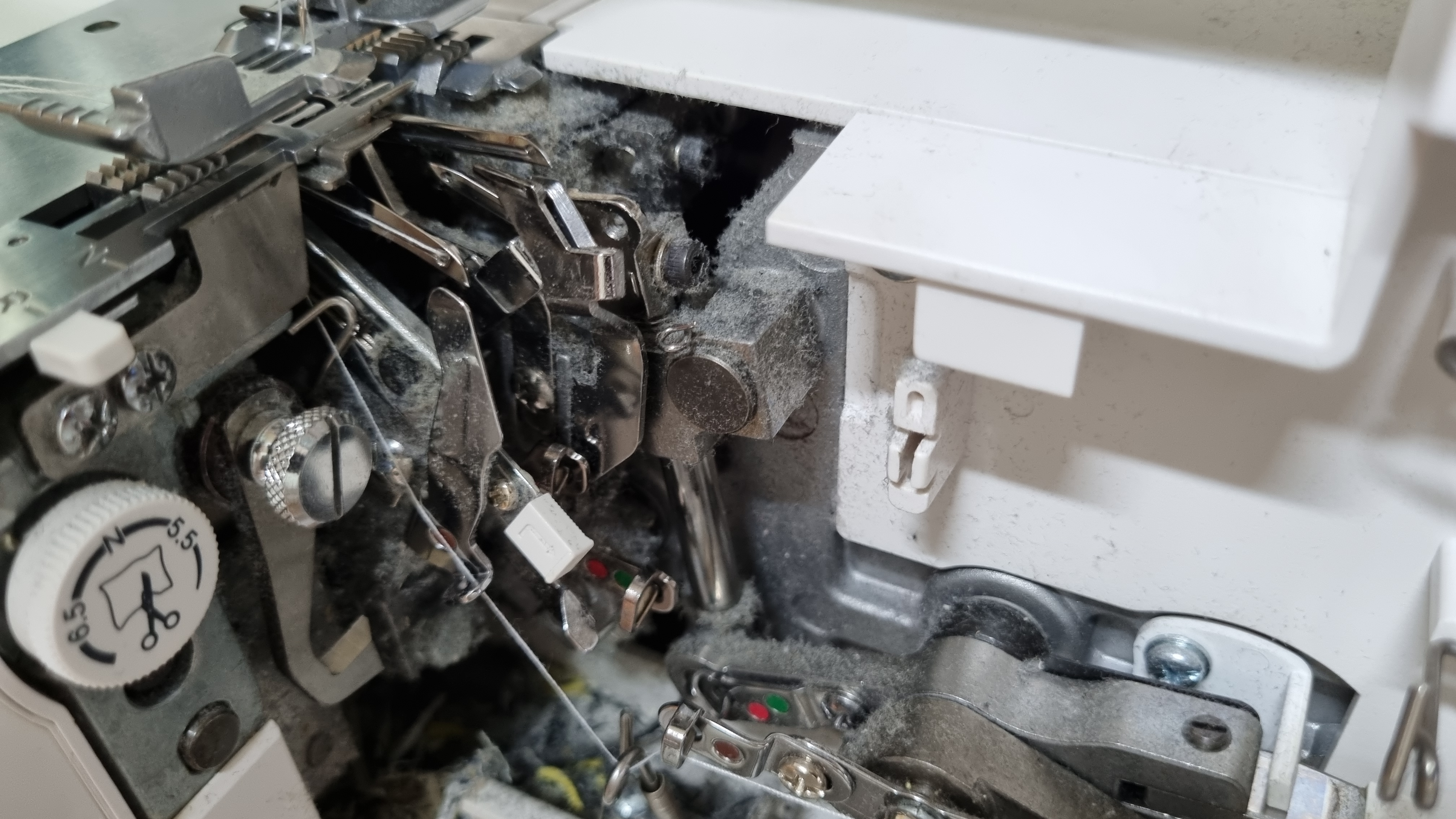 나의 오버록 미싱에 쌓이는 원단 먼지들이다. 이 먼지들이 미싱에만 쌓이지는 않는다. 날리고 날려서 집안 곳곳에 쌓인다. 아이들이 뛴다면 먼지는 더욱더 신명나게 날린다. 빌어먹을!!!