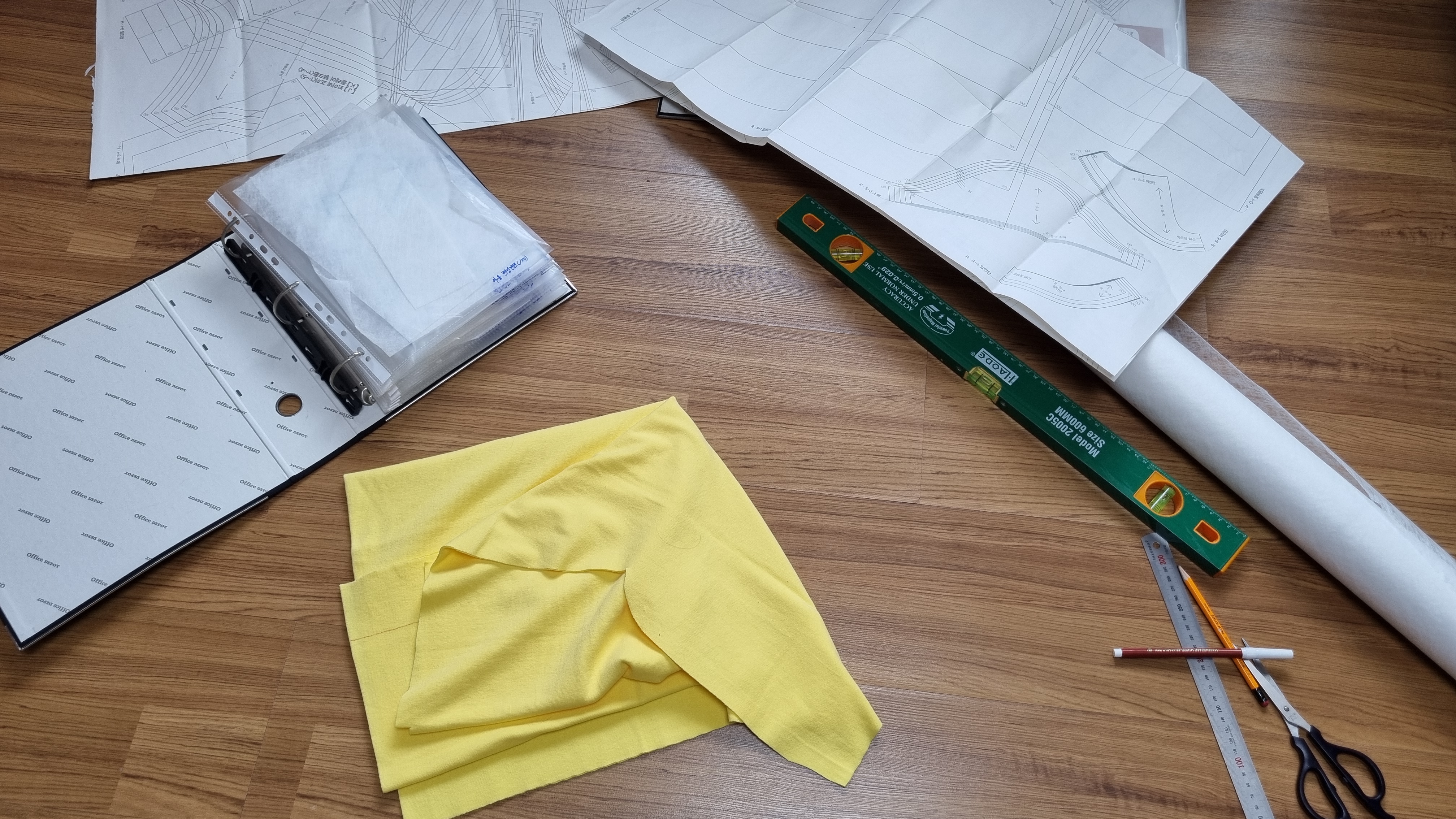 원단에 패턴 그리는 일도 매우 지루하고 귀찮다. 빨리 내가 생각한 옷을 만들어야 되는데 패턴을 그리다 보면 시간은 계속 흐르고 옷을 만드는 속도는 더디게만 느껴진다. 아이들 하원 전까지 패턴까지 다 그리고 정리해야 되는데... 항상 시간이 부족함.