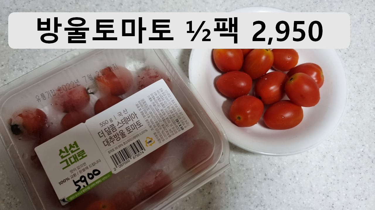 방울토마토: 5,900원이지만 반만 먹어서 2,950원.