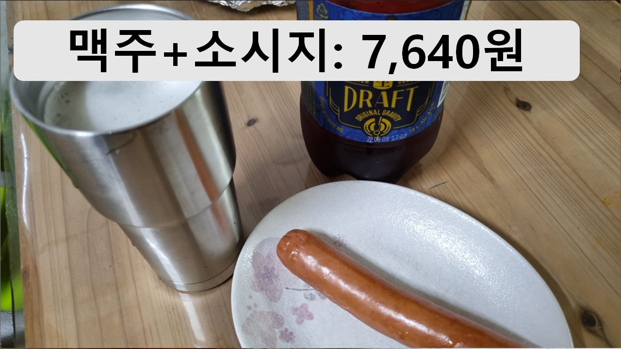 맥주+소시지: 7,640원. 맥주가 5,500원 소시지가 1,070원. 사진은 소시지 하나지만 사실 2개 먹음.ㅋㅋㅋㅋㅋ