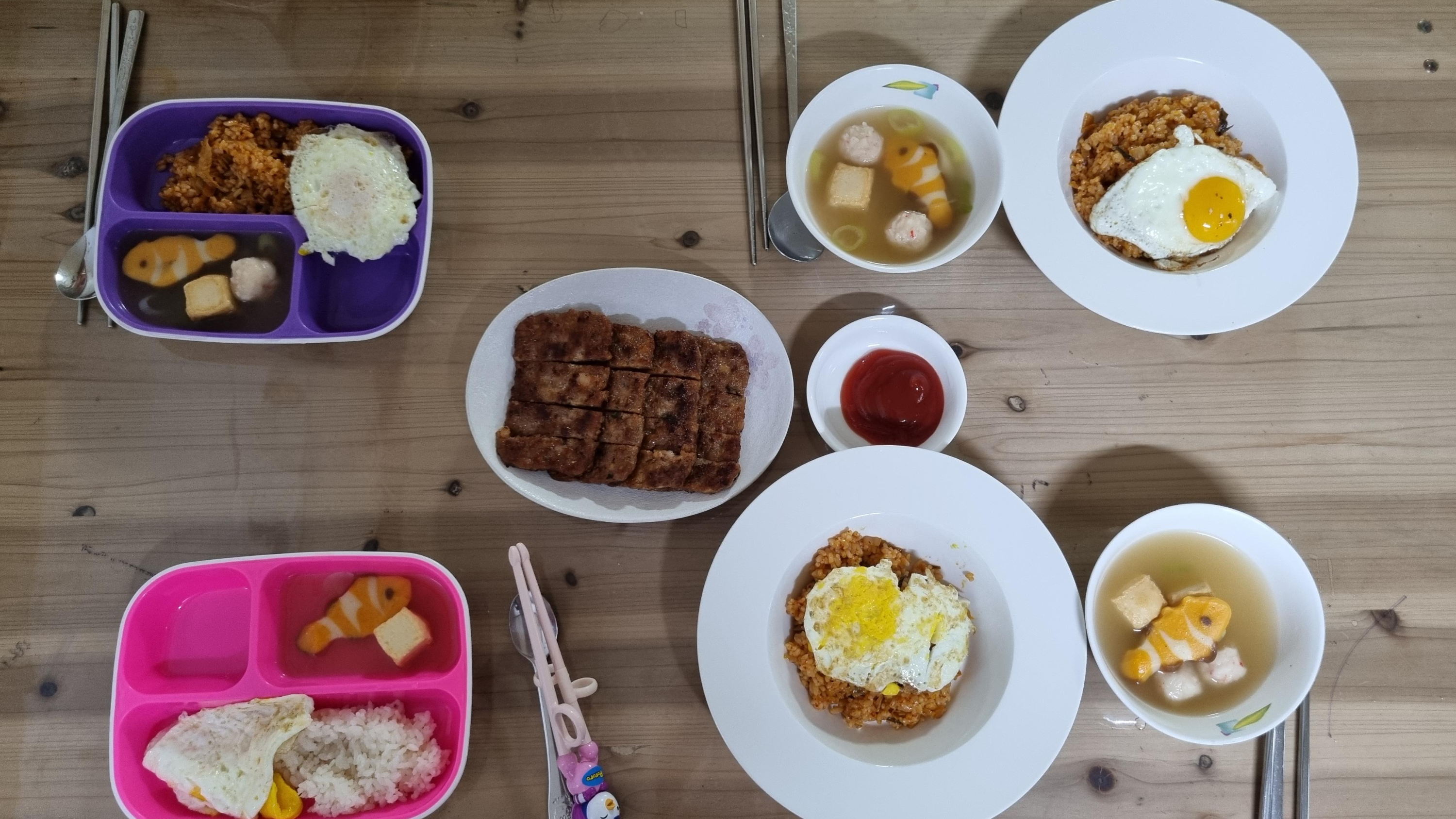 김치볶음밥: 계란 1개. 왜 아침부터 김치볶음밥을 먹겠다고 그러는 것이냐!!!!