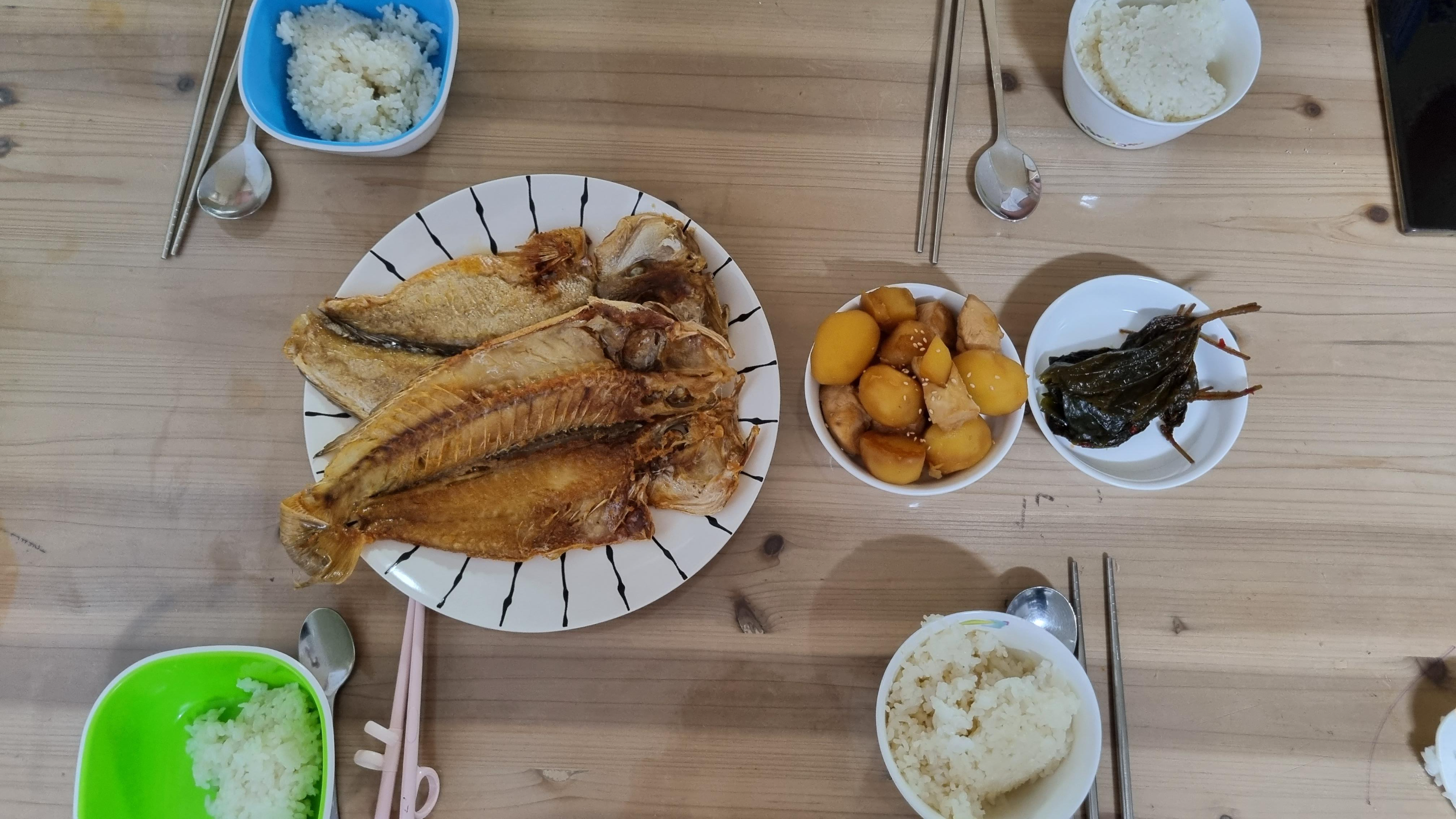 생선구이: 제주도에서 언제 올라왔는지 모르는 옥돔. 냉동실 재료 활용.